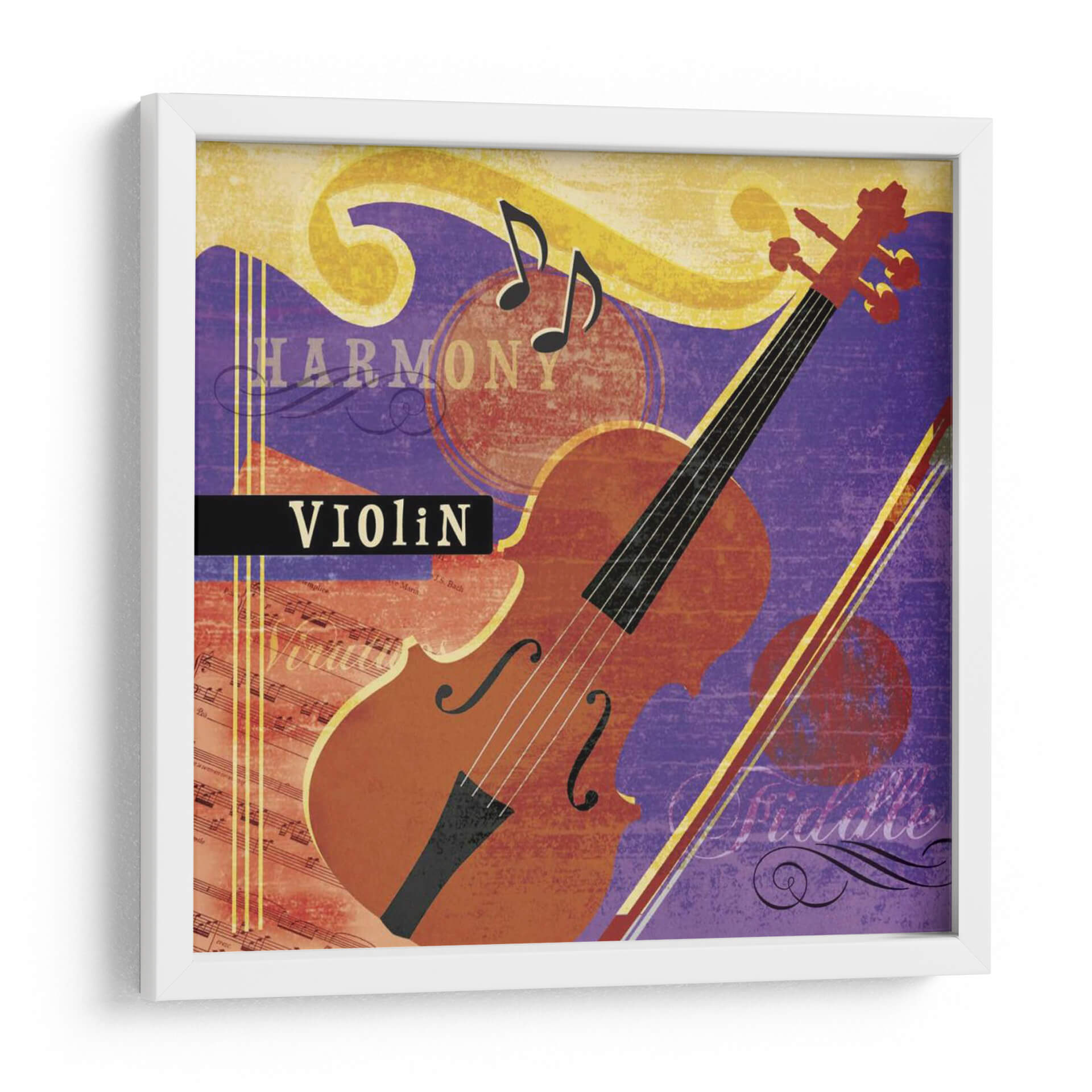 Sumérgete en la melodía visual de "Notas Musicales Vi", una obra de arte que captura la esencia vibrante de la música. Este cuadro decorativo presenta un violín estilizado con colores cálidos y terrosos, contrastando elegantemente con un fondo de vibrantes tonos púrpuras y amarillos. La composición se enriquece con elementos gráficos que evocan la partitura musical y notas flotantes, creando una atmósfera dinámica y rítmica. El uso del color es audaz y expresivo, transmitiendo una sensación de energía creativa y pasión por el arte de la música. "Notas Musicales Vi" es ideal para espacios que buscan un toque de sofisticación y un punto focal lleno de vida, como salas de estar modernas, estudios de música o incluso oficinas creativas. Esta pieza no solo decora, sino que también inspira y evoca la alegría y la armonía que solo la música puede ofrecer. Añade una dimensión artística a tu hogar o lugar de trabajo con este vibrante homenaje a las cuerdas.