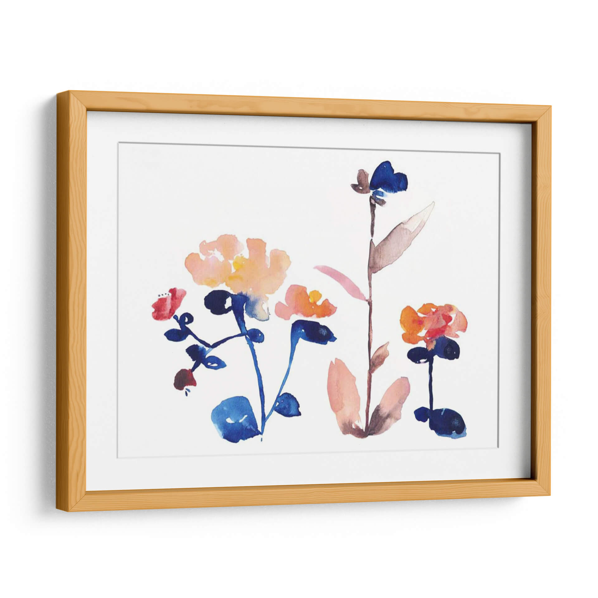 Sumérgete en la delicadeza y el encanto de "Nouveau Boheme II", una obra de arte que captura la esencia de la naturaleza con un toque contemporáneo. Kiana Mosley nos presenta una composición floral etérea, donde las formas orgánicas fluyen con gracia sobre un fondo luminoso. La paleta de colores, dominada por suaves tonos coral, naranjas cálidos y vibrantes azules, combinada con toques de rosa pálido y tierra, crea una atmósfera serena y a la vez energizante. Las pinceladas sueltas y la técnica inspirada en la acuarela evocan una sensación de movimiento y ligereza, invitando a la contemplación. Este cuadro decorativo es una elección perfecta para quienes buscan añadir un elemento de frescura y sofisticación a su hogar u oficina. Ideal para espacios que necesitan un toque de color y vitalidad sin abrumar, como un salón moderno, un dormitorio acogedor o un estudio creativo. "Nouveau Boheme II" es más que una simple decoración; es una invitación a experimentar la belleza efímera de las flores y la expresión artística moderna, transformando cualquier ambiente en un santuario de estilo y calma.
