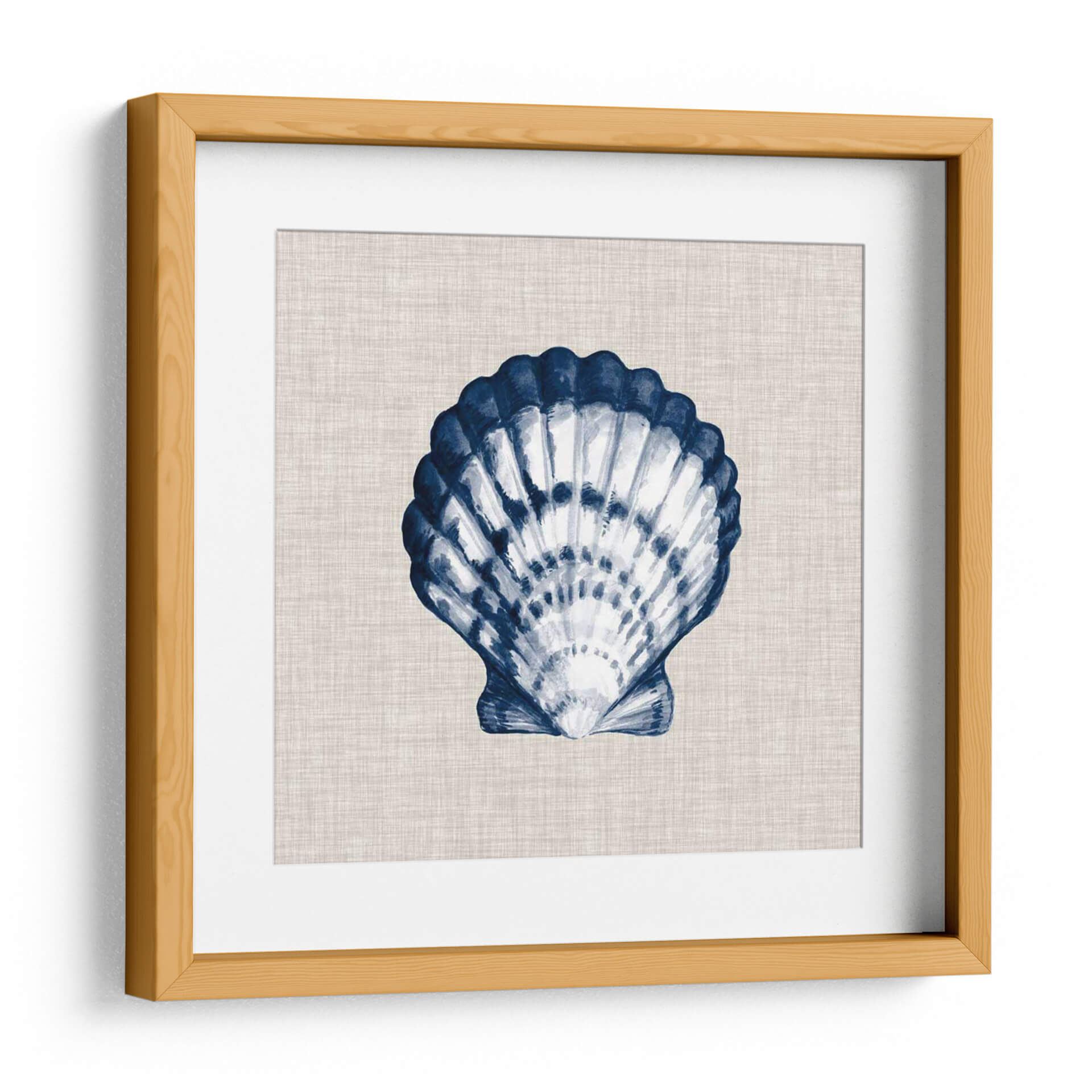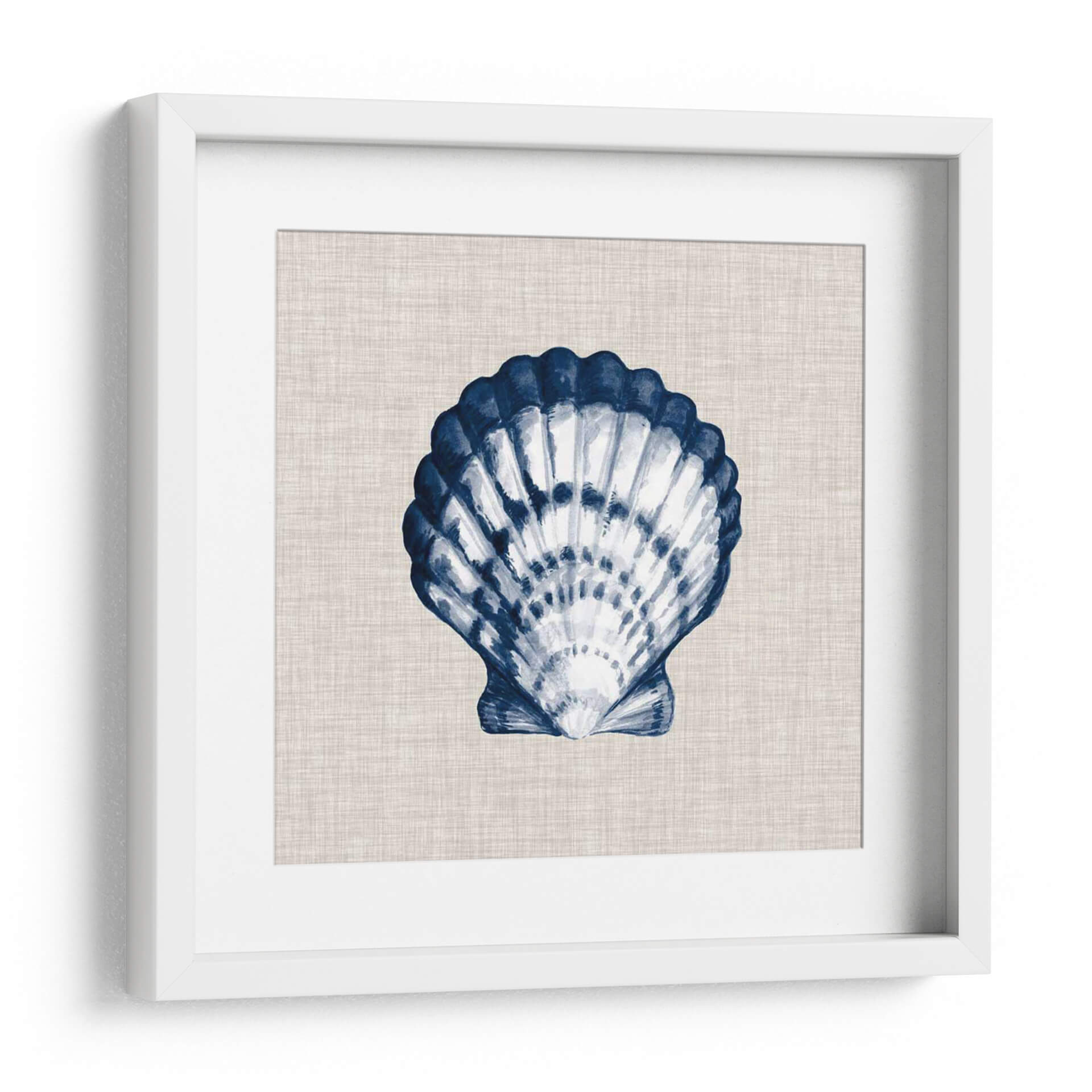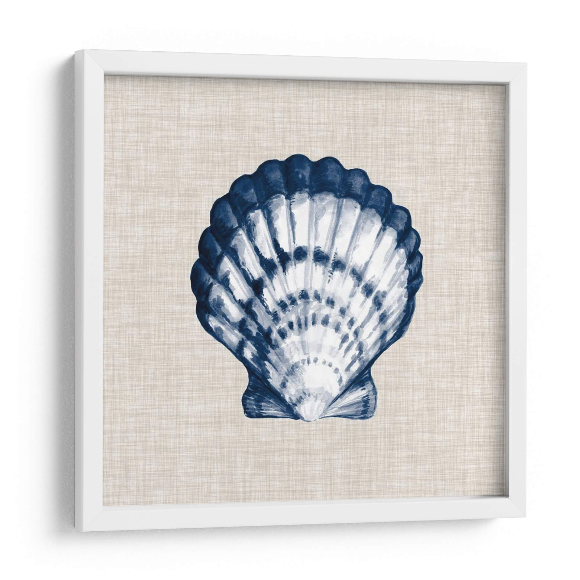 Sumérgete en la serenidad costera con "Ocean Memento Iii", una obra de arte que captura la delicada belleza de una concha marina con un estilo de acuarela evocador. La pieza presenta una detallada representación de una concha, pintada en vibrantes tonos de azul índigo y blanco, contrastando elegantemente sobre un fondo texturizado de lino en tono neutro. La técnica acuarela aporta una sensación de fluidez y ligereza, invitando a la contemplación y al relax. Los trazos audaces del azul profundo definen la forma de la concha, mientras que las sutiles variaciones de blanco y gris claro sugieren la luz y la sombra, dándole profundidad y realismo. Este cuadro decorativo es perfecto para añadir un toque de sofisticación y tranquilidad a cualquier espacio. Imagina esta pieza en tu sala de estar, dormitorio o incluso en un baño inspirado en la playa, creando una atmósfera de calma y conexión con la naturaleza. Su diseño atemporal y su paleta de colores versátil lo convierten en una adición ideal para estilos de decoración costeros, bohemios, minimalistas o escandinavos. "Ocean Memento Iii" no es solo una imagen, es una invitación a pausar y apreciar la belleza del océano en tu propio hogar.