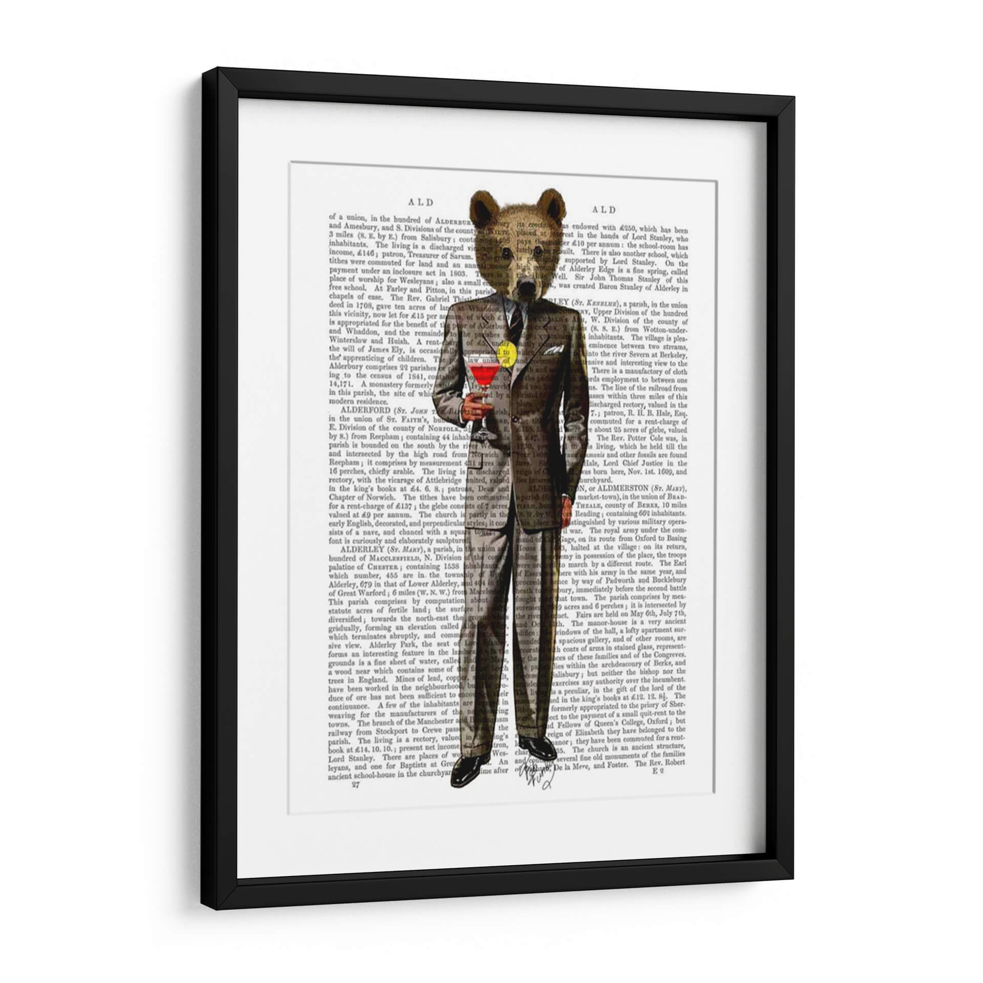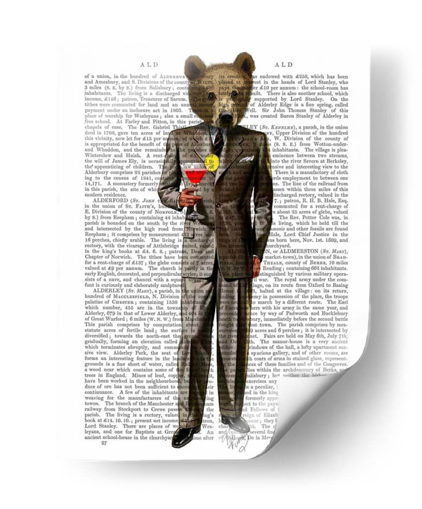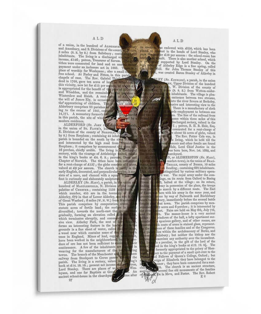Transforma tu espacio con este cautivador cuadro decorativo, "Oso Con Cóctel", del artista Fab Funky. Esta obra de arte contemporánea presenta un oso antropomórfico vestido con un elegante traje, sosteniendo un cóctel con una expresión serena, sobre un fondo de texto vintage. La paleta de colores, dominada por tonos tierra, marrones y un toque de rojo vibrante en la bebida, crea una atmósfera sofisticada y ligeramente lúdica. El estilo único de Fab Funky fusiona lo clásico con lo moderno, resultando en una pieza que es tanto intrigante como elegante. Este cuadro decorativo es perfecto para añadir un toque de personalidad y conversación a tu sala de estar, estudio u oficina. Su composición detallada y el contraste entre la figura formal y el elemento informal del cóctel lo convierten en un punto focal memorable. Ideal para quienes aprecian el arte con un giro ingenioso y buscan una decoración de pared que combine estilo, humor y una ejecución artística impecable. Añade esta pieza única a tu colección y deja que su encanto contemporáneo eleve la estética de tu hogar.