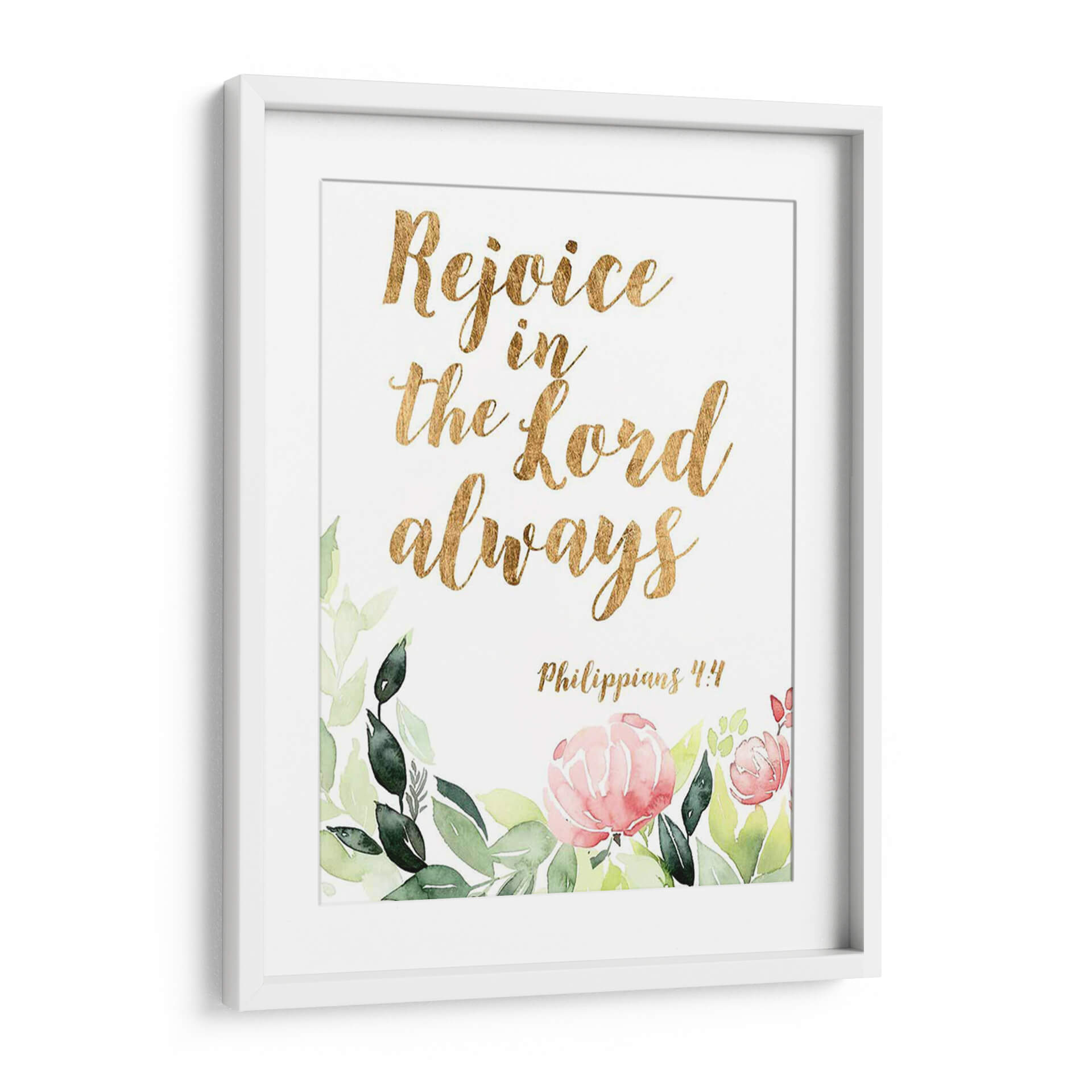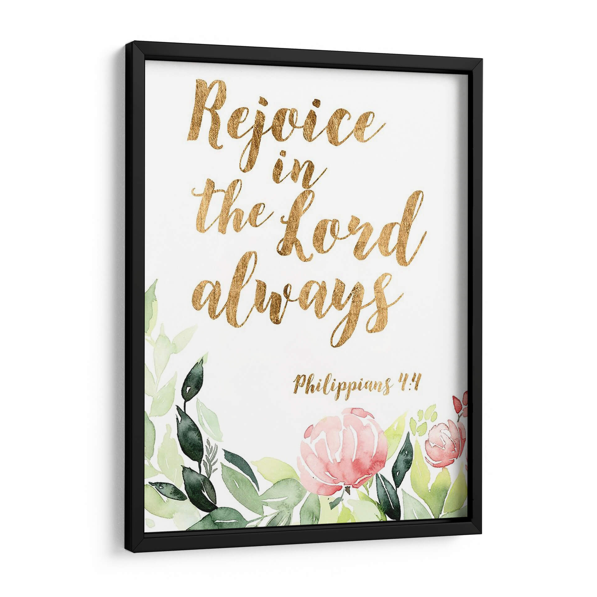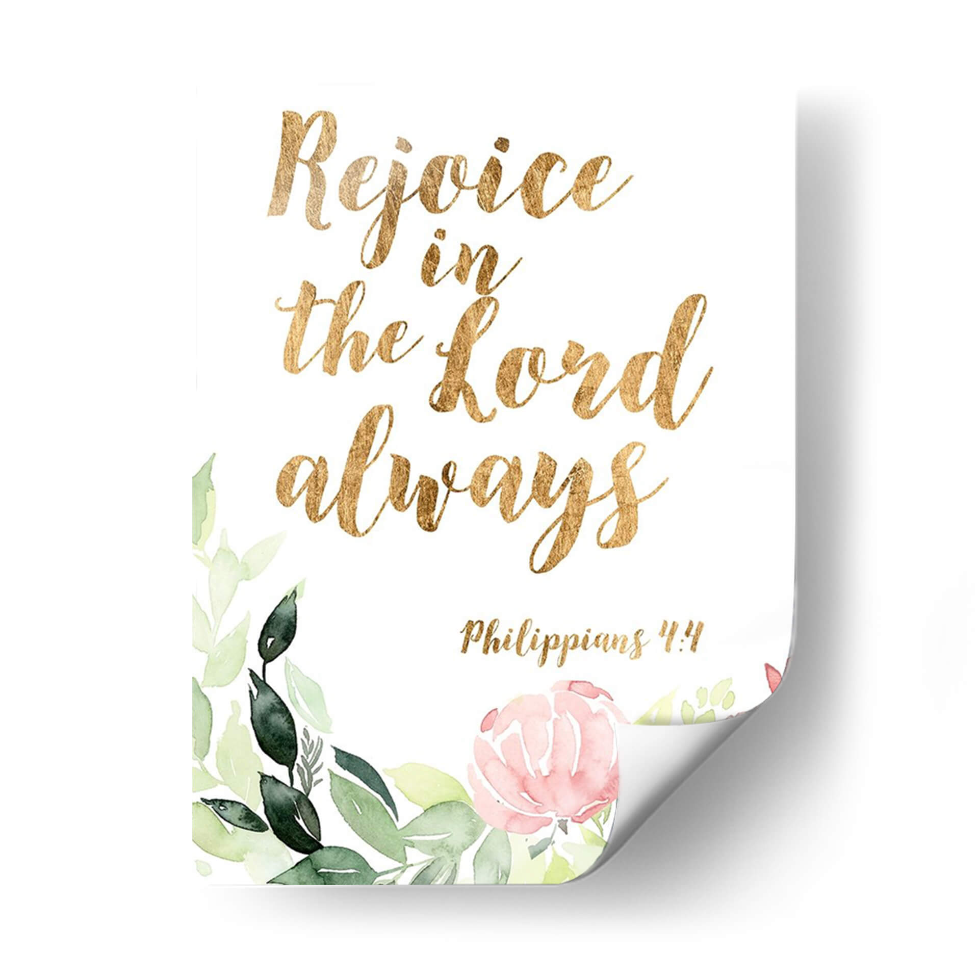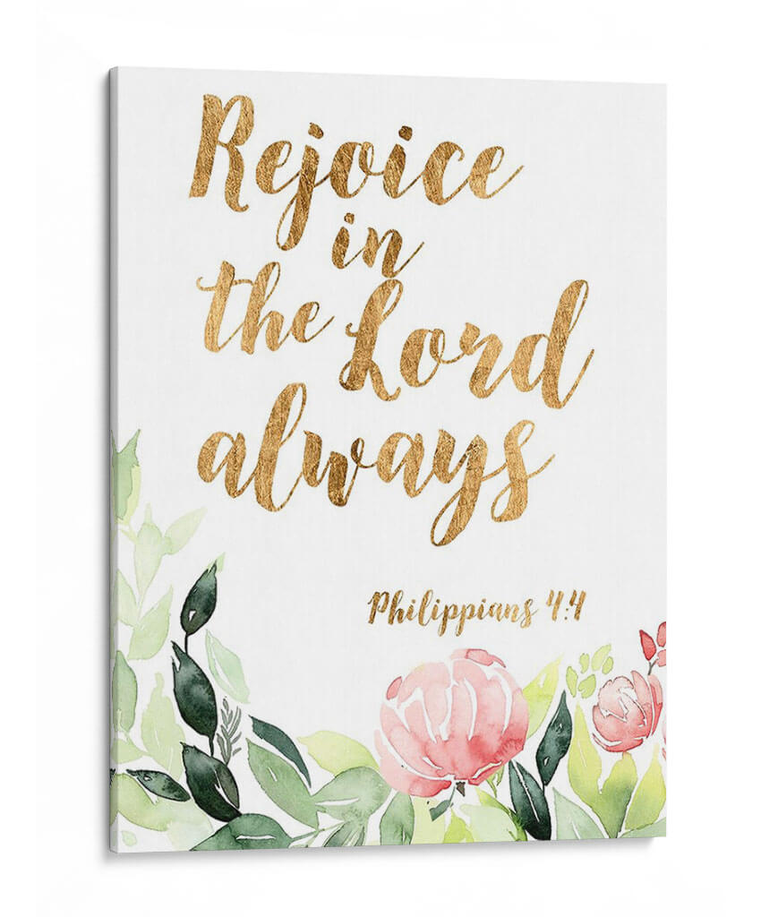 Embellece tu espacio con "Palabras De Gracia Floral II", una obra de arte inspiradora que combina la delicadeza de la acuarela floral con la fuerza de un mensaje bíblico. Este cuadro decorativo presenta la cita "Rejoice in the Lord always" ("Regocíjate en el Señor siempre") en una elegante tipografía dorada, rodeada por un suave y vibrante arreglo de flores y follaje pintados al estilo acuarela. Los tonos verdes de las hojas y los pétalos rosados y salmón de las flores crean una atmósfera de paz y optimismo, perfecta para cualquier rincón de tu hogar u oficina. La referencia bíblica, Filipenses 4:4, añade una capa de significado espiritual y consuelo a la pieza, convirtiéndola en un recordatorio constante de gratitud y fe. Ideal para quienes buscan arte con propósito, este cuadro decorativo no solo añade un toque de color y sofisticación, sino que también imparte una sensación de serenidad y esperanza. Transforma tu sala de estar, dormitorio o incluso tu espacio de trabajo con esta pieza única que inspira alegría y reflexión.