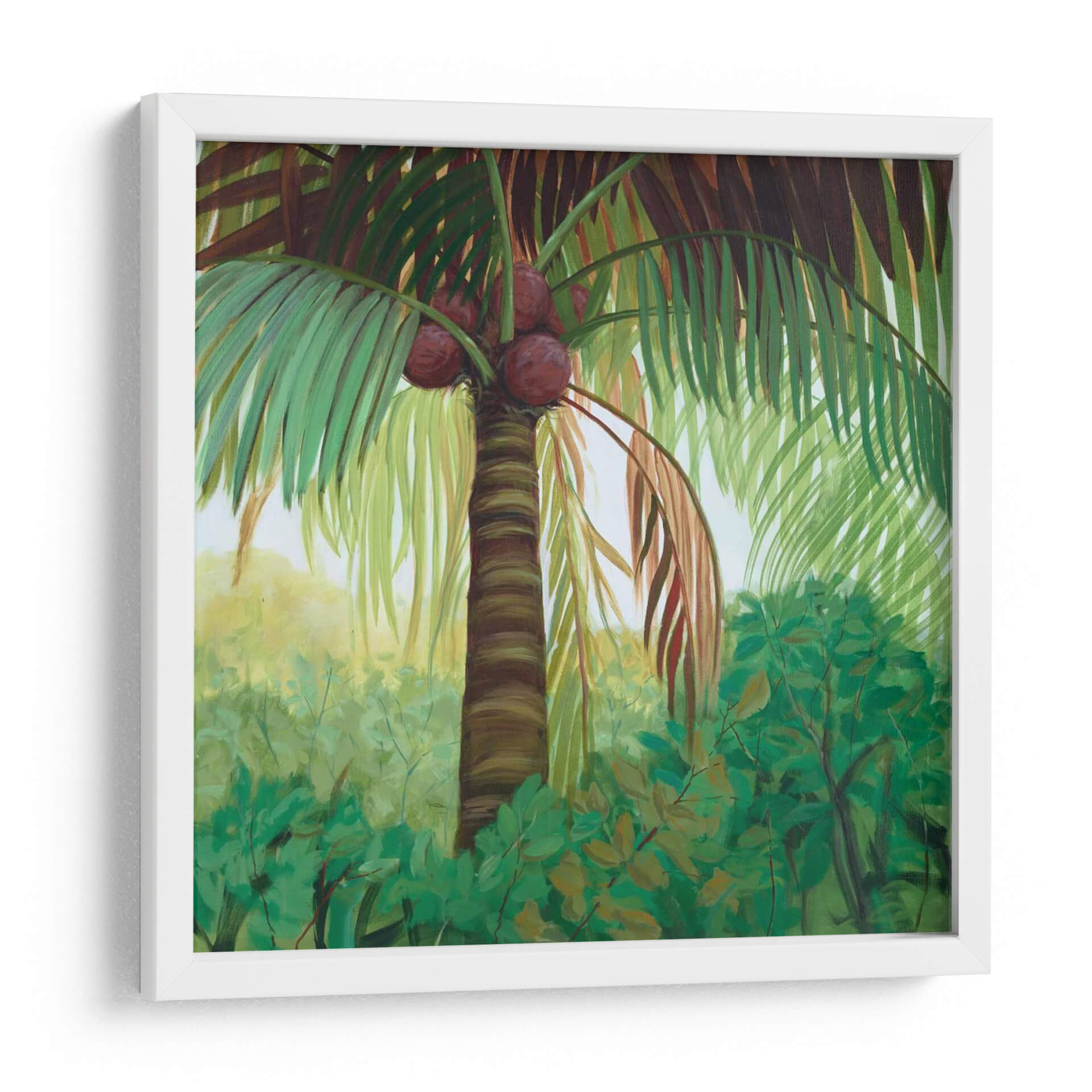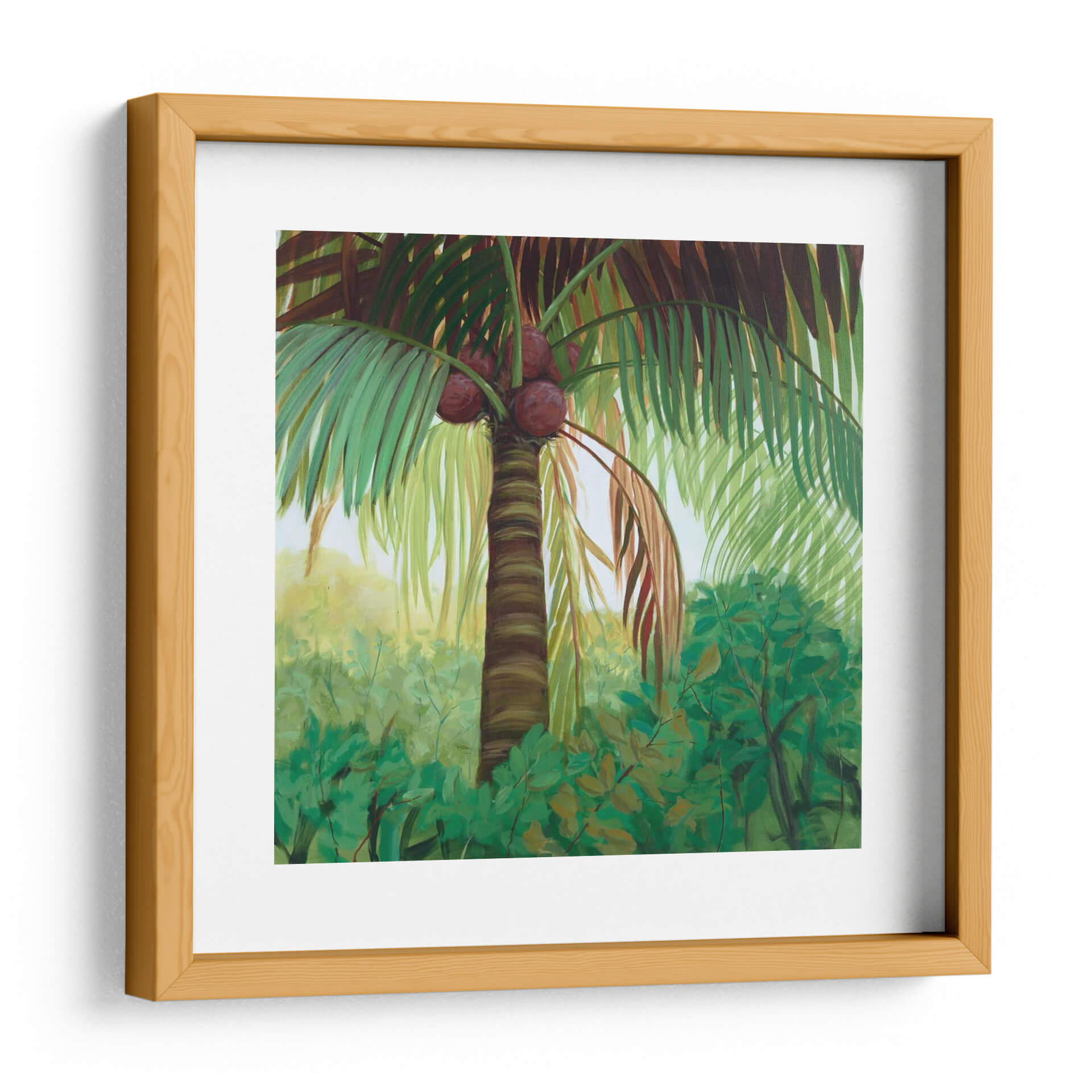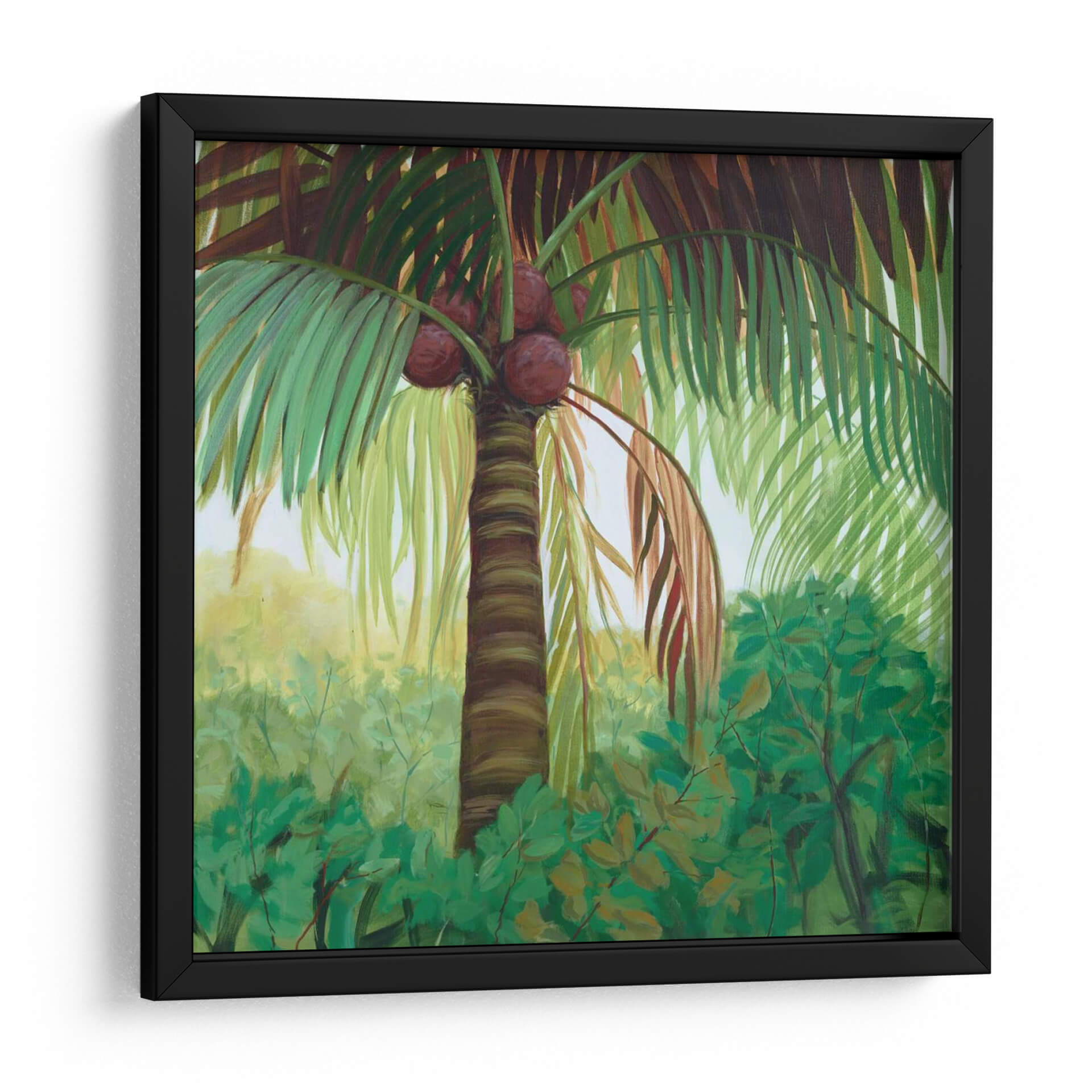 Sumérgete en la exuberante serenidad tropical con "Palm Tropic I", una cautivadora obra de arte de Julie Joy. Esta pieza captura la esencia de un paraíso escondido, presentando una palmera majestuosa con sus frutos maduros, rodeada por un denso follaje verde. La paleta de colores, dominada por vibrantes tonos de verde en diversas tonalidades y cálidos toques de marrón y ocre en el tronco y las hojas secas, evoca una sensación de frescura y vitalidad natural. El estilo pictórico, con pinceladas expresivas y un enfoque en la luz y la sombra, crea una atmósfera envolvente y soñadora, transportando al espectador a un rincón idílico de la naturaleza. "Palm Tropic I" es ideal para añadir un toque de exotismo y calma a cualquier espacio, ya sea una sala de estar, un dormitorio o un estudio. Este cuadro decorativo transformará tu hogar en un oasis de tranquilidad, invitando a la relajación y la contemplación. Descubre la belleza de lo tropical y lleva la naturaleza a tu hogar con esta pieza única.