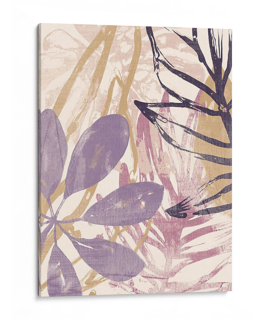 Sumérgete en la serenidad tropical con "Palmas Púrpuras I", una obra de arte cautivadora de June Erica Vess. Este cuadro decorativo abstracto presenta una interpretación lírica de la vegetación exuberante, donde las delicadas palmas se despliegan en una paleta de colores suaves y envolventes. Los tonos lavanda y púrpura se entrelazan con toques de beige y rosa pálido, creando una atmósfera de calma y sofisticación. Las pinceladas visibles y las texturas sutiles añaden profundidad y carácter a la composición, invitando a la contemplación. Ideal para cualquier espacio que busque un toque de naturaleza estilizada y elegancia contemporánea, "Palmas Púrpuras I" es perfecto para dar vida a salas de estar, dormitorios o incluso oficinas, transformando cualquier pared en un oasis de tranquilidad y estilo. Descubre cómo esta pieza puede añadir un aire fresco y artístico a tu hogar, evocando la belleza serena de un jardín exótico bajo una luz tenue. Una adición esencial para los amantes del arte que aprecian la fusión entre lo natural y lo abstracto.