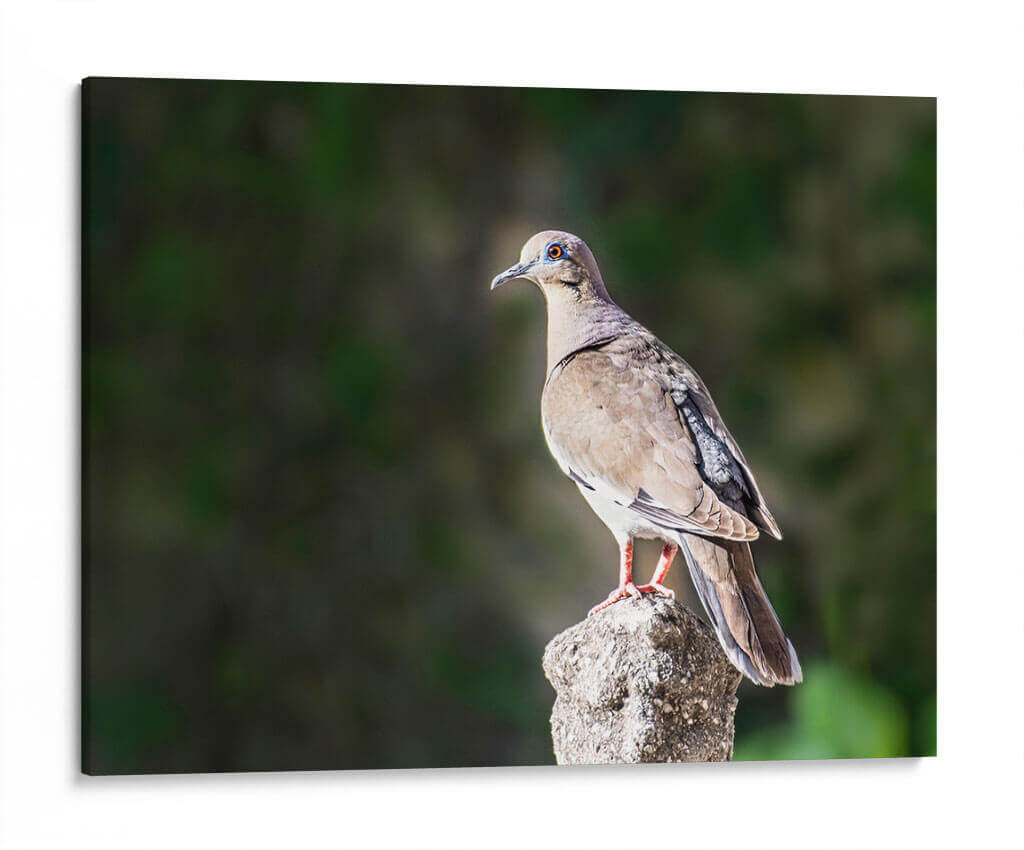 Captura la serenidad de la naturaleza en tu hogar con "Paloma Ala Blanca", una obra maestra de Ariadne Contreras. Este cuadro decorativo presenta una detallada y realista representación de una paloma posada sobre una roca, con el plumaje en tonos tierra y acentos sutiles que resaltan su elegancia natural. El fondo difuminado en verdes profundos crea un contraste que centra la atención en el ave, transmitiendo una sensación de paz y tranquilidad. La composición, con la paloma mirando hacia el horizonte, evoca una atmósfera de calma contemplativa, ideal para espacios que buscan un toque de naturaleza y serenidad. La delicadeza de sus alas, la nitidez de sus ojos y la textura de la roca están capturadas con maestría, ofreciendo una pieza de arte que inspira sosiego y conexión con el entorno natural. Es una adición perfecta para salones, dormitorios o estudios, aportando un elemento de calma y sofisticación orgánica. Este cuadro decorativo no solo embellece tu pared, sino que también invita a la reflexión y al disfrute de la belleza sutil del mundo natural, convirtiéndose en un punto focal sereno y elegante.
