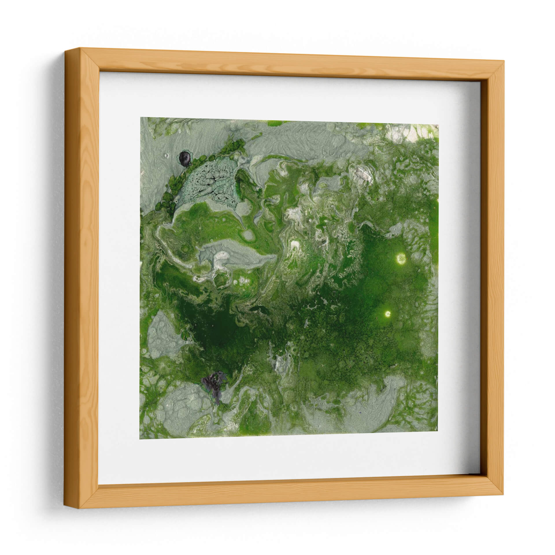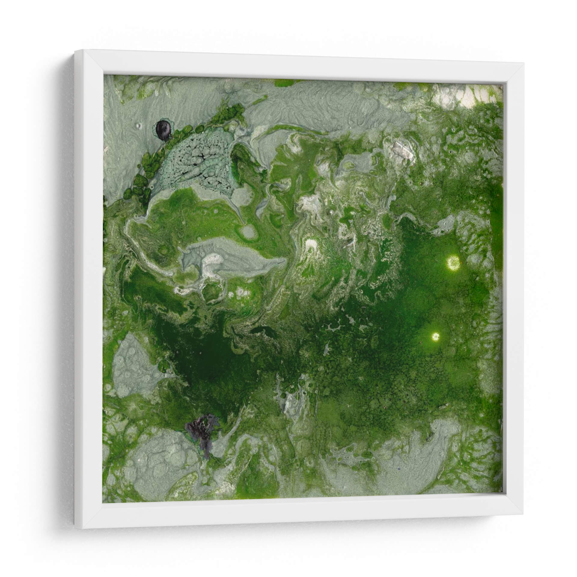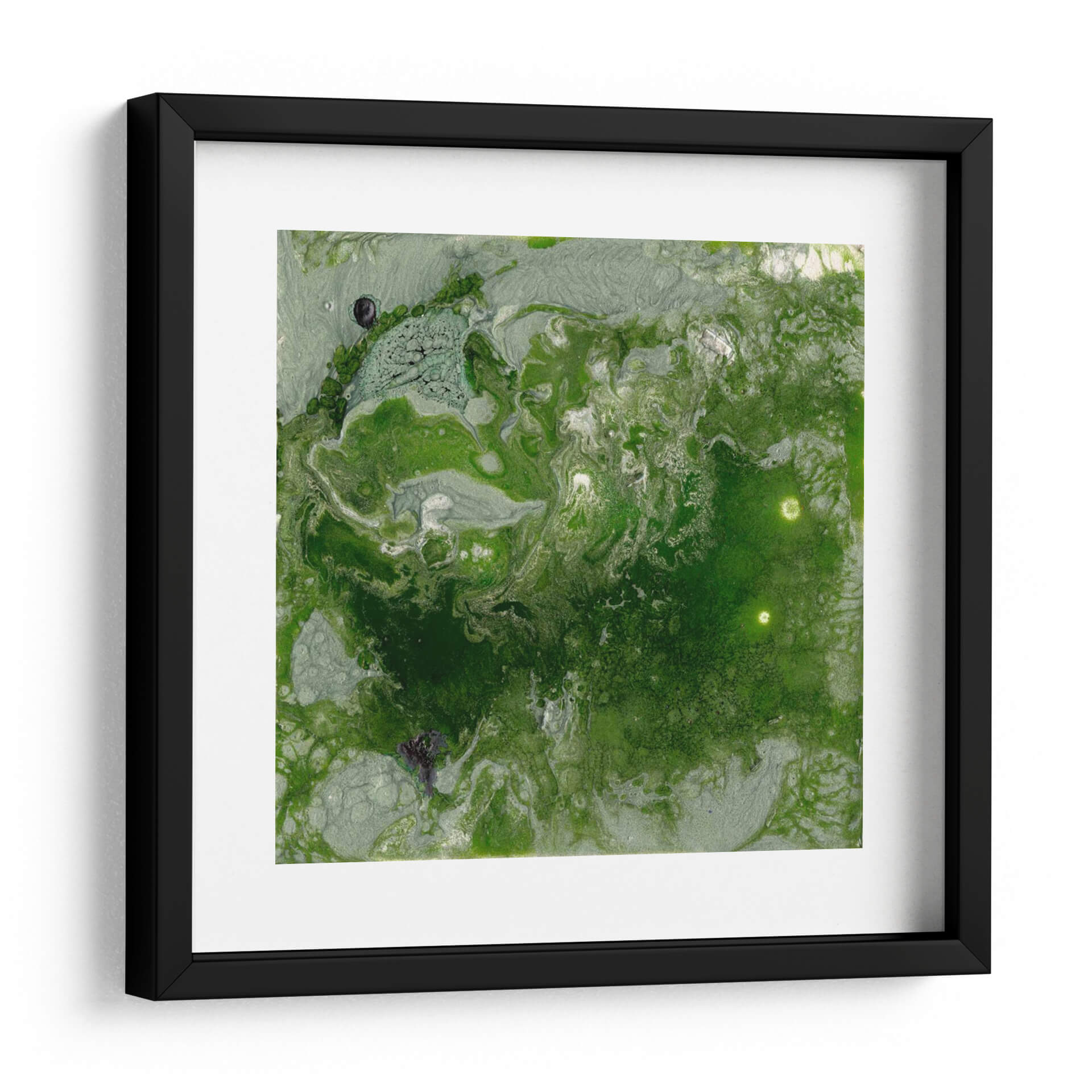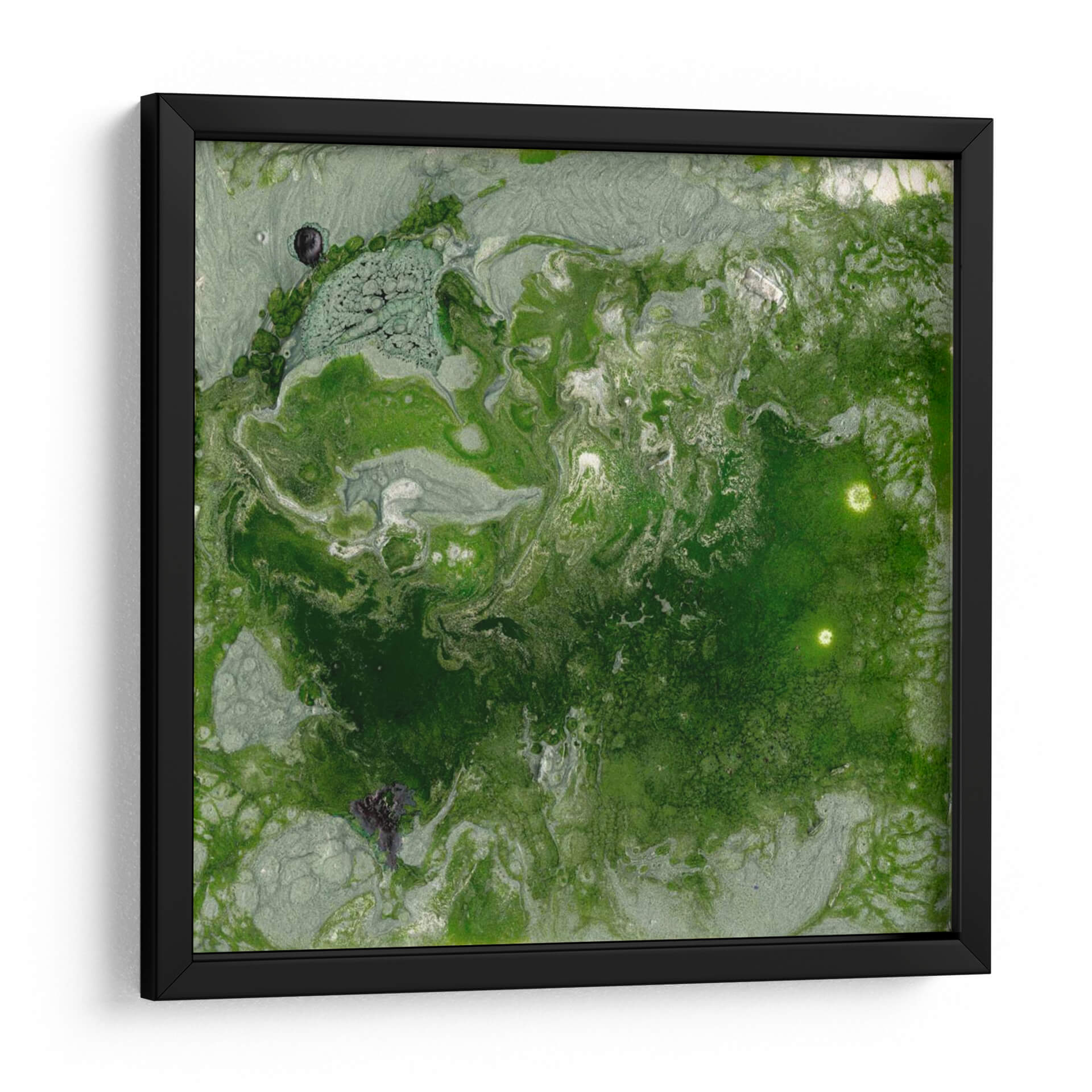 Sumérgete en la profundidad visual de "Pangea I", una cautivadora obra abstracta de Alicia Ludwig que evoca la esencia de la naturaleza y la tierra. Esta pieza se caracteriza por su rica paleta de verdes intensos, que varían desde tonos musgo hasta esmeralda vibrante, entrelazados con sutiles matices plateados y grises que aportan luminosidad y movimiento. La composición fluye orgánicamente, creando texturas que recuerdan a paisajes geológicos o formaciones microscópicas, invitando a la contemplación y al descubrimiento de detalles ocultos. "Pangea I" es una invitación a conectar con la serenidad y la fuerza vital del mundo natural, perfecta para añadir un toque de sofisticación orgánica a cualquier espacio. Su estilo abstracto contemporáneo la convierte en una adición versátil para salones modernos, oficinas o dormitorios, aportando una atmósfera de calma y profunda reflexión. Transforma tu hogar con este cuadro decorativo que no solo embellece, sino que también inspira y evoca la magnificencia del planeta.