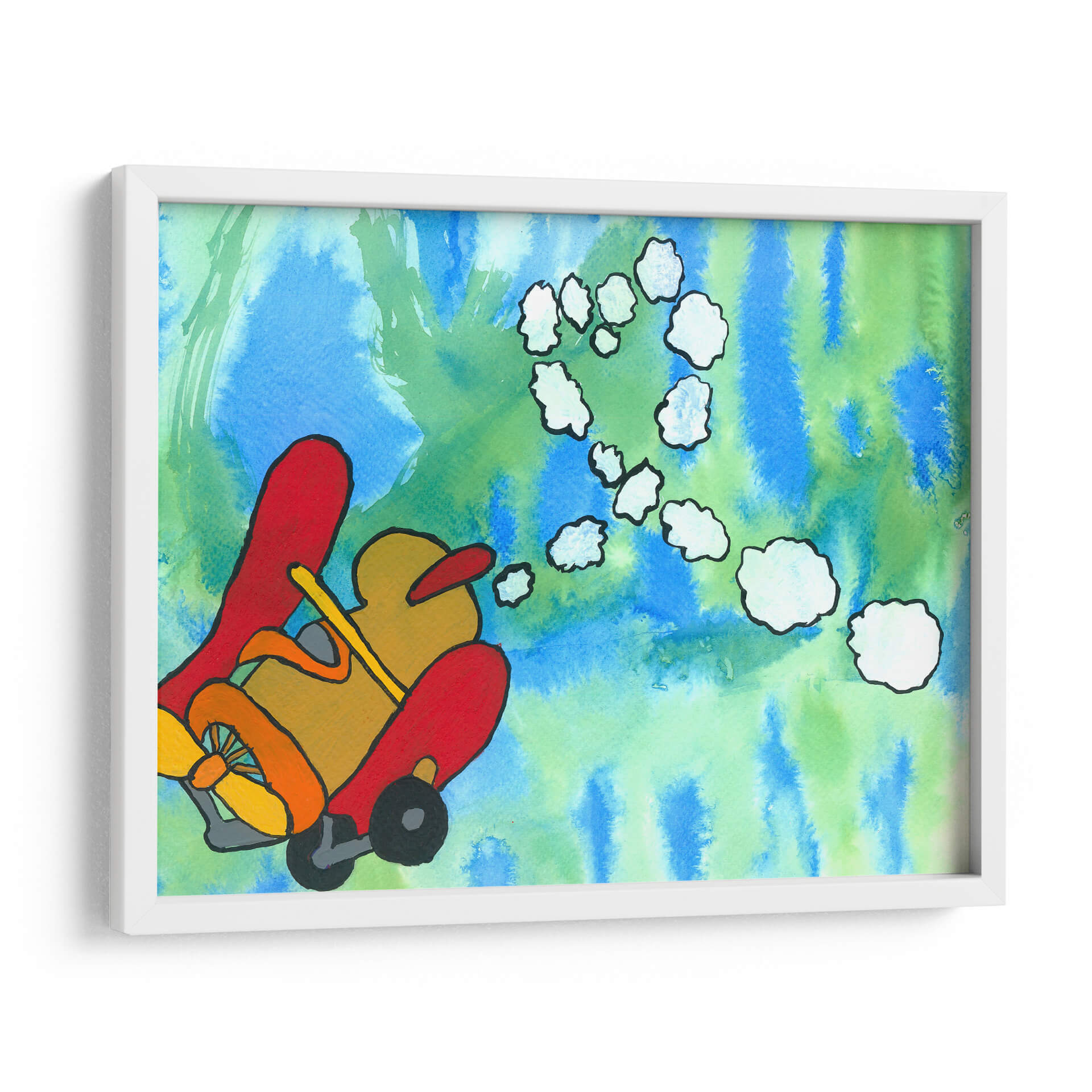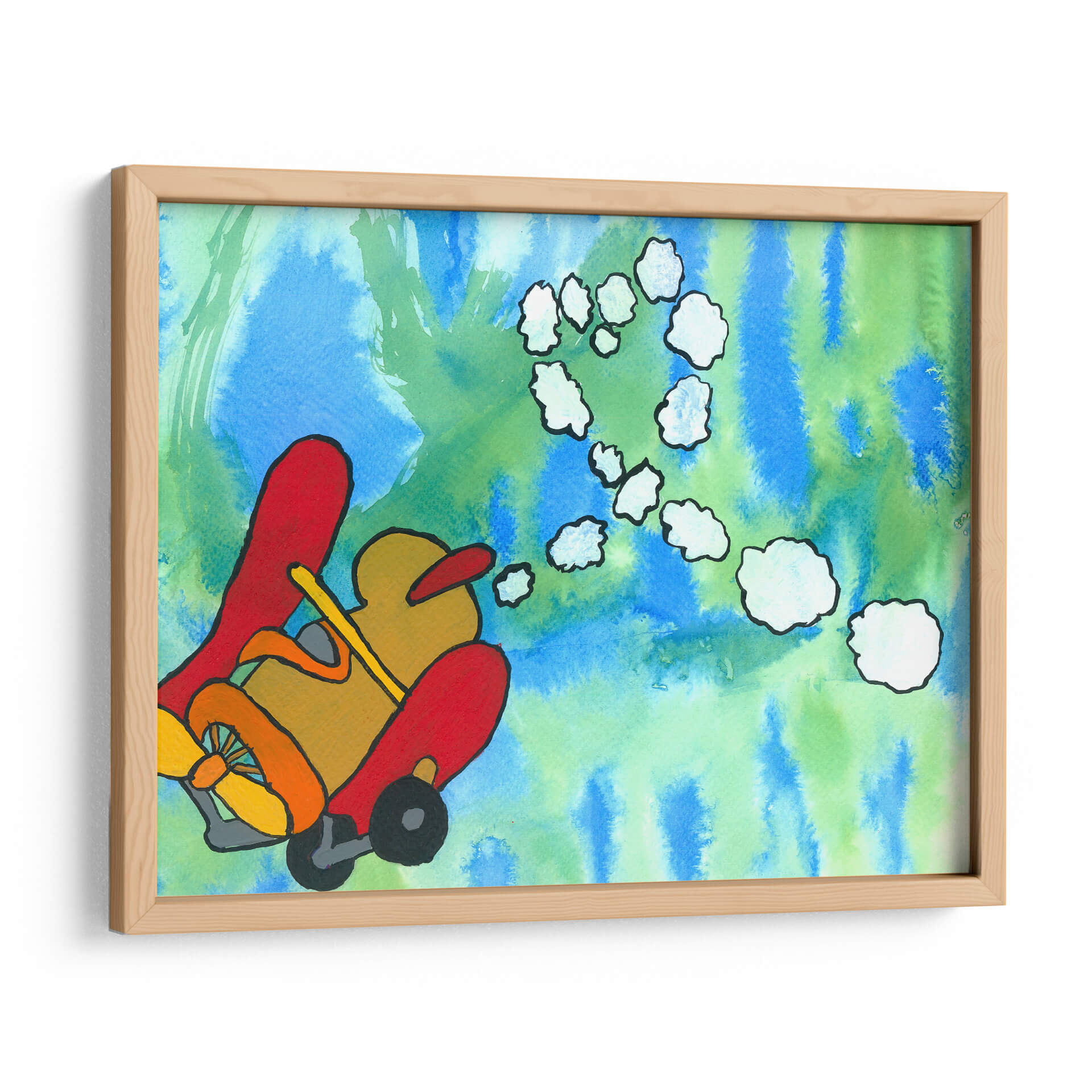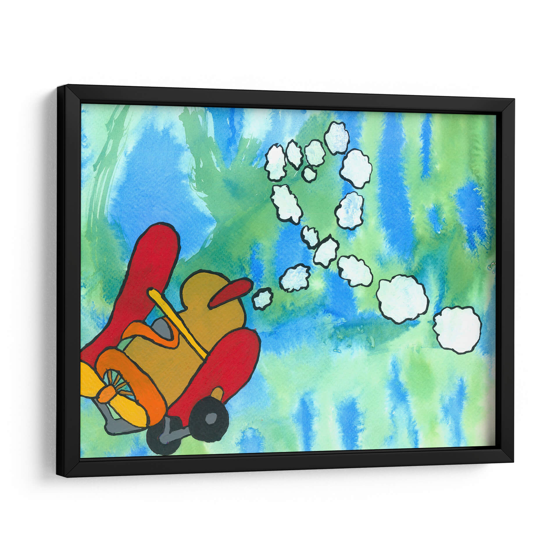 Sumérgete en un mundo de fantasía y aventura con "Paseo Fantástico", una obra de arte vibrante y juguetona del artista Alejandro Pérez. Este cuadro decorativo captura la imaginación con su representación estilizada de un vehículo aéreo, evocando una sensación de libertad y exploración. La paleta de colores, dominada por azules y verdes etéreos en el fondo, contrasta maravillosamente con los tonos cálidos y audaces del vehículo principal, creando una composición visualmente impactante y llena de energía. Las nubes abstractas que flotan en el aire añaden un toque de ensueño, invitando al espectador a crear sus propias historias. El estilo distintivo del artista, con sus líneas definidas y su uso audaz del color, hace de esta pieza un elemento decorativo ideal para cualquier espacio que necesite un toque de originalidad y optimismo. Es perfecto para salas de estar, dormitorios infantiles o estudios creativos, infundiendo alegría y estimulando la conversación. "Paseo Fantástico" no es solo una decoración de pared, es una invitación a soñar despierto y a embarcarse en viajes imaginarios, transformando tu hogar en un santuario de creatividad y buen humor. Añade esta pieza única a tu colección y deja que su encanto lúdico ilumine tu día a día.