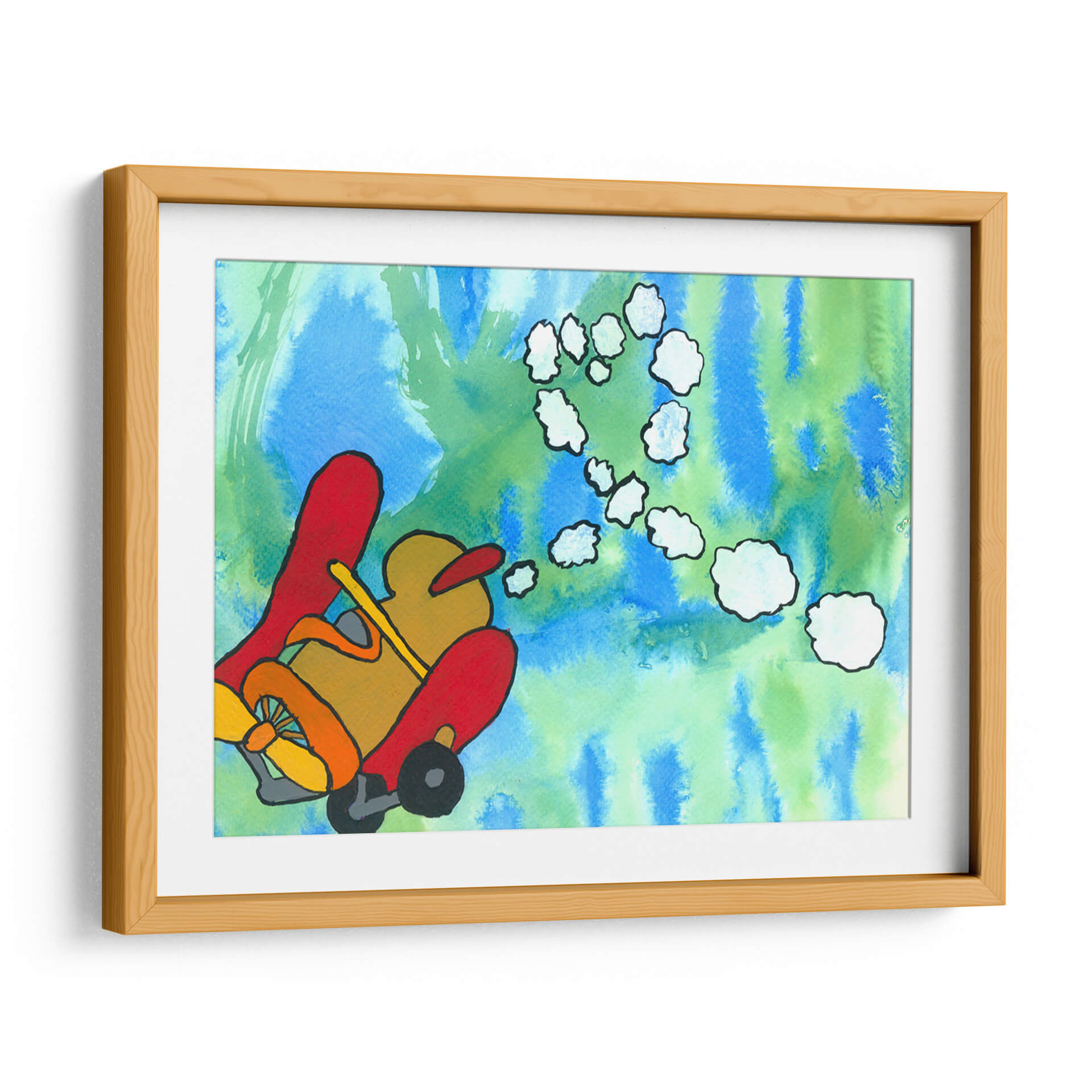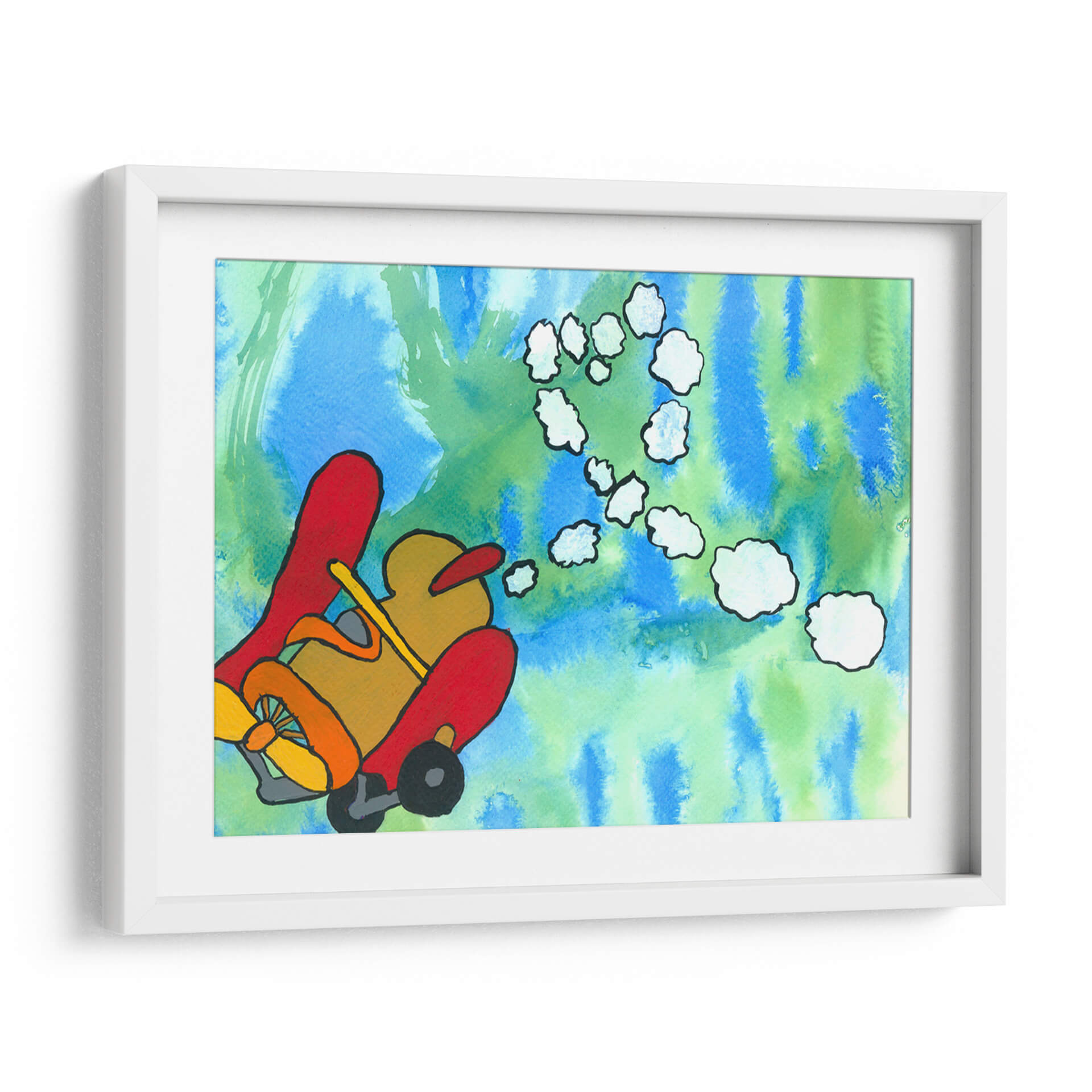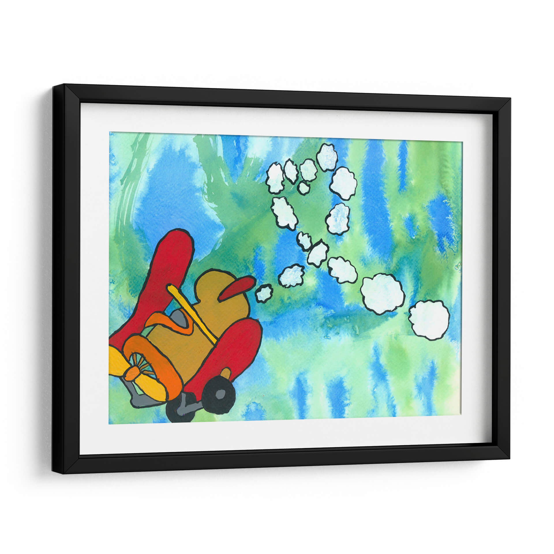 Sumérgete en un mundo de fantasía y aventura con "Paseo Fantástico", una obra de arte vibrante y juguetona del artista Alejandro Pérez. Este cuadro decorativo captura la imaginación con su representación estilizada de un vehículo aéreo, evocando una sensación de libertad y exploración. La paleta de colores, dominada por azules y verdes etéreos en el fondo, contrasta maravillosamente con los tonos cálidos y audaces del vehículo principal, creando una composición visualmente impactante y llena de energía. Las nubes abstractas que flotan en el aire añaden un toque de ensueño, invitando al espectador a crear sus propias historias. El estilo distintivo del artista, con sus líneas definidas y su uso audaz del color, hace de esta pieza un elemento decorativo ideal para cualquier espacio que necesite un toque de originalidad y optimismo. Es perfecto para salas de estar, dormitorios infantiles o estudios creativos, infundiendo alegría y estimulando la conversación. "Paseo Fantástico" no es solo una decoración de pared, es una invitación a soñar despierto y a embarcarse en viajes imaginarios, transformando tu hogar en un santuario de creatividad y buen humor. Añade esta pieza única a tu colección y deja que su encanto lúdico ilumine tu día a día.