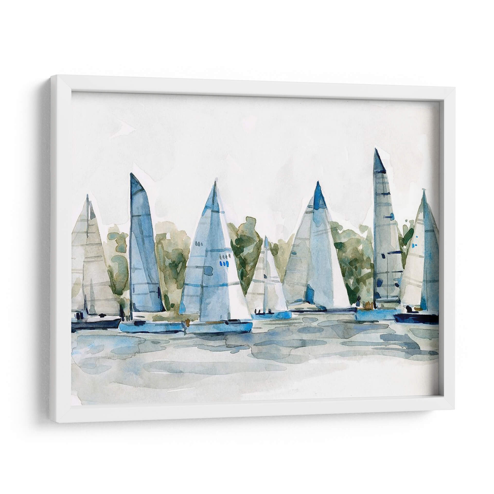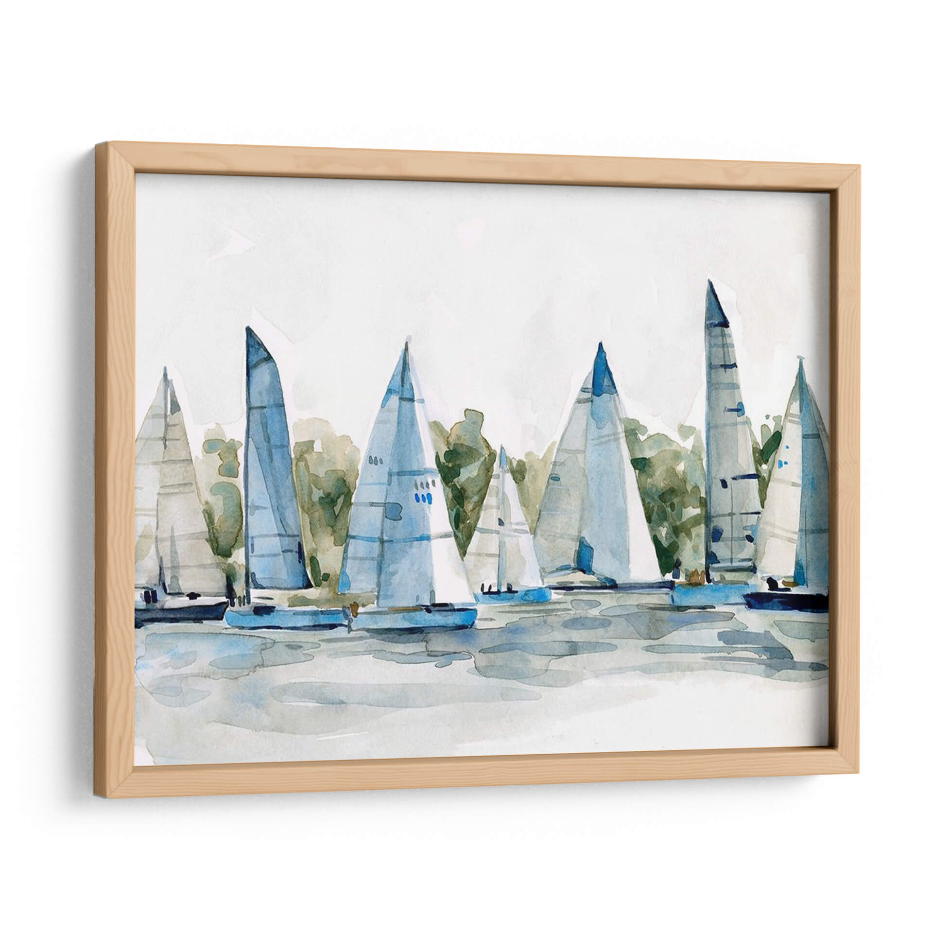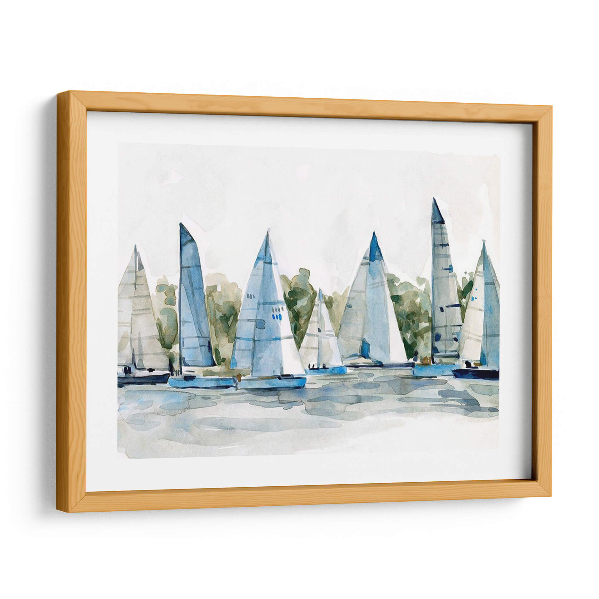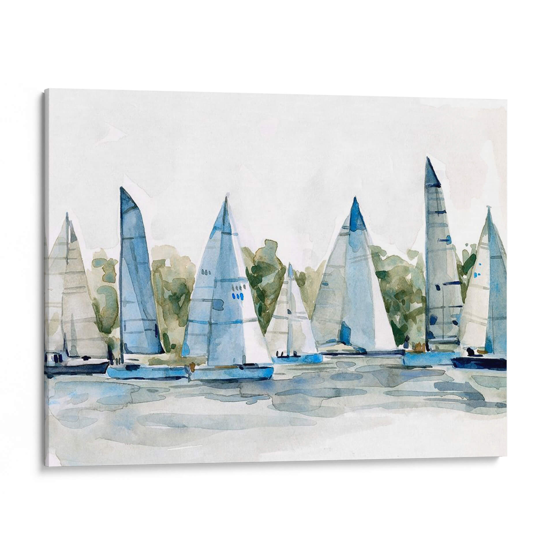 Sumérgete en la serenidad del mar con 'Pastel Marina I', una obra de arte de Emma Scarvey que captura la esencia de una flota de veleros navegando en aguas tranquilas. Esta pieza, ejecutada en un estilo acuarela etéreo y delicado, utiliza una paleta de colores pastel suaves, dominada por azules celestes, verdes acuáticos y toques de blanco puro, evocando una atmósfera de calma y paz. La composición, centrada en las siluetas estilizadas de los barcos y sus velas desplegadas, invita a la contemplación y al sosiego. Las pinceladas sueltas y fluidas añaden un toque impresionista, sugiriendo el movimiento suave de las embarcaciones y el reflejo del agua sin detallar en exceso. Ideal para espacios que buscan un refugio de tranquilidad, como dormitorios, salas de estar o estudios, este cuadro decorativo aporta una sensación de frescura y ligereza. 'Pastel Marina I' es una invitación a soñar con brisas marinas y horizontes despejados, transformando cualquier ambiente en un santuario de serenidad y estilo contemporáneo. Añade un toque de sofisticación náutica a tu hogar con esta pieza única que combina la delicadeza de la acuarela con la fuerza evocadora del mar.
