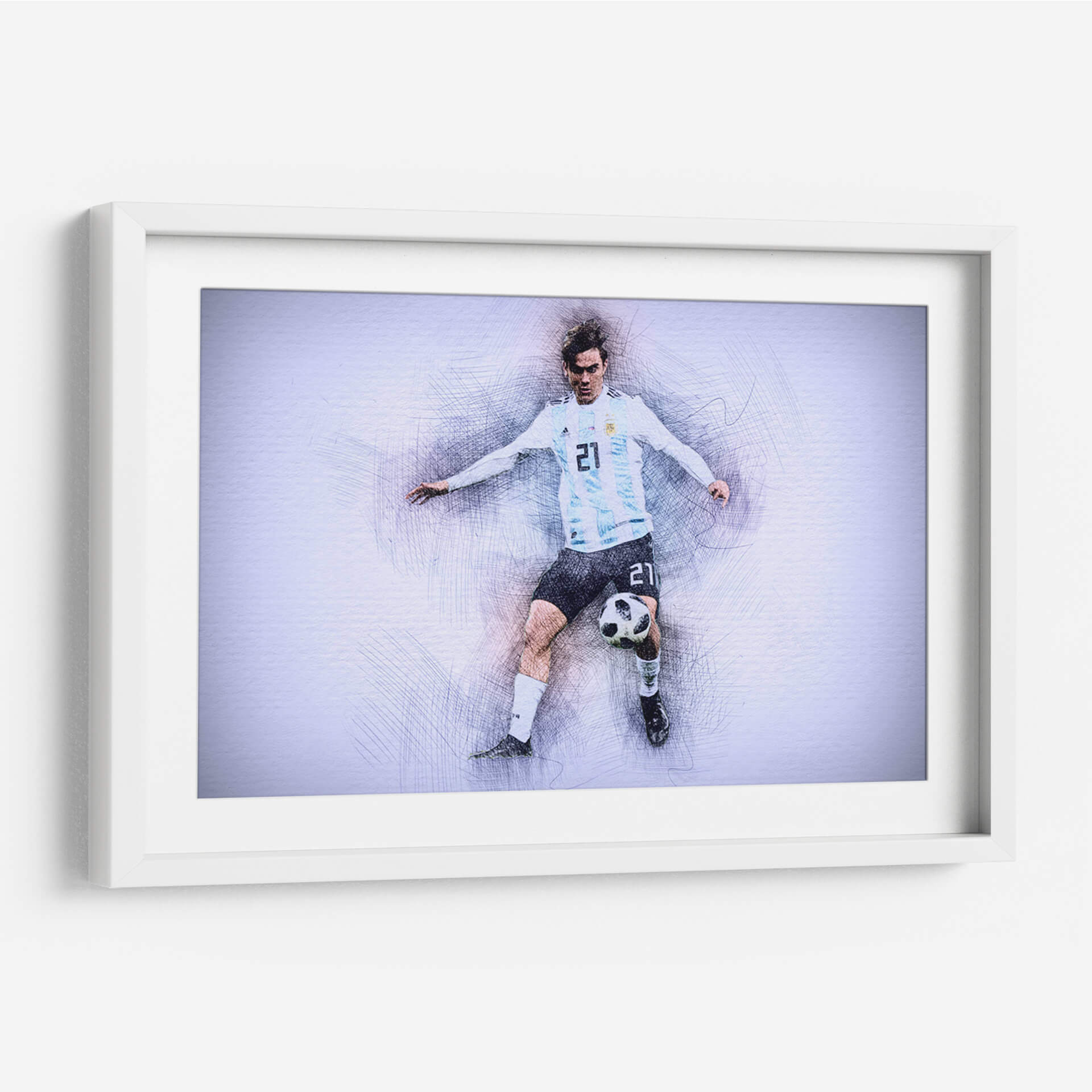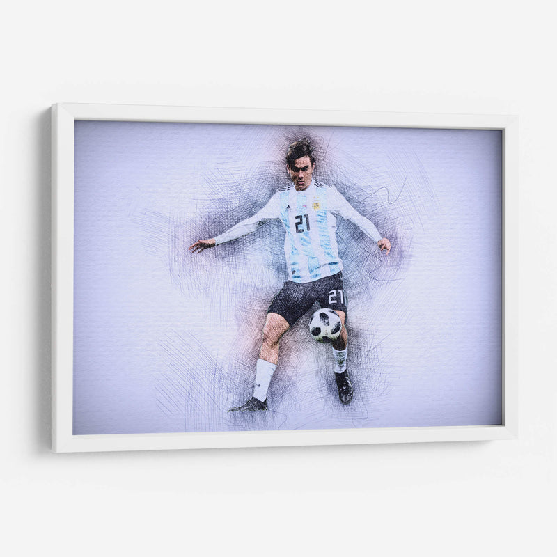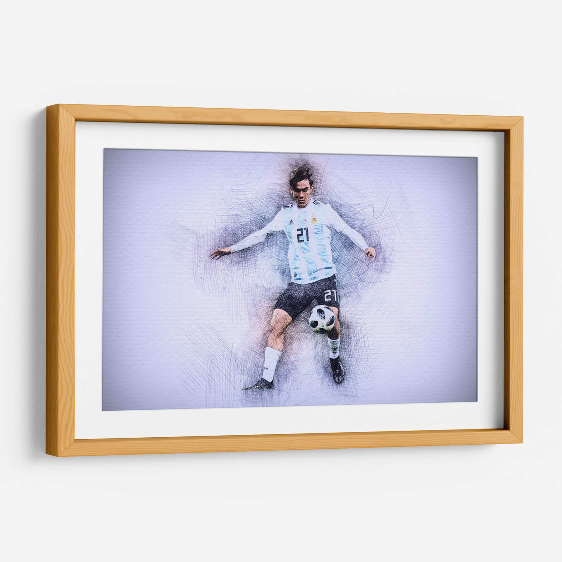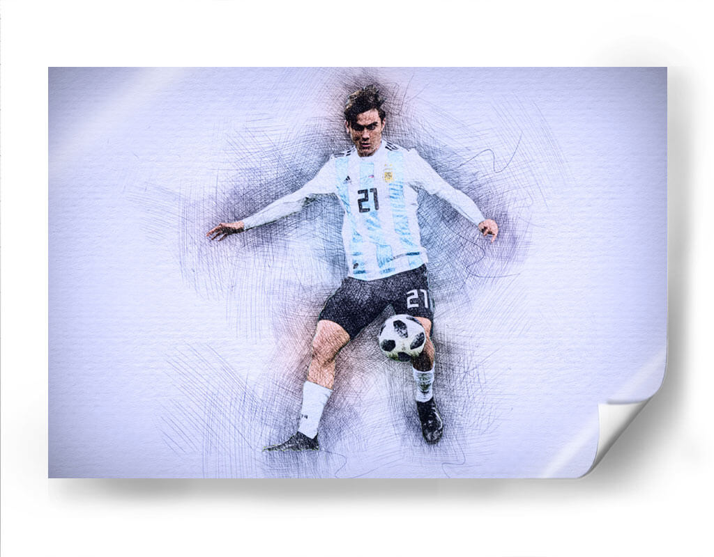 Captura la esencia del deporte y la pasión con este cuadro decorativo de Paulo Dybala en plena acción. La obra presenta al célebre futbolista argentino en un momento dinámico, controlando el balón con una técnica depurada. El estilo artístico combina trazos de boceto con un realismo sutil, creando una atmósfera vibrante y enérgica. Predominan los tonos fríos, con el celeste y blanco característico de la selección argentina que contrastan con los tonos más oscuros de la piel y el césped, aportando profundidad y un toque moderno. La composición centra la figura del deportista, invitando al espectador a admirar su destreza y concentración. Este cuadro es ideal para los amantes del fútbol, deportistas y aquellos que buscan inyectar vitalidad y un espíritu competitivo a sus espacios. Perfecto para decorar salas de estar, estudios, oficinas o cualquier lugar donde se desee un recordatorio inspirador de la dedicación y el talento. Añade un toque de genialidad deportiva a tu decoración con esta pieza única que celebra a uno de los íconos del fútbol contemporáneo. Su diseño versátil se adapta a interiores modernos y clásicos, convirtiéndose en un punto focal que atrae miradas y conversaciones.
