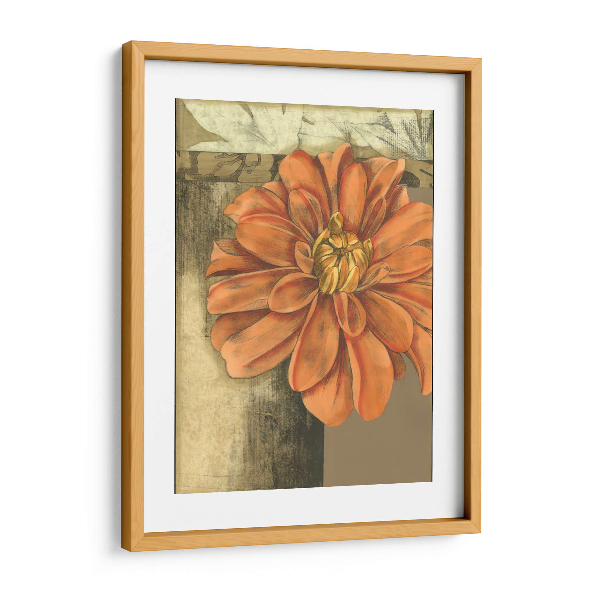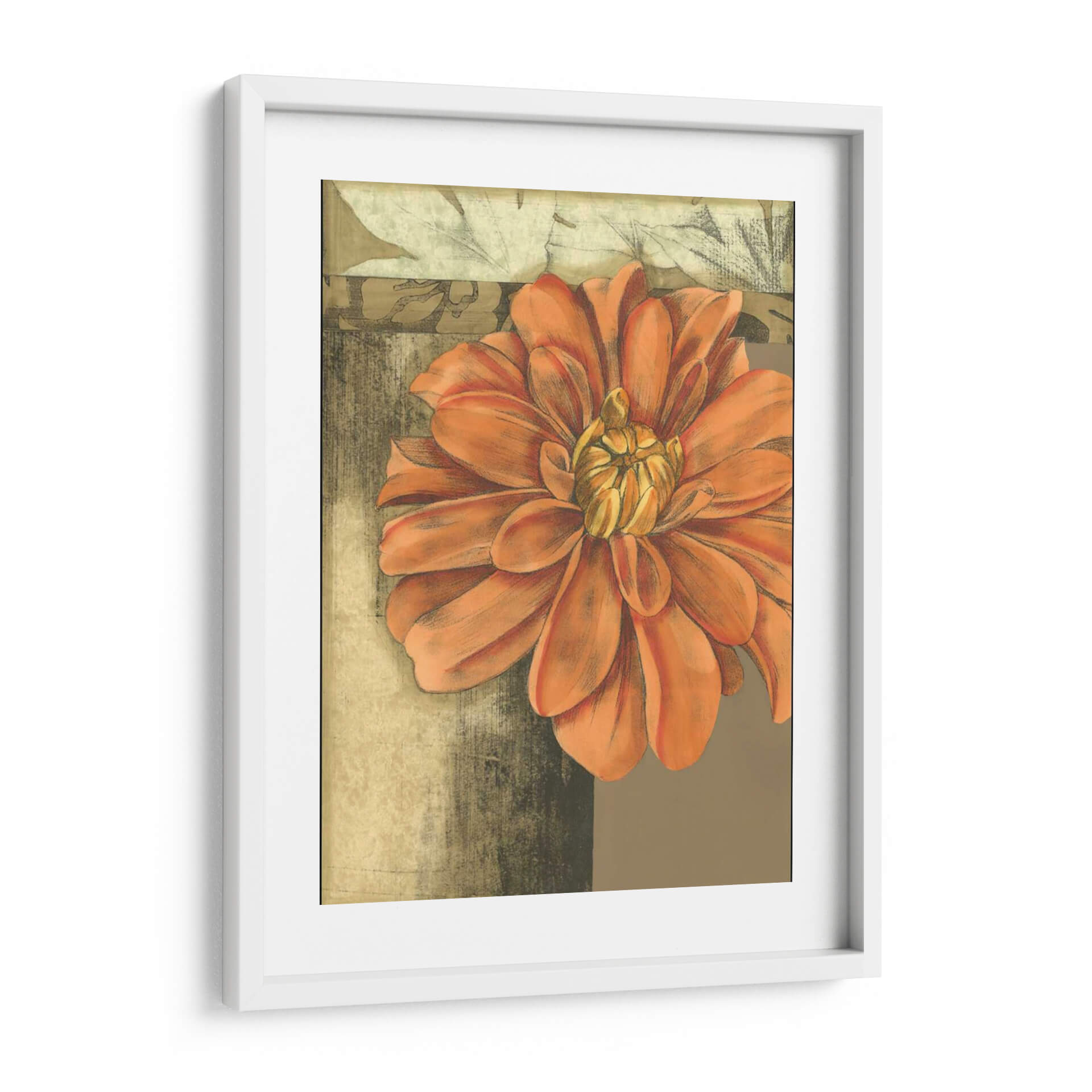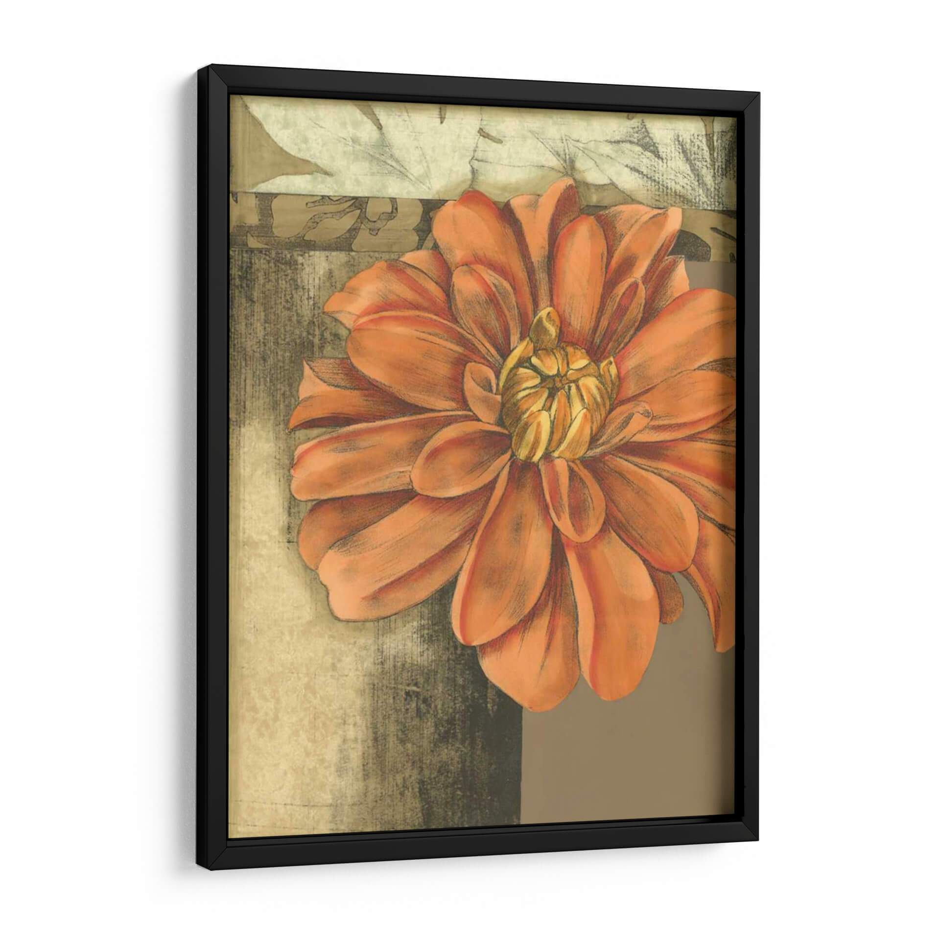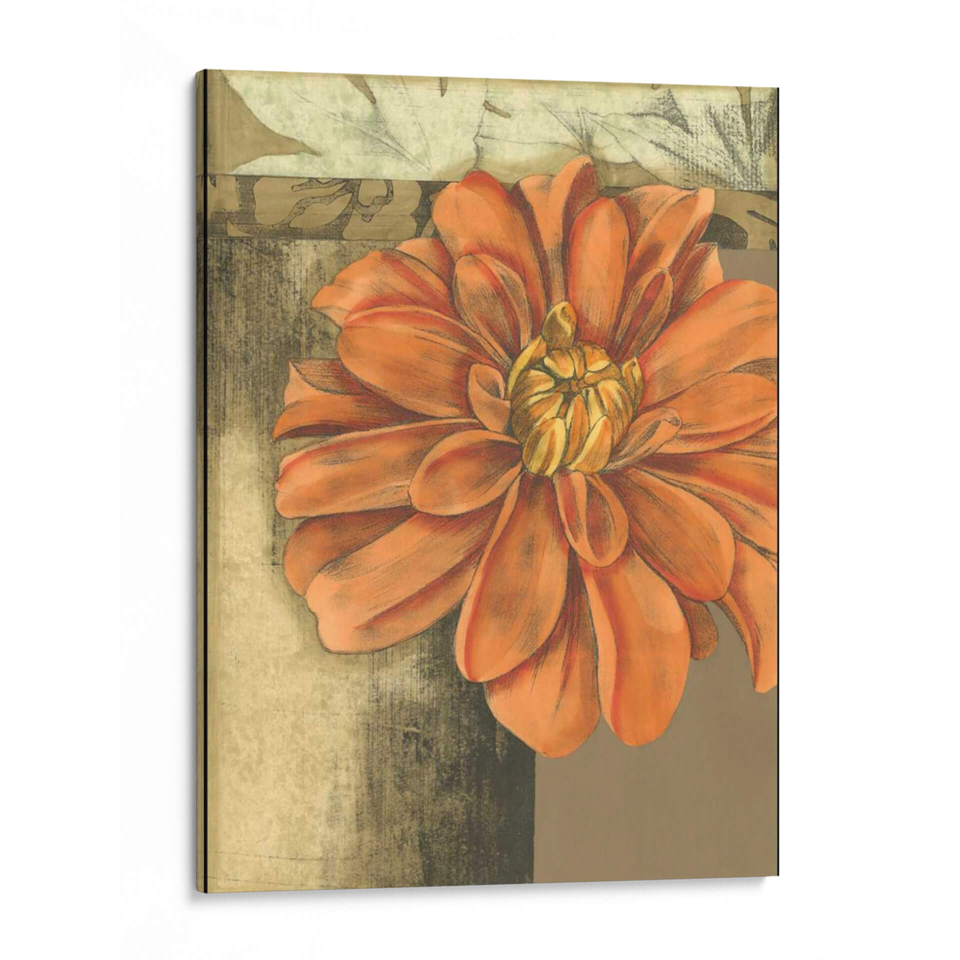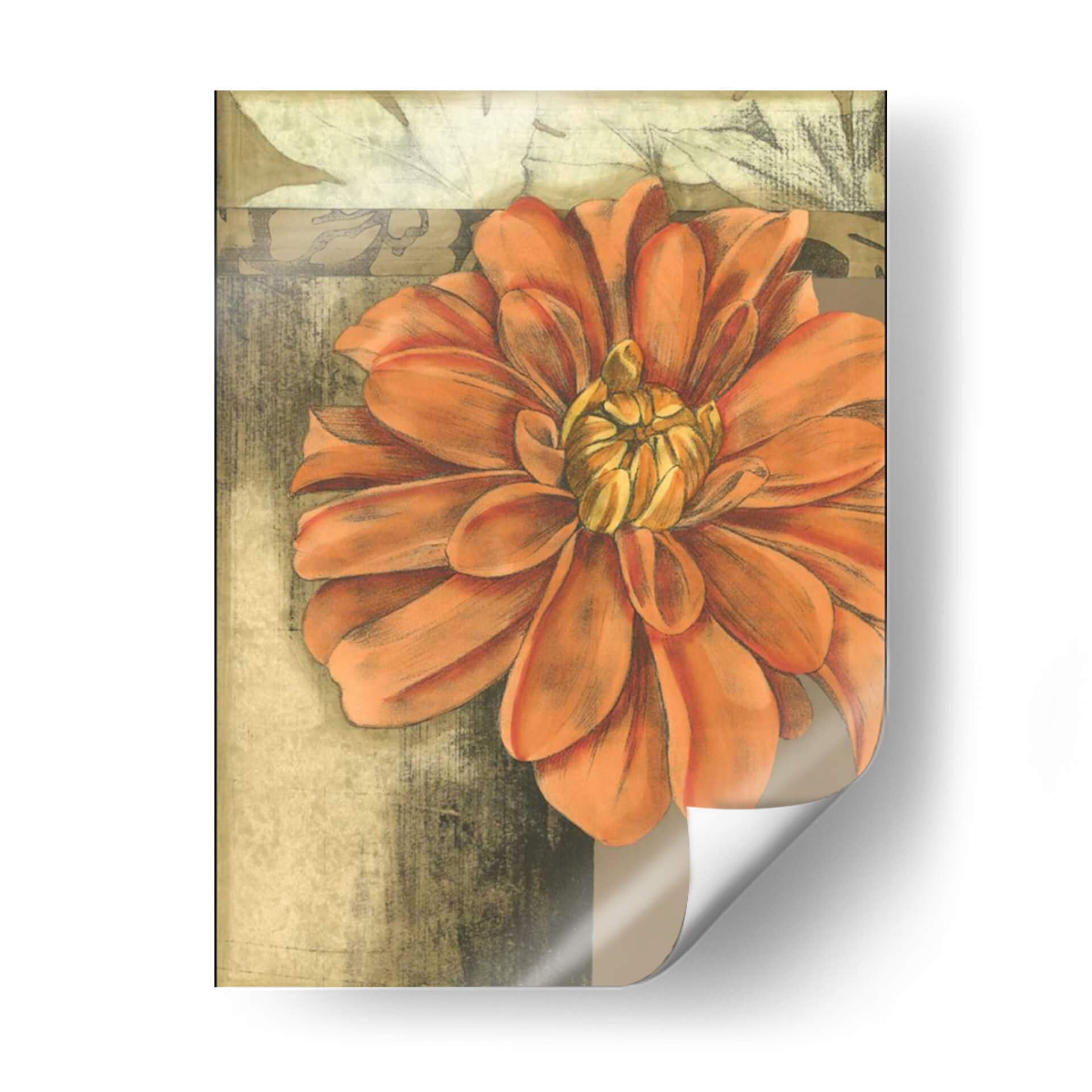 Sumérgete en la belleza delicada y vibrante de "Pequeña Flor Etérea II", una cautivadora obra de arte de Jennifer Goldberger. Este cuadro decorativo presenta una flor de tonos anaranjados intensos y cálidos, cuyos pétalos se despliegan con una gracia casi etérea, capturando la esencia de la naturaleza en su máxima expresión. La composición, centrada en este exuberante primer plano floral, se ve realzada por un fondo texturizado en tonos tierra y ocres, con sutiles toques de verde apagado y gris, que evocan una sensación de antigüedad y profundidad. La técnica utilizada, que combina trazos que recuerdan al carboncillo con la sutileza de la acuarela o el pastel, confiere a la pieza una textura visual rica y un aire artesanal. Ideal para añadir un punto de interés orgánico y sofisticado a cualquier espacio, desde una sala de estar moderna hasta un rincón tranquilo en un dormitorio o una oficina. "Pequeña Flor Etérea II" no es solo una decoración, sino una invitación a la contemplación, aportando calidez, vitalidad y un toque de elegancia floral a tu hogar. Es una pieza perfecta para quienes buscan arte inspirador con motivos botánicos que transmitan serenidad y un encanto atemporal.