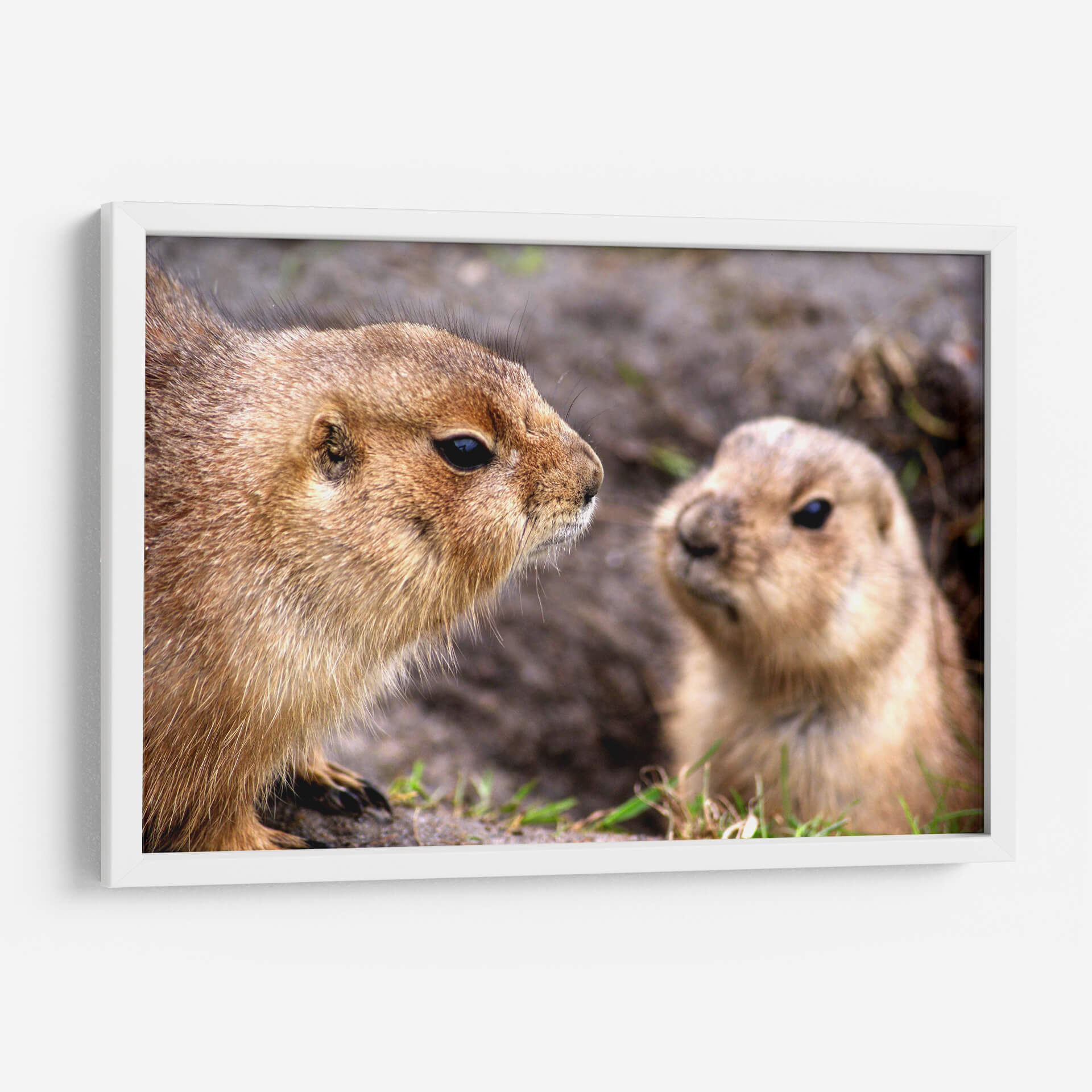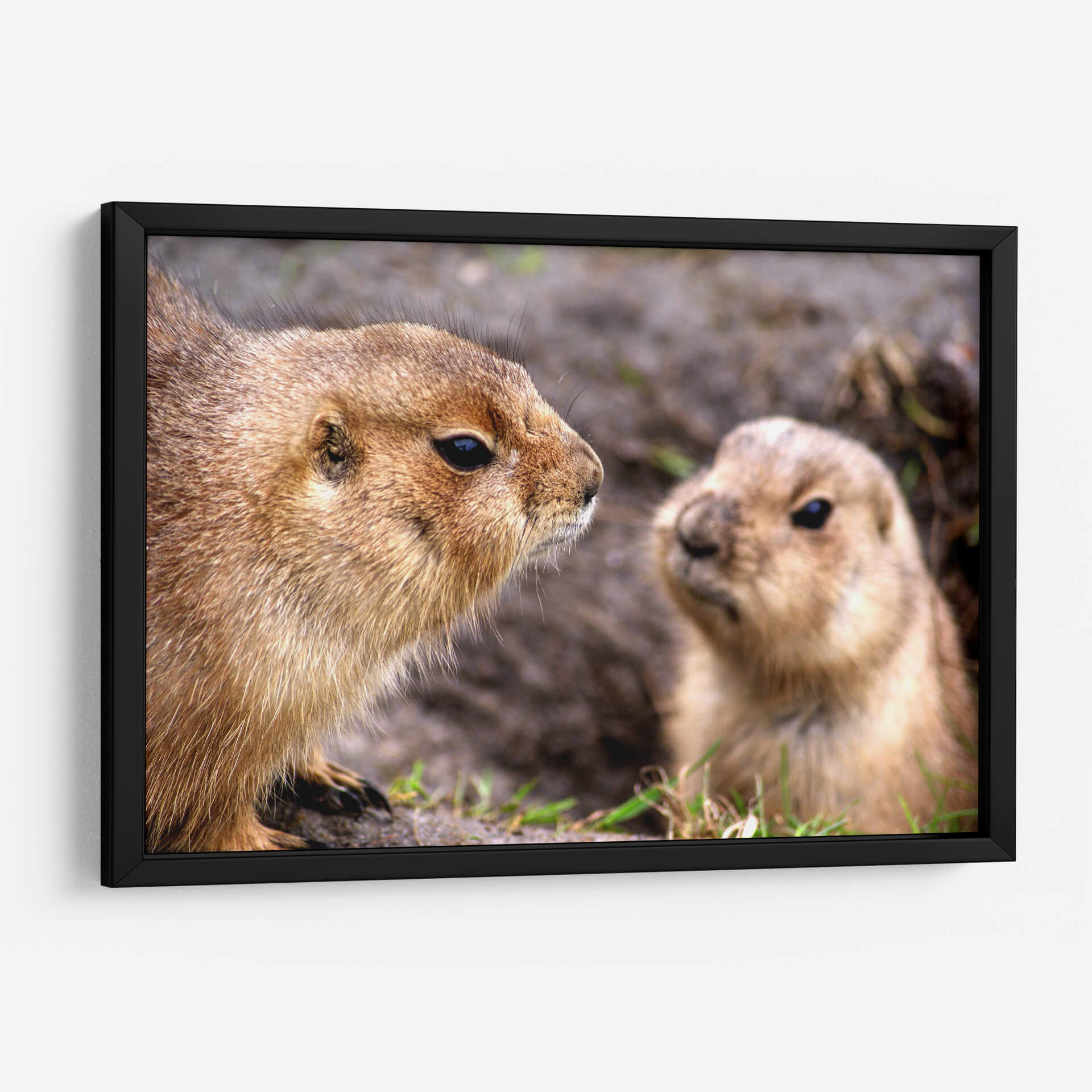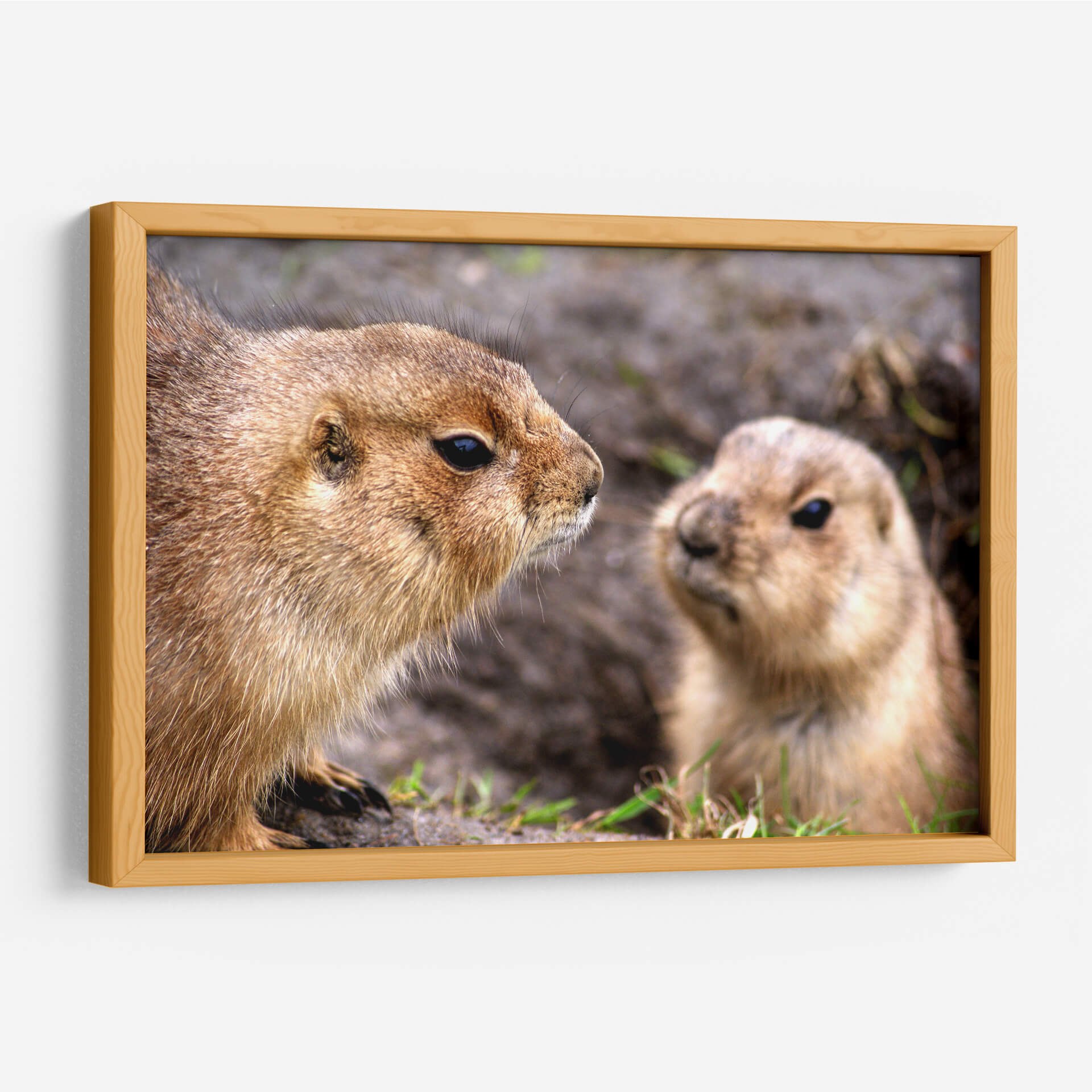 Captura la esencia de la naturaleza y la ternura con este impresionante lienzo de "Perritos de la pradera". La obra presenta un primer plano íntimo de dos adorables perritos de la pradera, uno enfocado en el espectador con una mirada curiosa y el otro ligeramente desenfocado en el fondo, creando una sensación de profundidad y conexión. La paleta de colores es cálida y terrosa, dominada por los tonos marrones y beige del pelaje de los animales, contrastando sutilmente con el verde de la hierba y el gris del suelo. La composición es dinámica, con los animales ocupando gran parte del encuadre, lo que invita a una observación detallada de sus texturas y expresiones. Este arte de pared evoca una sensación de inocencia, curiosidad y la vida salvaje en su estado más puro. Es la pieza perfecta para añadir un toque de calidez y un punto de conversación a cualquier habitación, ya sea una sala de estar, un dormitorio o una guardería. Ideal para amantes de los animales y aquellos que aprecian la fotografía de vida salvaje realista y conmovedora, este lienzo aportará una atmósfera acogedora y natural a tu hogar.