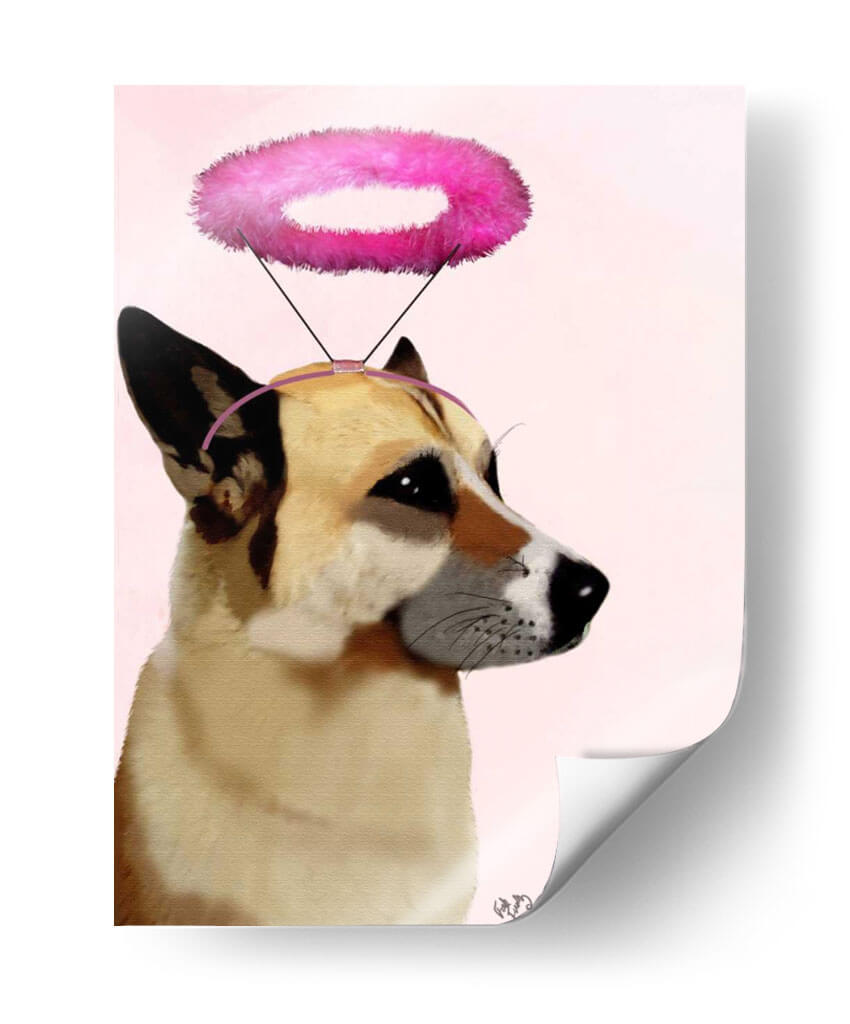 Aporta un toque de humor y ternura a tu hogar con este cautivador cuadro decorativo, "Perro Con Halo Rosa". La obra presenta un retrato detallado de un perro de pelaje atigrado, con una expresión serena y una mirada que parece contemplar el horizonte. Lo que distingue a esta pieza es el singular halo de peluche rosa que corona su cabeza, sostenido delicadamente por finos alambres, añadiendo un elemento surrealista y juguetón. El fondo, de un suave y homogéneo tono rosa pastel, realza la figura del perro y crea una atmósfera etérea y soñadora. El estilo de la obra combina realismo en el retrato con un toque de fantasía, resultando en una pieza única y memorable. Ideal para amantes de los animales y para aquellos que buscan añadir un toque de personalidad y color a sus espacios, ya sea una sala de estar, un dormitorio o una oficina moderna. Este cuadro es una invitación a la alegría y la originalidad, un acento perfecto para cualquier decoración contemporánea que busque destacar.