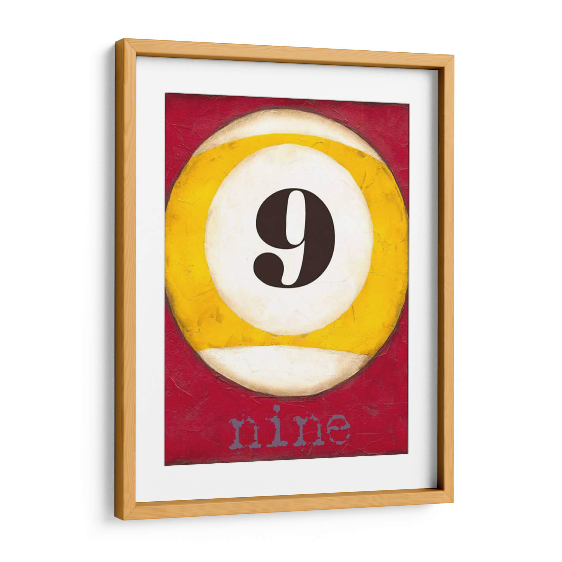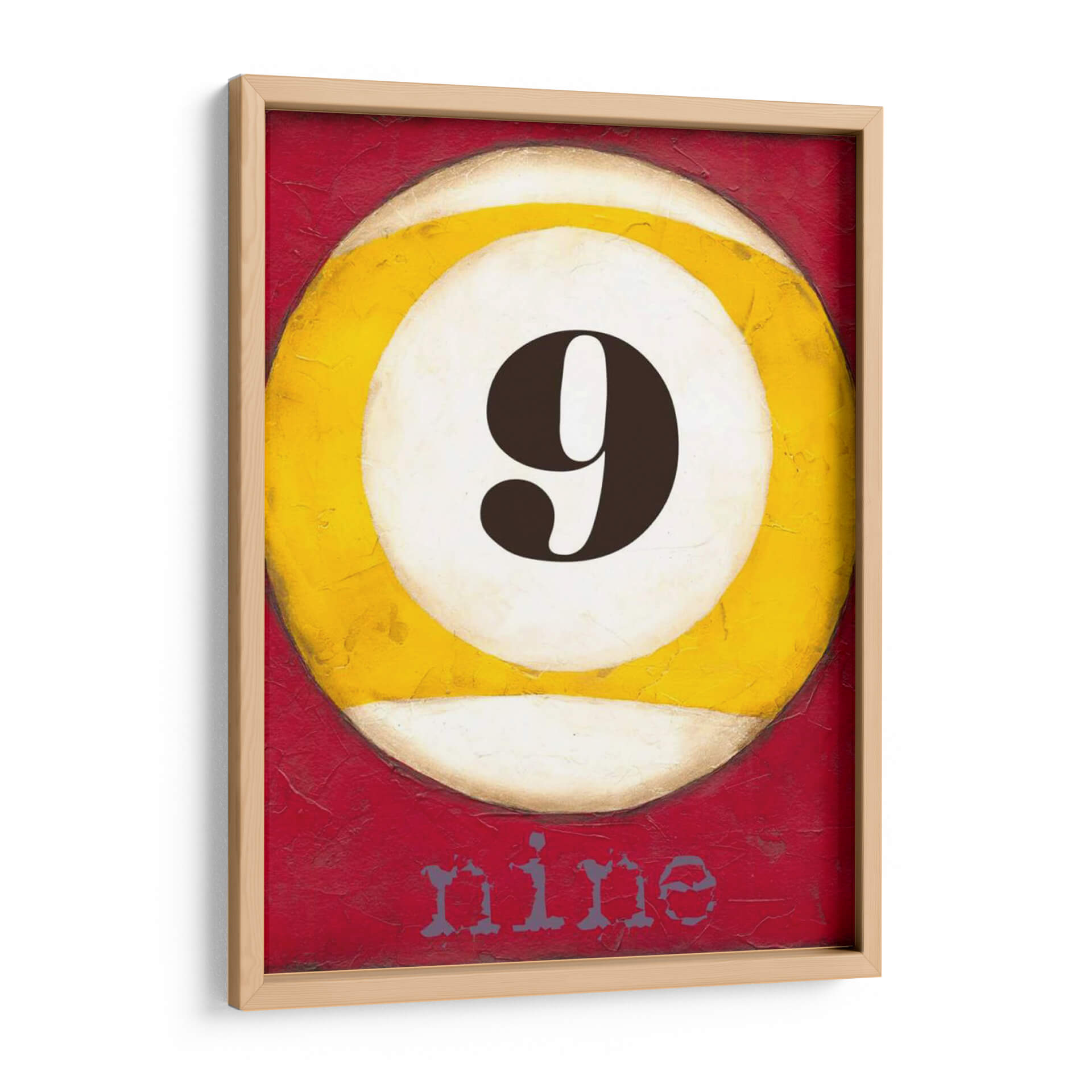 Sumérgete en la audaz simplicidad de 'Piscina Gráfica IX', una obra de arte contemporáneo que captura la esencia del icónico número nueve con un toque vibrante y moderno. La pieza presenta una representación estilizada de una bola de billar, dominada por un gran número '9' en un profundo tono marrón, contrastando elegantemente con el círculo blanco y amarillo que lo rodea. El fondo rojo texturizado, con su rica y profunda tonalidad, añade una dimensión de energía y pasión, creando un impacto visual inmediato. La palabra "nine" sutilmente integrada en la parte inferior, aporta un elemento lúdico y conceptual a la composición. Este cuadro decorativo es ideal para espacios que buscan un acento de color y un punto focal intrigante. Su estilo gráfico y minimalista lo hace perfecto para salas de estar modernas, oficinas o incluso salas de juegos, aportando un aire de sofisticación casual y un guiño a los juegos de mesa. "Piscina Gráfica IX" es más que una simple imagen; es una declaración de estilo, perfecta para quienes aprecian el arte que combina la estética limpia con una pizca de carácter y diversión. Añade esta pieza a tu colección y transforma tu pared en una galería de arte contemporáneo.