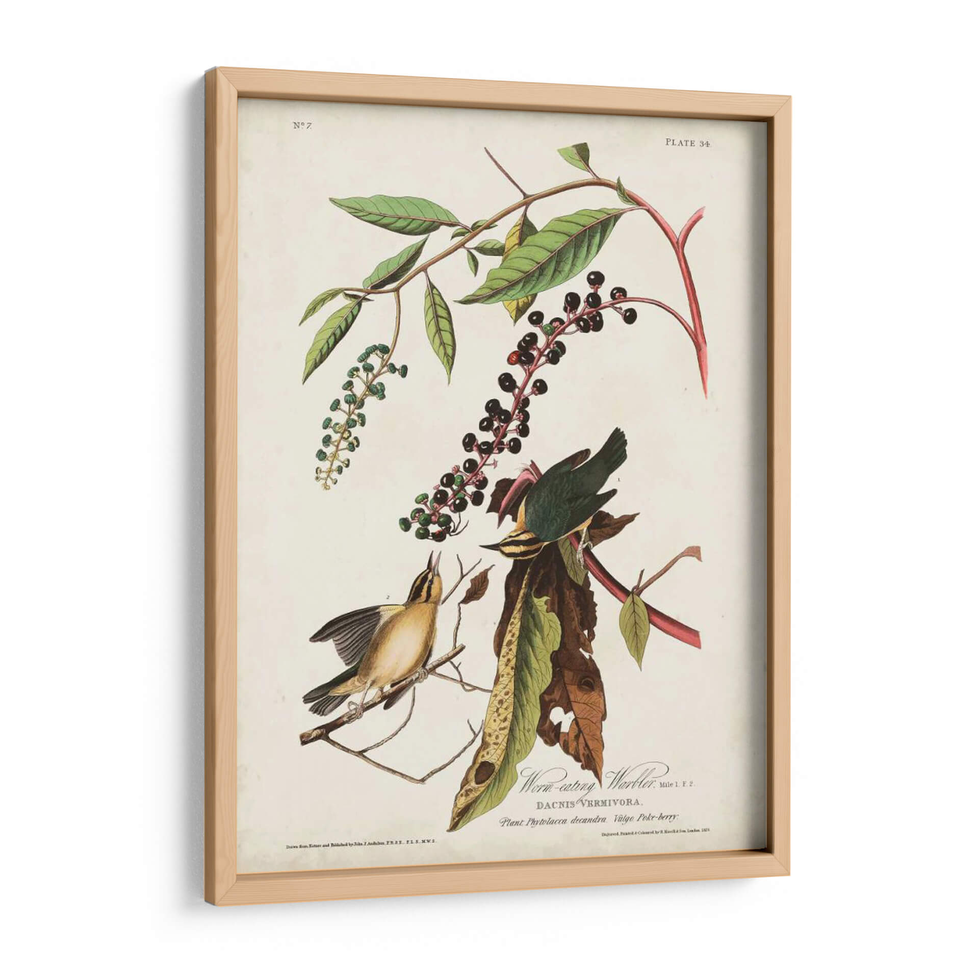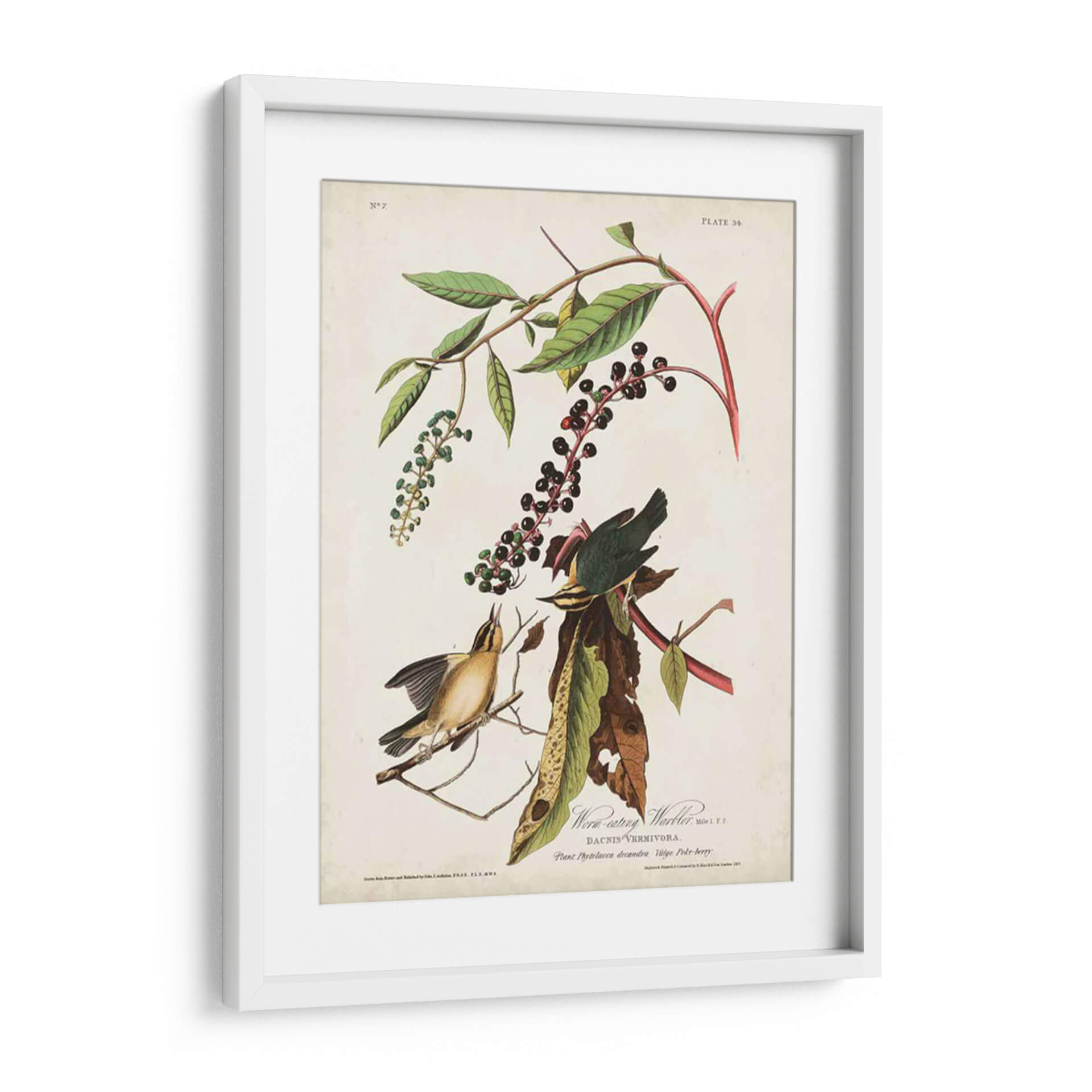 Celebra la belleza de la naturaleza con este exquisito cuadro decorativo que captura la esencia de la obra "Pl 34 Curruca De Comer Gusanos" del aclamado artista John James Audubon. Esta pieza presenta una detallada ilustración de dos pájaros posados sobre ramas con bayas, exhibiendo una paleta de colores que evoca la riqueza de la flora y fauna. Los tonos verdes de las hojas, el vibrante rojo de los tallos y el profundo púrpura de las bayas contrastan elegantemente con los suaves amarillos y verdes de las aves, creando una composición visualmente atractiva y armoniosa. El estilo de ilustración científica, característico de Audubon, aporta un toque de autenticidad y valor histórico a la obra, mientras que la delicadeza en la representación de las aves y la botánica sugiere una atmósfera de calma y contemplación. Ideal para añadir un toque de sofisticación natural a cualquier espacio, desde un acogedor salón hasta un estudio o una oficina que busque inspiración. Este cuadro decorativo es perfecto para amantes de la ornitología, la naturaleza y el arte clásico, aportando elegancia y un diálogo visual fascinante a tu decoración.