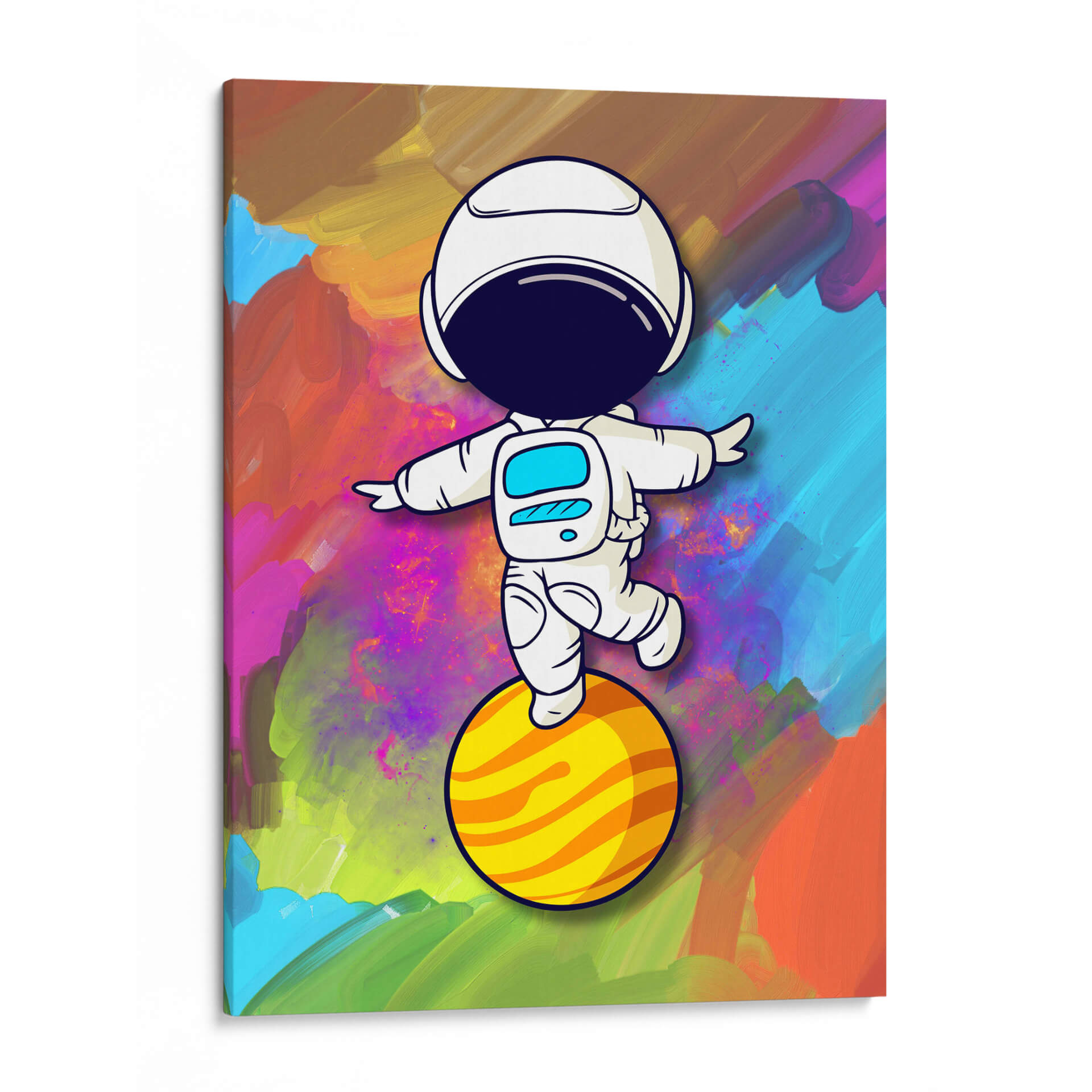 Sumérgete en la maravilla del cosmos con "Planeta Pincel", una obra de arte vibrante que captura la imaginación. Este cuadro decorativo presenta a un astronauta adorable y estilizado, en una pose de equilibrio sobre un planeta esférico de tonos amarillos y anaranjados. El fondo es una explosión de color con pinceladas audaces y texturizadas en tonos azules, verdes, rosas, marrones y naranjas, creando una atmósfera dinámica y lúdica que evoca exploración y descubrimiento. El estilo artístico, una mezcla de ilustración digital con un toque de abstracción, lo convierte en una pieza única para cualquier espacio. La figura del astronauta, con su diseño simplificado y casco brillante, transmite una sensación de aventura y curiosidad, mientras que las enérgicas pinceladas del fondo añaden profundidad y emoción. Ideal para dormitorios infantiles, salas de juegos, oficinas creativas o cualquier rincón que necesite un toque de fantasía y color. Este cuadro decorativo es perfecto para inspirar sueños y aventuras, añadiendo un elemento de alegría y optimismo a tu decoración.