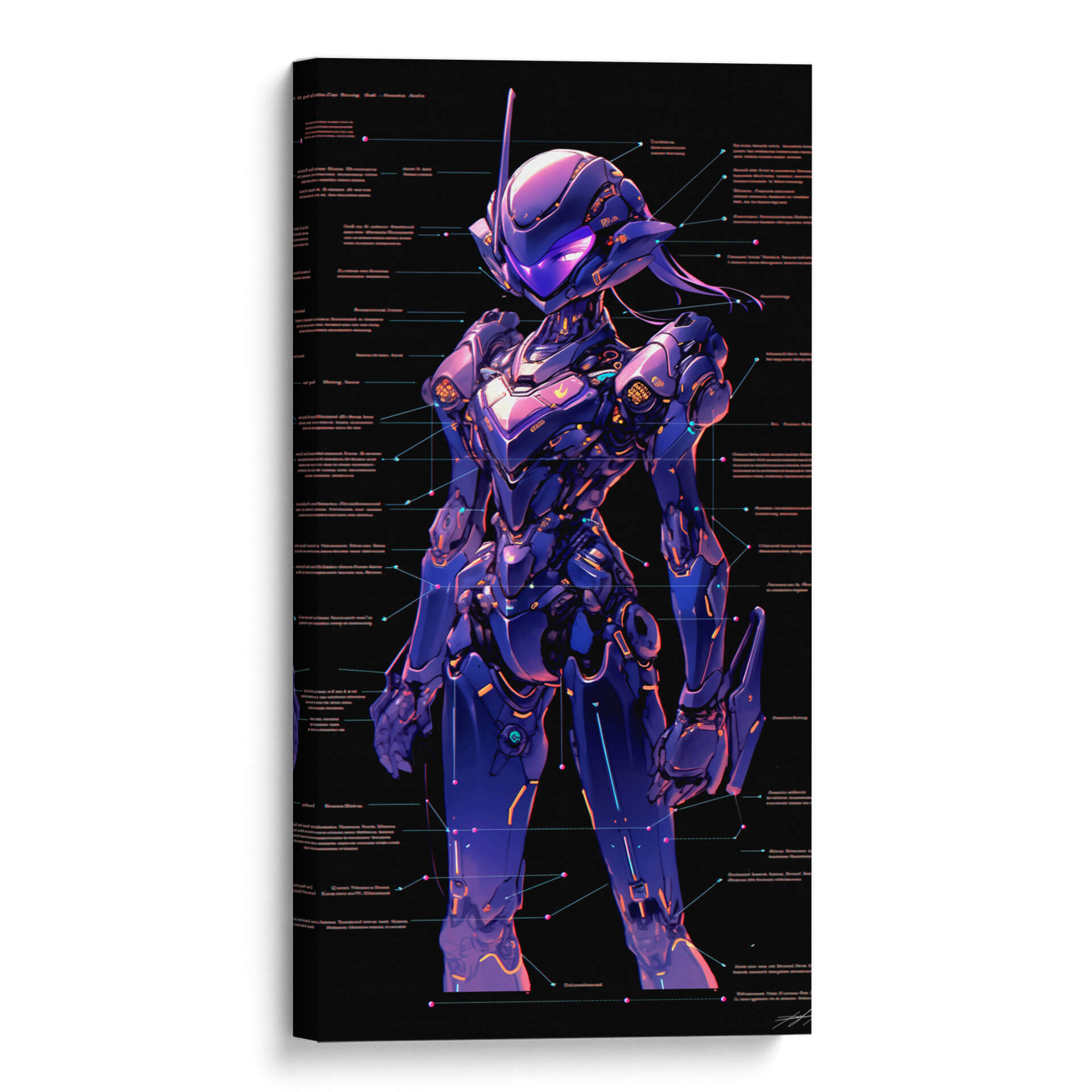 Sumérgete en el fascinante mundo del arte digital con "Plano Anime - 6" de DeLaVegaGaming. Esta cautivadora obra maestra presenta una figura robótica de estilo anime, detalladamente elaborada con una paleta de colores predominantemente azul y púrpura, acentuada por sutiles toques de naranja y rosa que aportan profundidad y un toque futurista. La composición se centra en la figura, destacando su intrincado diseño y la atmósfera enigmática que la rodea. Las líneas de conexión y el texto de fondo sugieren un plano técnico o una base de datos, añadiendo un elemento de misterio y complejidad. "Plano Anime - 6" es la elección perfecta para quienes buscan infundir a su hogar u oficina un aire de ciencia ficción, tecnología y estética anime. Ideal para salas de estar modernas, estudios o habitaciones temáticas, este cuadro decorativo no solo embellece el espacio, sino que también provoca la imaginación y fomenta la conversación. Su estilo único y su ejecución impecable lo convierten en una pieza central que atraerá todas las miradas y reflejará una personalidad audaz y vanguardista. Descubre la fusión perfecta entre el arte y la tecnología con esta impresionante obra.
