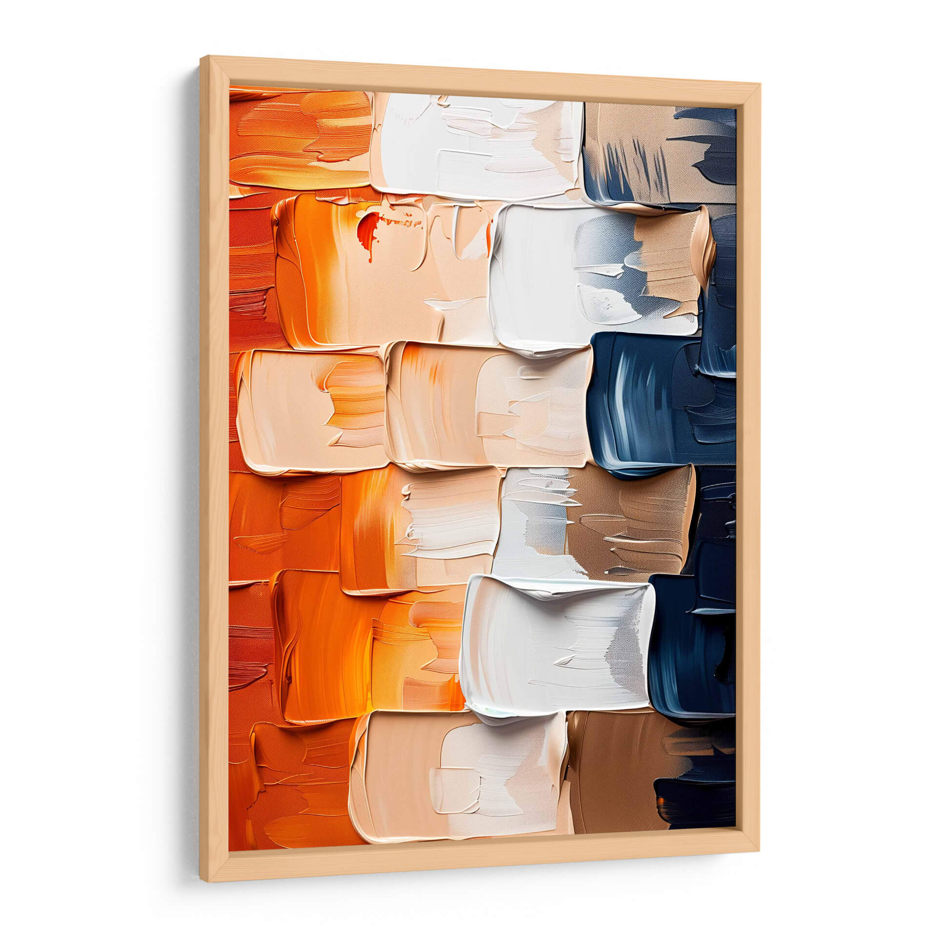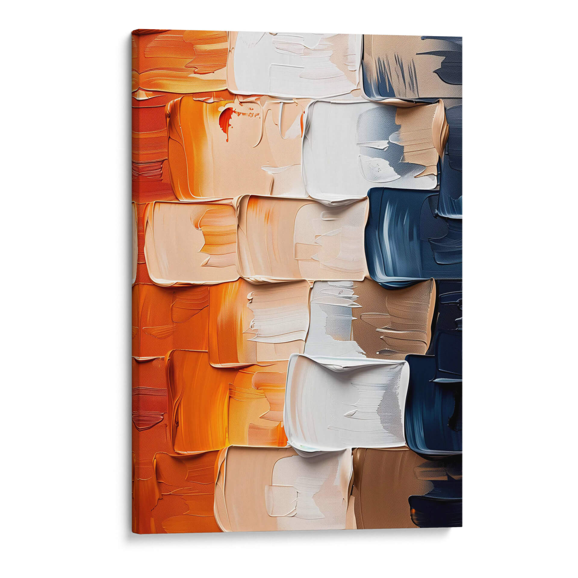 Sumérgete en la vibrante energía de "Playa Abstracto", una obra de arte contemporáneo que captura la esencia del litoral con pinceladas audaces y texturizadas. Este cuadro decorativo es una explosión de color, dominado por cálidos tonos naranjas que evocan la calidez del sol poniente, contrastados con serenos azules profundos y delicados matices de beige y blanco roto. La técnica impasto, con sus generosas capas de pintura, crea un efecto tridimensional que invita a la contemplación, añadiendo profundidad y carácter a cualquier espacio. La composición abstracta, organizada en bloques rectangulares que recuerdan a las dunas o las olas del mar, ofrece una interpretación moderna y cautivadora de un paisaje costero. "Playa Abstracto" es ideal para inyectar vitalidad y sofisticación en salones modernos, oficinas o dormitorios, funcionando como un punto focal dinámico y una fuente de inspiración diaria. Transforma tu hogar u oficina con esta pieza única que fusiona la fuerza de la naturaleza con la expresividad del arte abstracto, creando un ambiente acogedor y lleno de estilo.