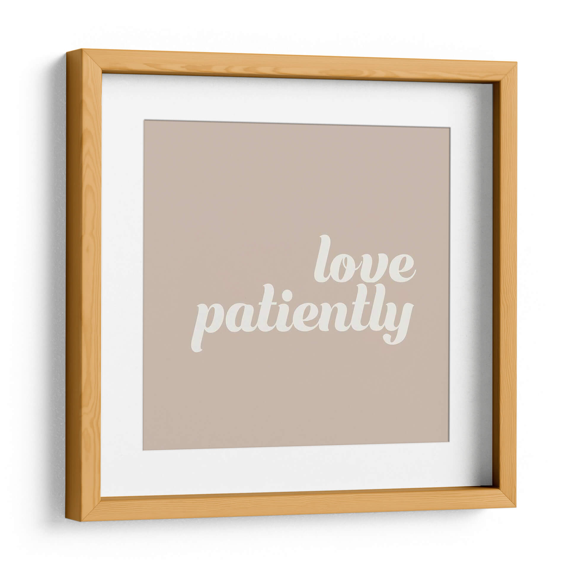 Este encantador cuadro decorativo con el texto "love patiently" (ama pacientemente) en tipografía blanca sobre un fondo neutro y cálido de tono tierra, es una pieza que irradia serenidad y sabiduría. La obra de Anna Hambly, "Por Favor Ii", captura la esencia de la paciencia en las relaciones y en la vida, convirtiéndose en un recordatorio visual de la importancia de la calma y la comprensión. Su estilo minimalista y la paleta de colores suave la hacen increíblemente versátil, capaz de complementar una amplia gama de estilos de decoración, desde el moderno y escandinavo hasta el bohemio o contemporáneo. Ideal para añadir un toque de reflexión y dulzura a tu hogar u oficina, este cuadro es perfecto para espacios donde buscas crear un ambiente de paz y armonía. Ya sea en la sala de estar, el dormitorio, o incluso en un estudio, "Por Favor Ii" invita a la contemplación y aporta una dosis de positividad. Busca arte inspirador y decorativo que hable directamente a tu corazón y estilo personal.