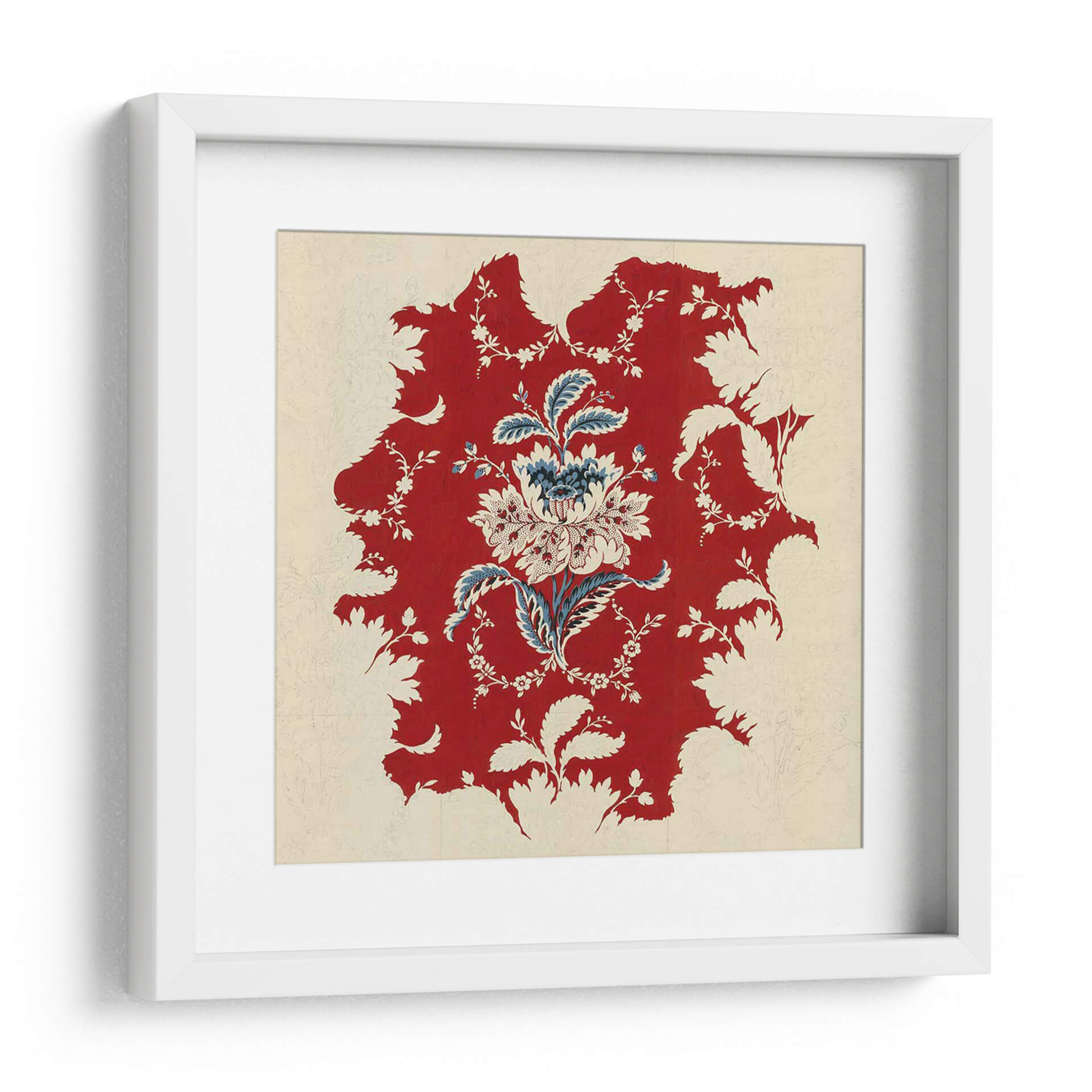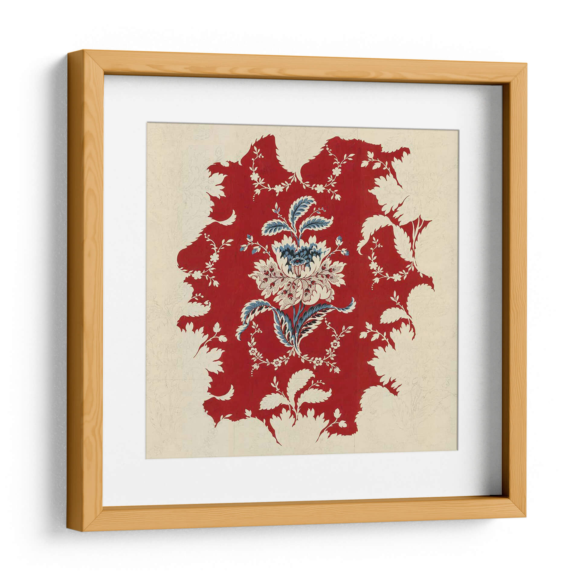 Adéntrate en la opulencia botánica con "Provenza III", una obra de arte de Shima Shanti que evoca la delicadeza de un jardín clásico. Este cuadro decorativo presenta un intrincado diseño floral central en vibrantes tonos rojos, con acentos en azul y blanco que capturan la atención y añaden profundidad. El estilo evoca patrones de tapicería o estampado de época, creando una atmósfera de elegancia atemporal. Los detalles minuciosos de las hojas y pétalos, junto con la silueta recortada del diseño principal, le confieren un carácter único y sofisticado. Ideal para espacios que buscan un toque de clasicismo moderno, como salas de estar, comedores o incluso un estudio. La paleta de colores, dominada por el rojo intenso y contrastada con el fondo crema, permite que la pieza se integre armoniosamente en decoraciones tradicionales o se convierta en el punto focal de interiores contemporáneos. "Provenza III" no es solo una decoración de pared, es una invitación a la contemplación de la belleza natural con un giro artístico distintivo, aportando calidez y refinamiento a cualquier ambiente.