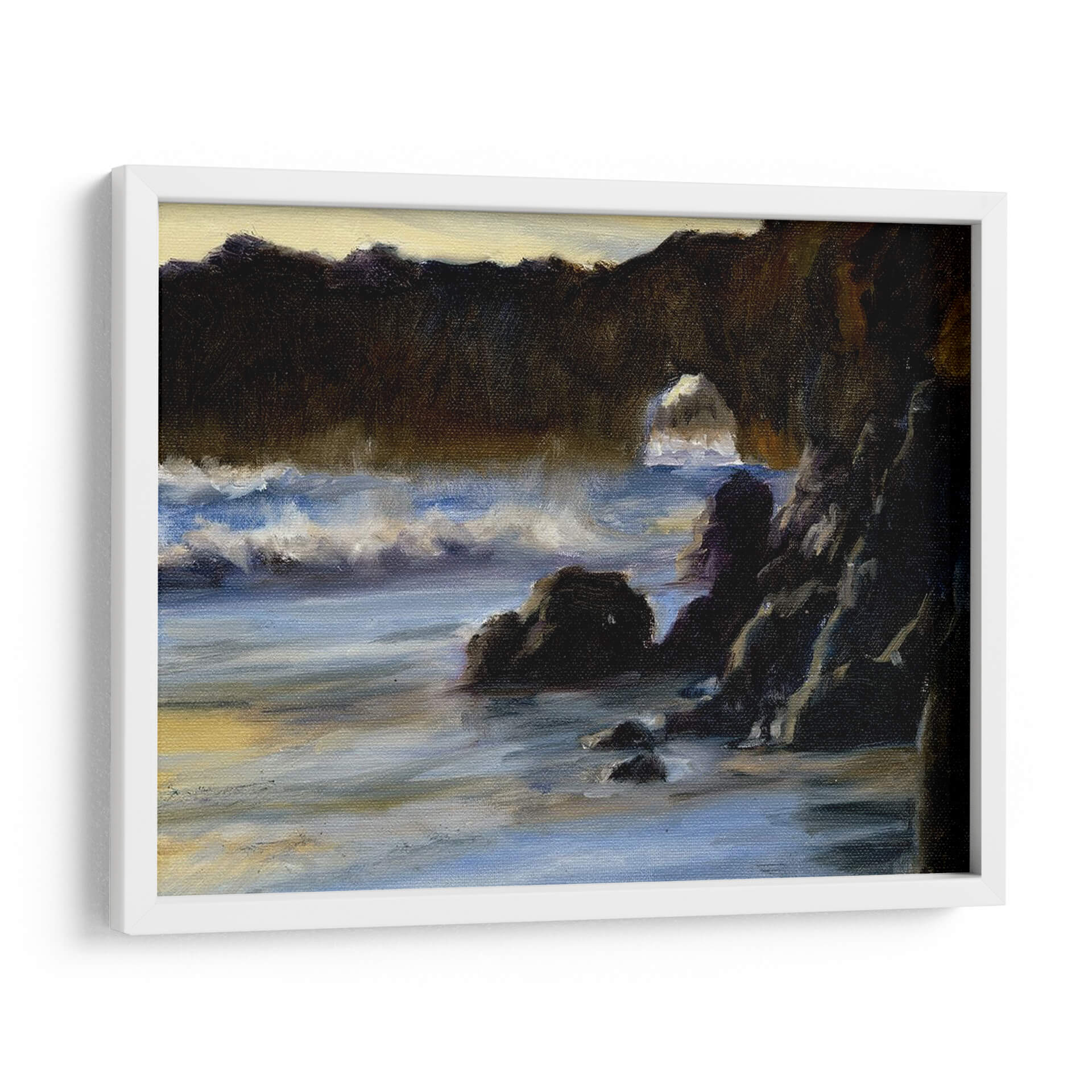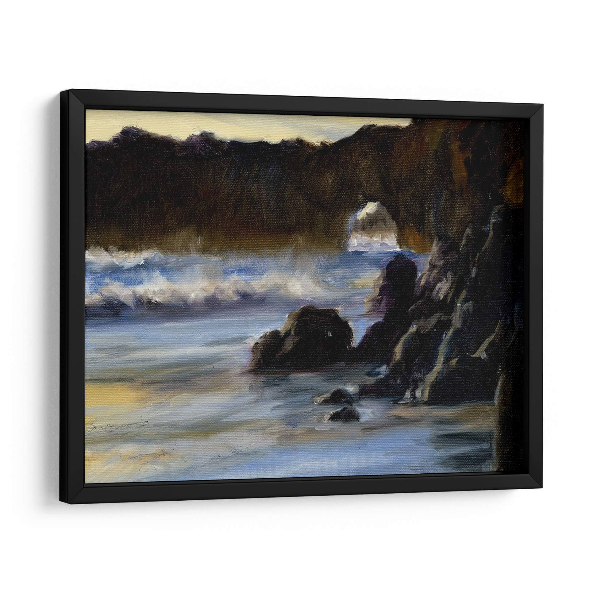Sumérgete en la serena belleza de 'Puesta De Sol En Santa Cruz', una obra de arte que captura la magia del atardecer en la costa. Barbara Chenault nos transporta a un rincón idílico donde las olas rompen suavemente contra rocas escarpadas, creando una escena de profunda calma y contemplación. La paleta de colores, dominada por tonos cálidos del atardecer y fríos azules del mar, evoca una atmósfera de paz y armonía. Los detalles sutiles en la textura del agua y las formaciones rocosas invitan a una exploración visual, mientras que el arco natural en la roca añade un punto de interés y misterio, sugiriendo la vastedad del océano y la fuerza de la naturaleza. Este cuadro decorativo es perfecto para añadir un toque de serenidad y elegancia a cualquier espacio, desde una sala de estar moderna hasta un tranquilo dormitorio o una oficina que busque inspiración. Ideal para amantes de los paisajes marinos y el arte impresionista, esta pieza evoca sensaciones de tranquilidad y conexión con el entorno natural. Añade 'Puesta De Sol En Santa Cruz' a tu colección y transforma tu hogar en un refugio de paz y belleza.