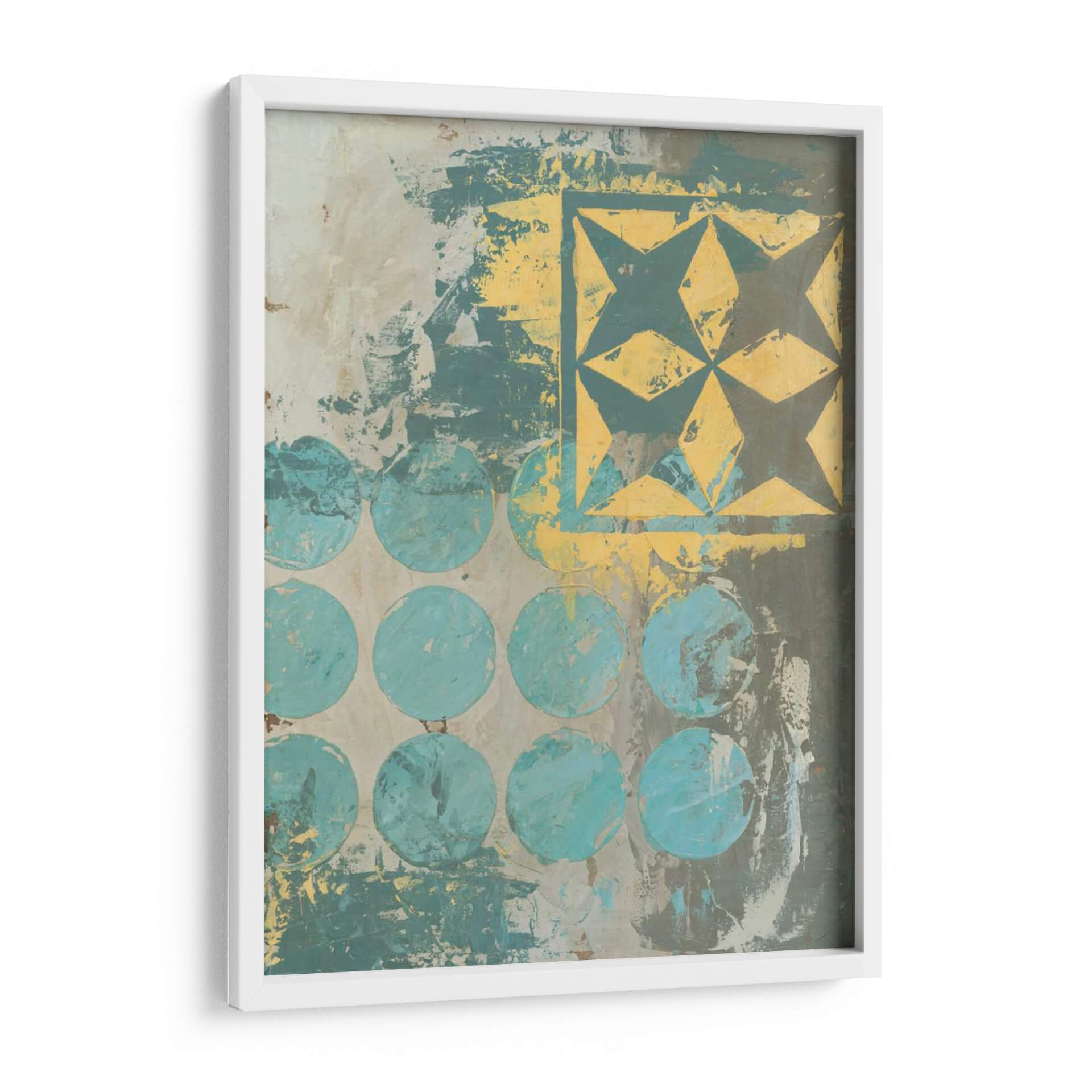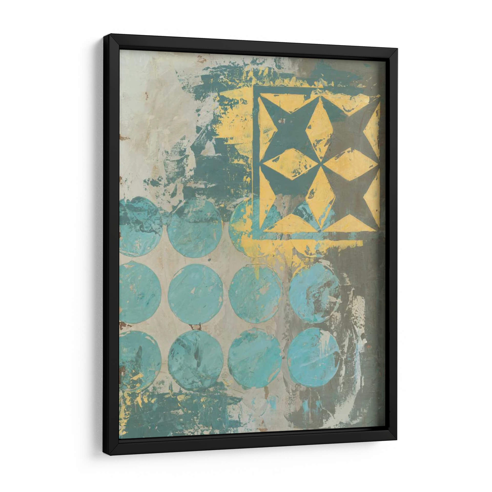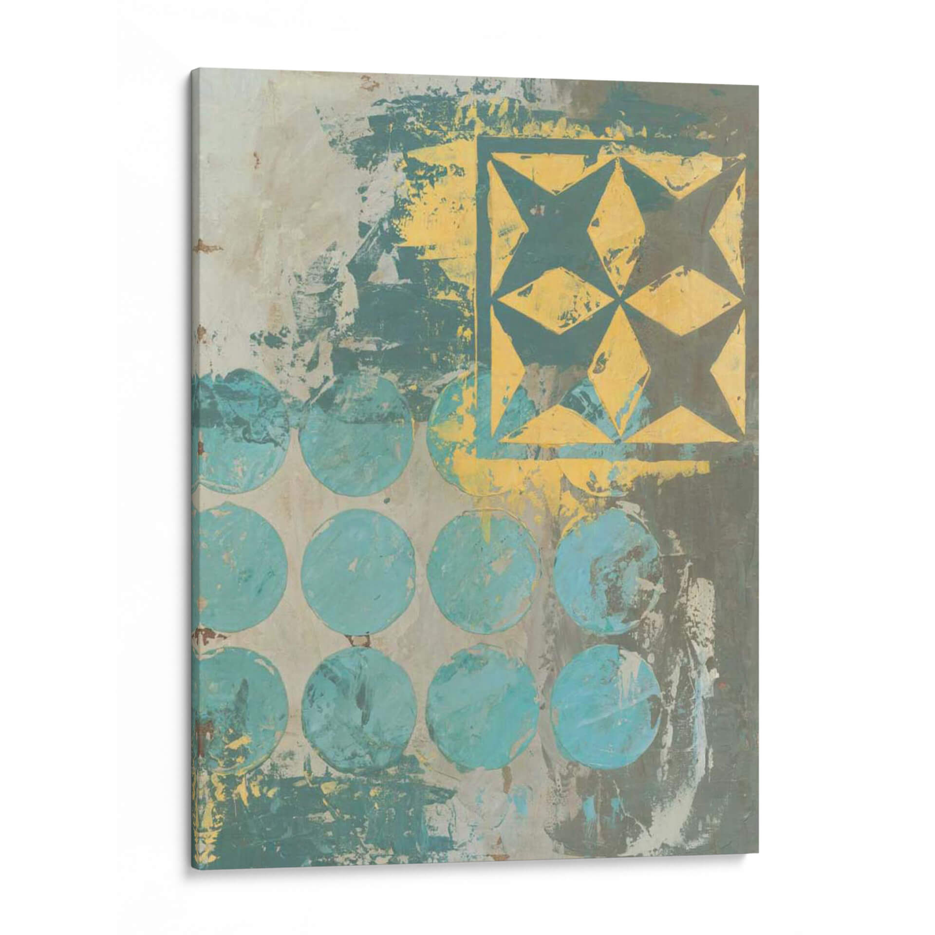 Adéntrate en un universo de formas y texturas con "Puntos Y Las Estrellas II", una obra de arte contemporáneo de Megan Meagher que evoca una sensación de calma y profundidad. Este cuadro decorativo presenta una composición intrigante donde la geometría se fusiona con la abstracción orgánica. El contraste entre los patrones de estrellas en tonos dorados y azul verdoso, y las filas de círculos en un sereno azul turquesa, crea un diálogo visual fascinante. La paleta de colores, dominada por tonos tierra, grises sutiles, amarillos vibrantes y acentos azulados, aporta una atmósfera sofisticada y moderna. Las pinceladas texturizadas y el acabado envejecido confieren a la pieza una cualidad táctil y un aire de misterio, invitando a la contemplación. "Puntos Y Las Estrellas II" es la elección perfecta para añadir un toque de elegancia abstracta a tu sala de estar, oficina o cualquier espacio que busque un punto focal inspirador y lleno de carácter. Su versatilidad permite integrarse en decoraciones modernas, escandinavas o eclécticas, aportando un aire de originalidad y buen gusto.