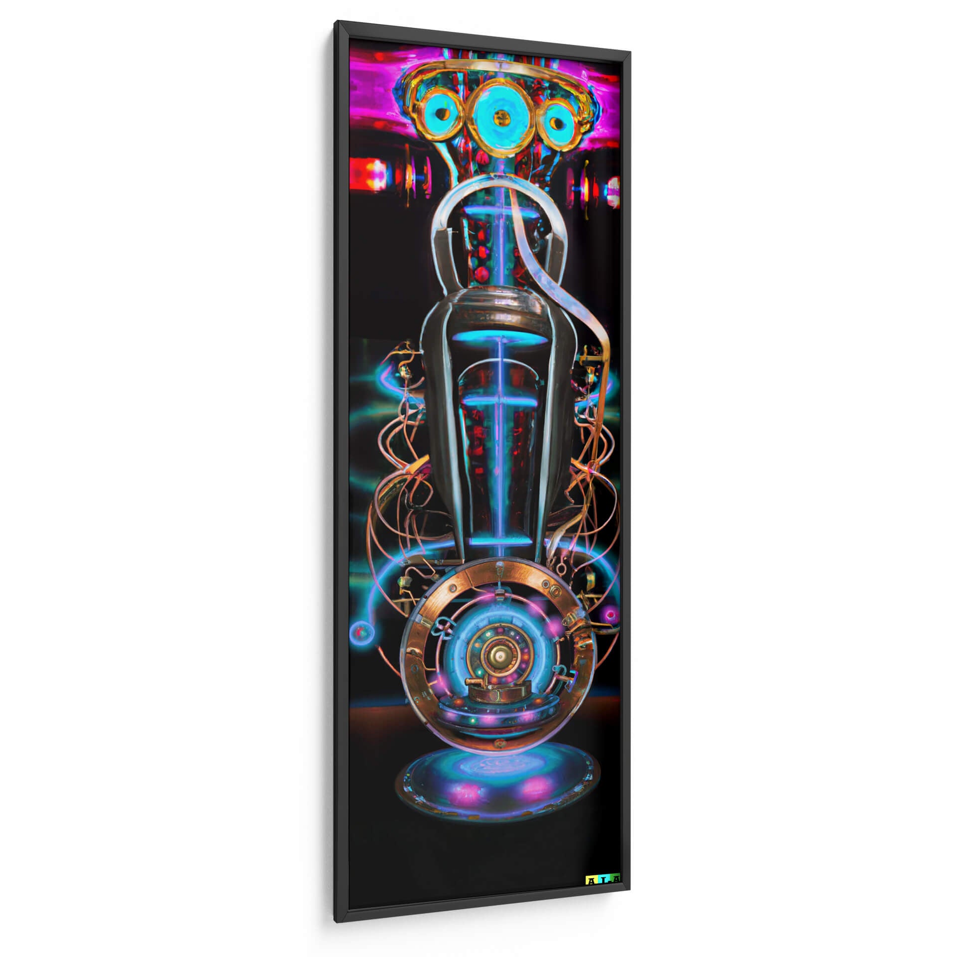 Adéntrate en el fascinante universo de la computación cuántica con este impactante cuadro decorativo abstracto. "Quantum Computer" de AI-ART es una obra visualmente cautivadora que evoca la complejidad y el potencial de la tecnología de vanguardia. La composición presenta una estructura central intrincada, reminiscentes de maquinaria avanzada y energía vibrante, envuelta en una sinfonía de colores neón y tonos metálicos. Los azules eléctricos y púrpuras intensos contrastan con detalles en cobre y oro, creando una atmósfera de misterio y descubrimiento. Esta pieza es perfecta para espacios modernos y vanguardistas, como oficinas, estudios de diseño o salas de estar donde se busca inspirar la innovación y el pensamiento futurista. Su diseño vertical la hace ideal para pasillos o como un punto focal audaz en cualquier pared. El cuadro decorativo "Quantum Computer" no es solo una obra de arte, sino una ventana a la próxima frontera de la ciencia y la tecnología, diseñada para estimular la conversación y la admiración. Ideal para los amantes de la ciencia ficción, la tecnología y el arte abstracto contemporáneo que desean añadir un toque de originalidad y sofisticación a su decoración.