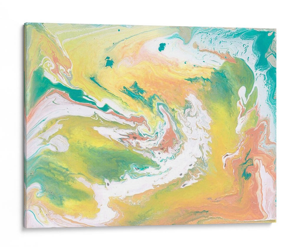 Sumérgete en la vibrante y etérea obra de arte "Rainbow Sherbet I" de Pam Ilosky, una explosión de colores y texturas que captura la esencia del arte abstracto contemporáneo. Esta pieza evoca la frescura y la alegría de un día soleado, fusionando tonos de amarillo brillante, verde menta y melocotón suave con remolinos de blanco puro y toques de turquesa. La técnica de vertido (pour painting) se manifiesta en delicados flujos y capas que crean una sensación de movimiento y profundidad, invitando a la contemplación. "Rainbow Sherbet I" es más que una simple decoración de pared; es una ventana a un mundo de sensaciones, perfecta para añadir un toque de energía y sofisticación a cualquier espacio. Ideal para salones modernos, estudios creativos u oficinas, este cuadro decorativo se convierte en un punto focal dinámico que inspira optimismo y vitalidad. Su composición fluida y su paleta de colores refrescante la hacen versátil para complementar una amplia gama de estilos decorativos, desde el escandinavo hasta el bohemio contemporáneo. Transforma tu hogar u oficina con esta obra de arte única que despierta la imaginación y trae consigo una brisa de frescura y color.