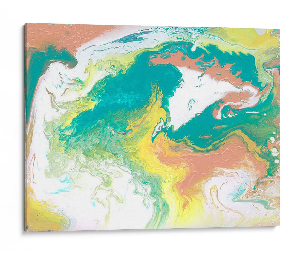 Sumérgete en la vibrante energía de 'Rainbow Sherbet II', una obra de arte abstracto contemporáneo que evoca la frescura y la alegría de un día soleado. Este cautivador cuadro decorativo presenta un torbellino de colores vivos y fluidos, donde turquesas profundas se entrelazan con amarillos brillantes y toques suaves de melocotón y blanco puro. La técnica de vertido, o 'pour painting', crea patrones orgánicos y dinámicos que invitan a la contemplación, simulando las olas del mar o remolinos de helado cremoso. Su composición abstracta y audaz lo convierte en una pieza focal perfecta para cualquier espacio moderno, aportando un toque de vitalidad y sofisticación. Ideal para salas de estar, oficinas o cualquier habitación que busque un estallido de color y creatividad. Este cuadro es una expresión pura de arte contemporáneo, diseñado para inspirar y elevar el espíritu, transformando tus paredes en una galería personal llena de vida y movimiento. La armonía cromática y la fluidez de las formas invitan a la calma y al optimismo, haciendo de 'Rainbow Sherbet II' una adición excepcional a tu decoración.