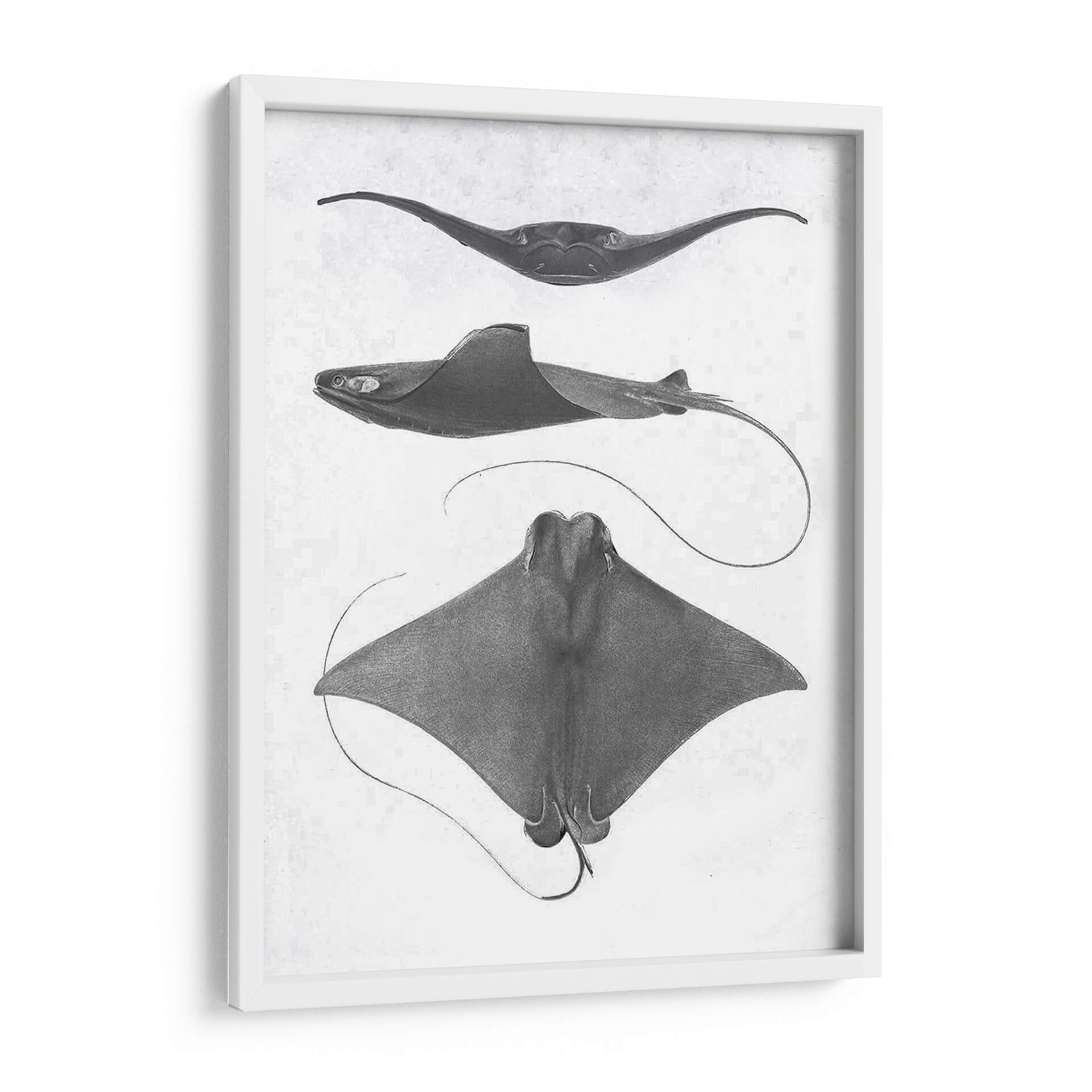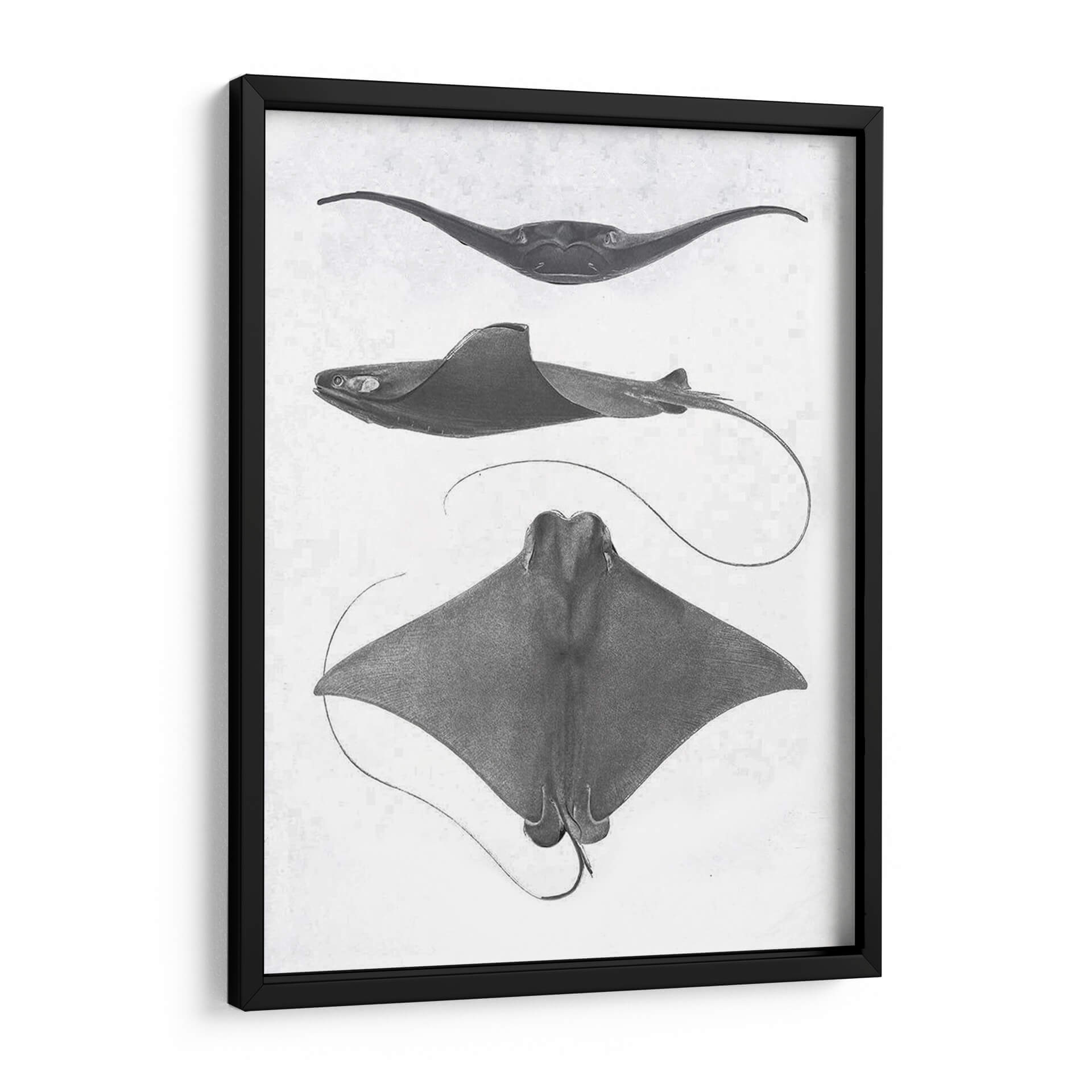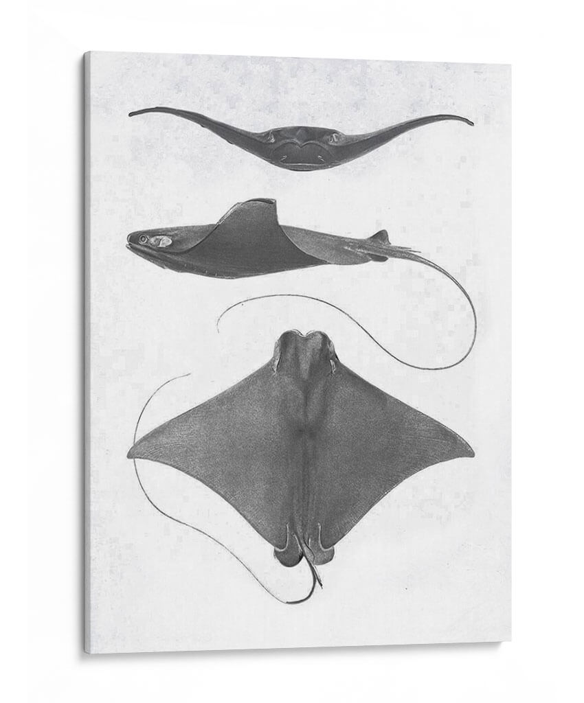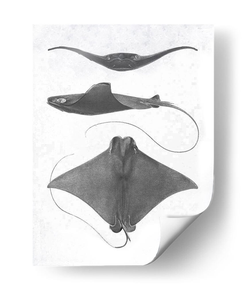 Sumérgete en la fascinante anatomía marina con esta obra de arte "Rayas De Escala Gris Ii" del Studio W. Este cuadro decorativo presenta tres representaciones detalladas de rayas, capturadas con una precisión casi científica y un estilo que evoca los grabados clásicos de historia natural. La paleta de grises monocromáticos y el fondo texturizado aportan una elegancia atemporal y sutil, ideal para espacios que buscan un toque de sofisticación discreta. Cada raya se muestra desde un ángulo distinto, revelando la gracia de sus formas y la fluidez de sus movimientos, incluso en una representación estática. Es una pieza que invita a la contemplación, perfecta para un estudio, una biblioteca o un salón que aprecie la belleza de la naturaleza y el arte con un aire académico. Su composición vertical y los detalles intrincados lo convierten en un punto focal sereno pero cautivador, añadiendo profundidad y carácter a cualquier pared. Descubre la armonía del océano en tu hogar con este impresionante cuadro decorativo.