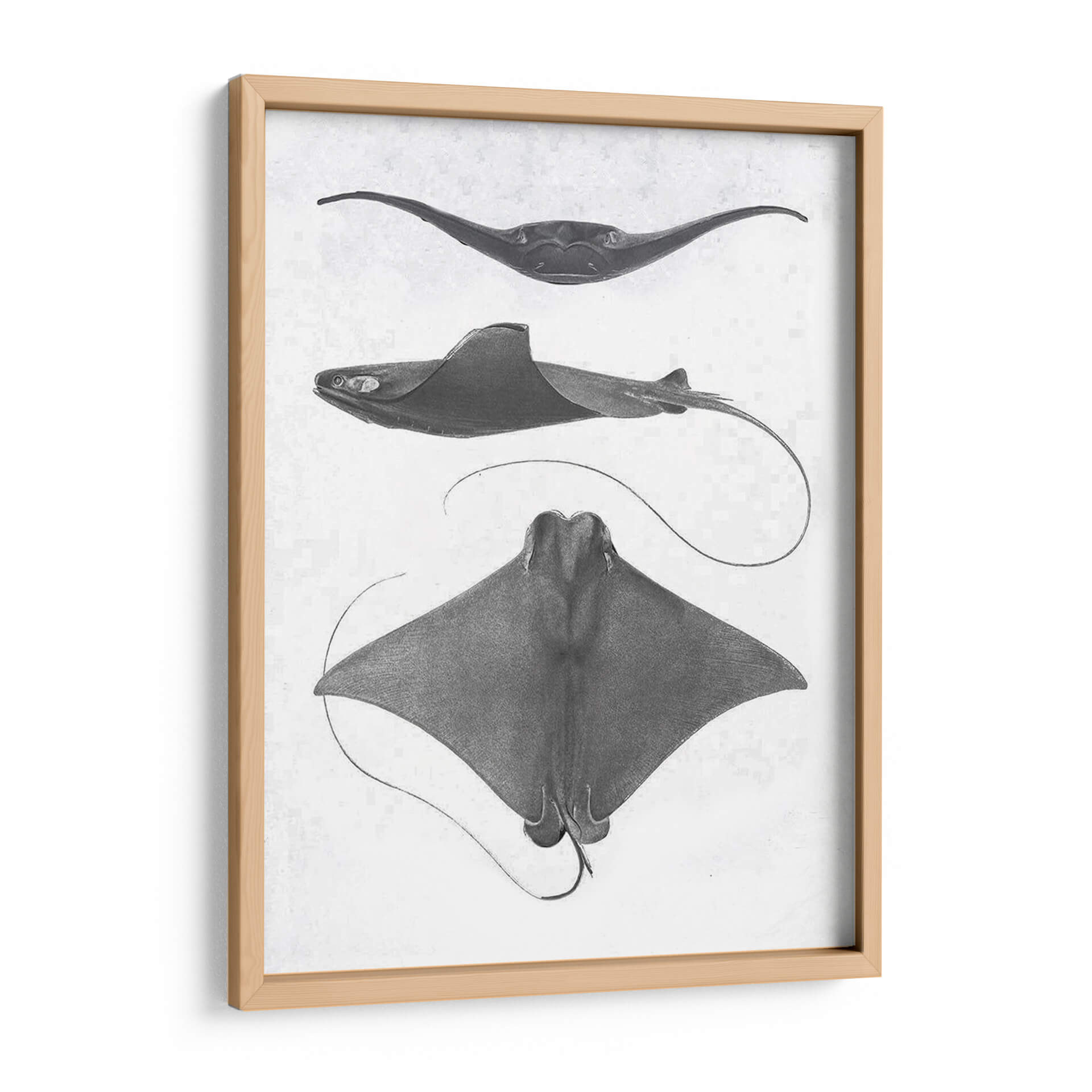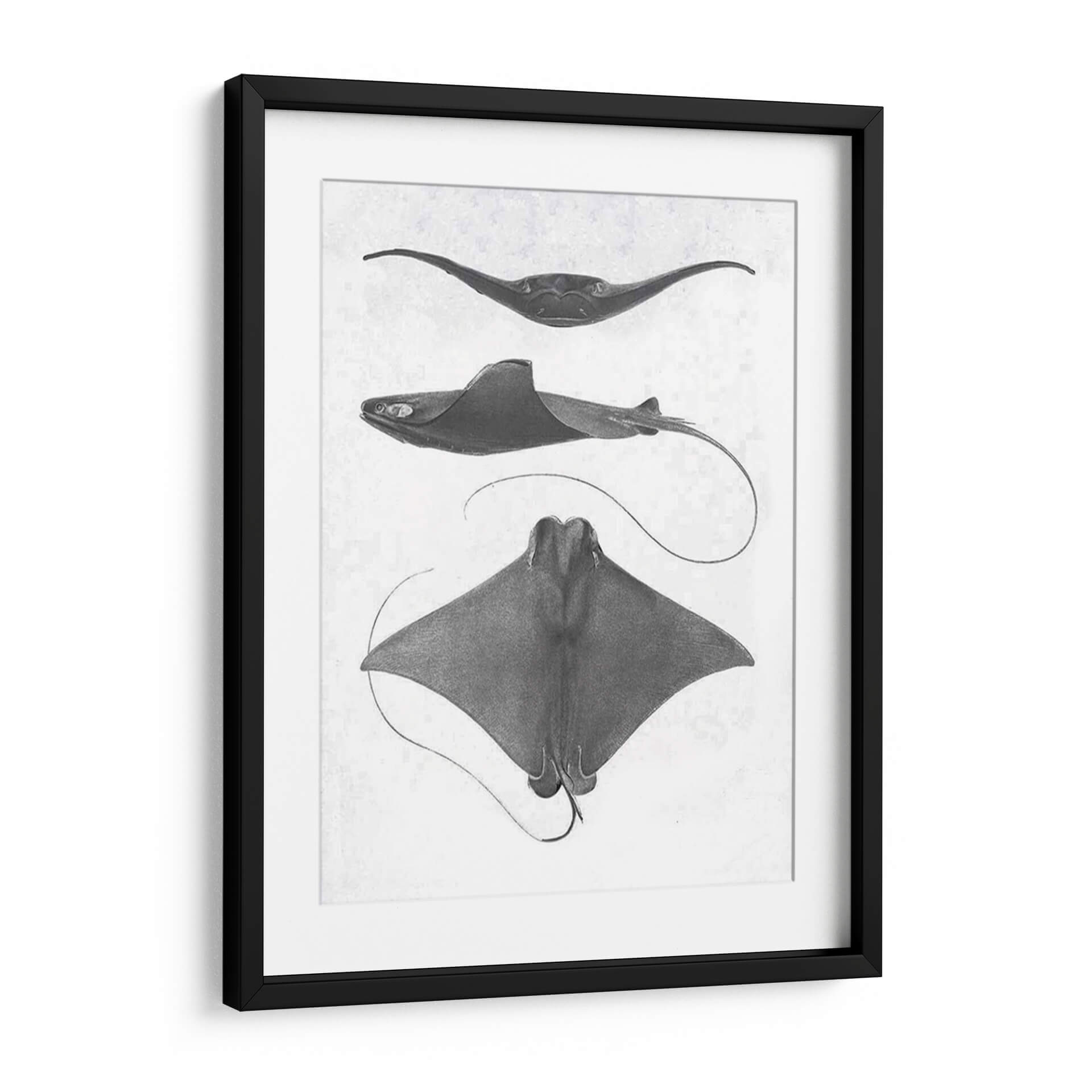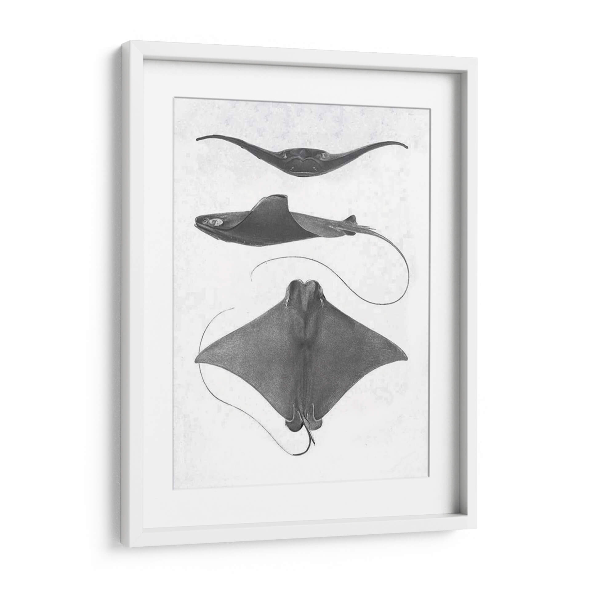 Sumérgete en la fascinante anatomía marina con esta obra de arte "Rayas De Escala Gris Ii" del Studio W. Este cuadro decorativo presenta tres representaciones detalladas de rayas, capturadas con una precisión casi científica y un estilo que evoca los grabados clásicos de historia natural. La paleta de grises monocromáticos y el fondo texturizado aportan una elegancia atemporal y sutil, ideal para espacios que buscan un toque de sofisticación discreta. Cada raya se muestra desde un ángulo distinto, revelando la gracia de sus formas y la fluidez de sus movimientos, incluso en una representación estática. Es una pieza que invita a la contemplación, perfecta para un estudio, una biblioteca o un salón que aprecie la belleza de la naturaleza y el arte con un aire académico. Su composición vertical y los detalles intrincados lo convierten en un punto focal sereno pero cautivador, añadiendo profundidad y carácter a cualquier pared. Descubre la armonía del océano en tu hogar con este impresionante cuadro decorativo.
