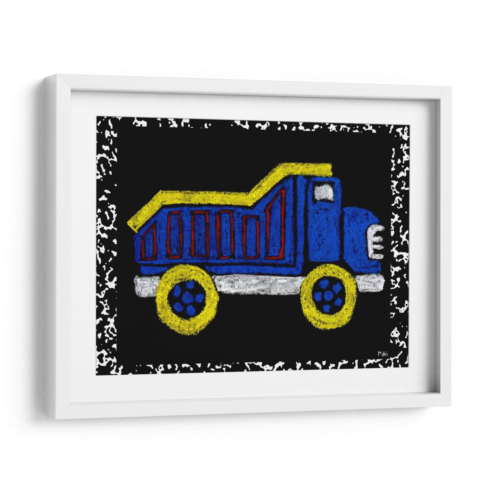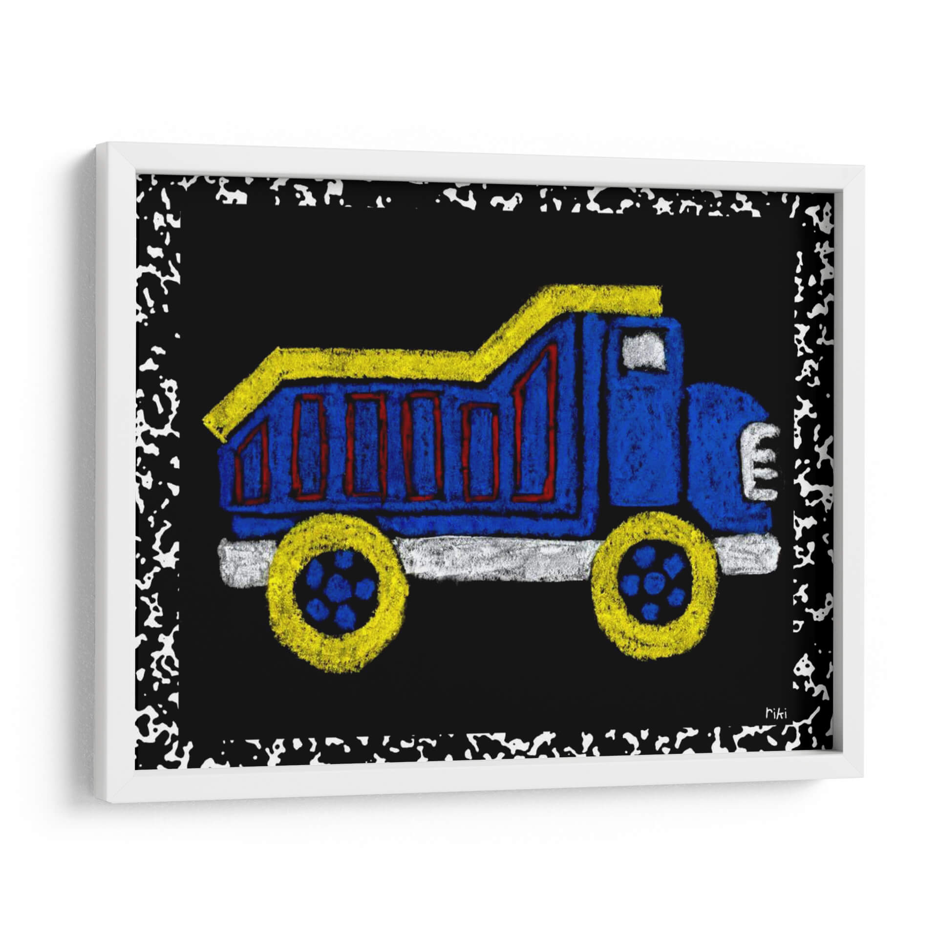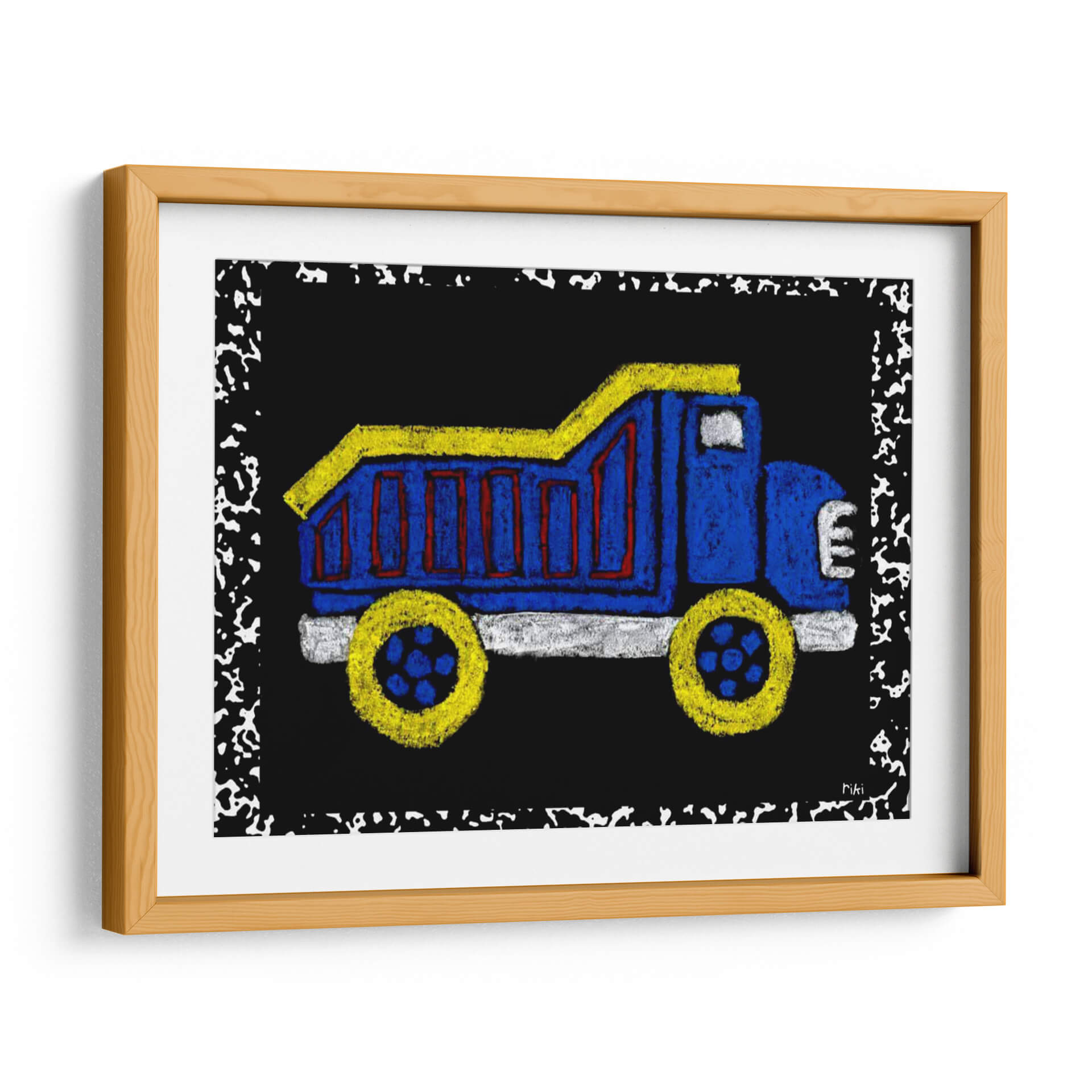 Este encantador cuadro decorativo, titulado 'Recreo II' por Chariklia Zarris, captura la nostalgia y la alegría de la infancia a través de una representación estilizada de un camión volquete. La obra se destaca por su vibrante paleta de colores, dominada por un audaz azul cobalto, acentos brillantes de amarillo y sutiles toques de rojo que delinean la estructura del vehículo. El fondo negro profundo crea un contraste llamativo, haciendo que los colores del camión resalten con una energía juguetona. El estilo recuerda a los dibujos infantiles o al arte popular, con líneas gruesas y una aplicación de color que evoca la textura del crayón o la tiza. La composición es frontal y clara, presentando el camión de perfil de una manera que es fácilmente reconocible y simpática. Es una pieza ideal para añadir un toque de diversión y color a una habitación infantil, una sala de juegos o incluso a un espacio de oficina que busque un ambiente más relajado y creativo. Este cuadro decorativo no solo embellece el espacio, sino que también evoca sentimientos de inocencia, aventura y recuerdos felices. Su simplicidad y el uso expresivo del color lo convierten en una adición atractiva y personalizable para cualquier decoración que busque un toque de originalidad y carácter.