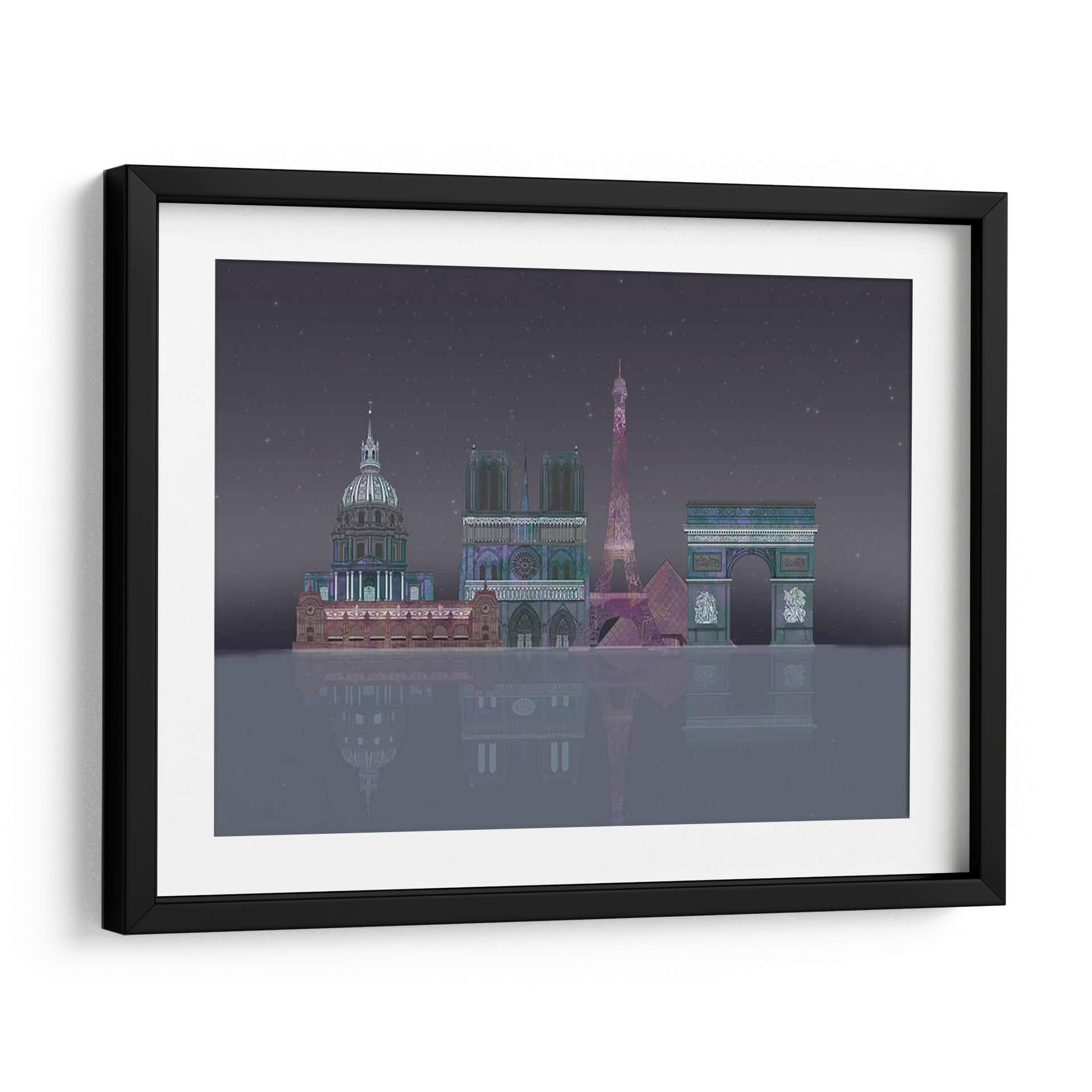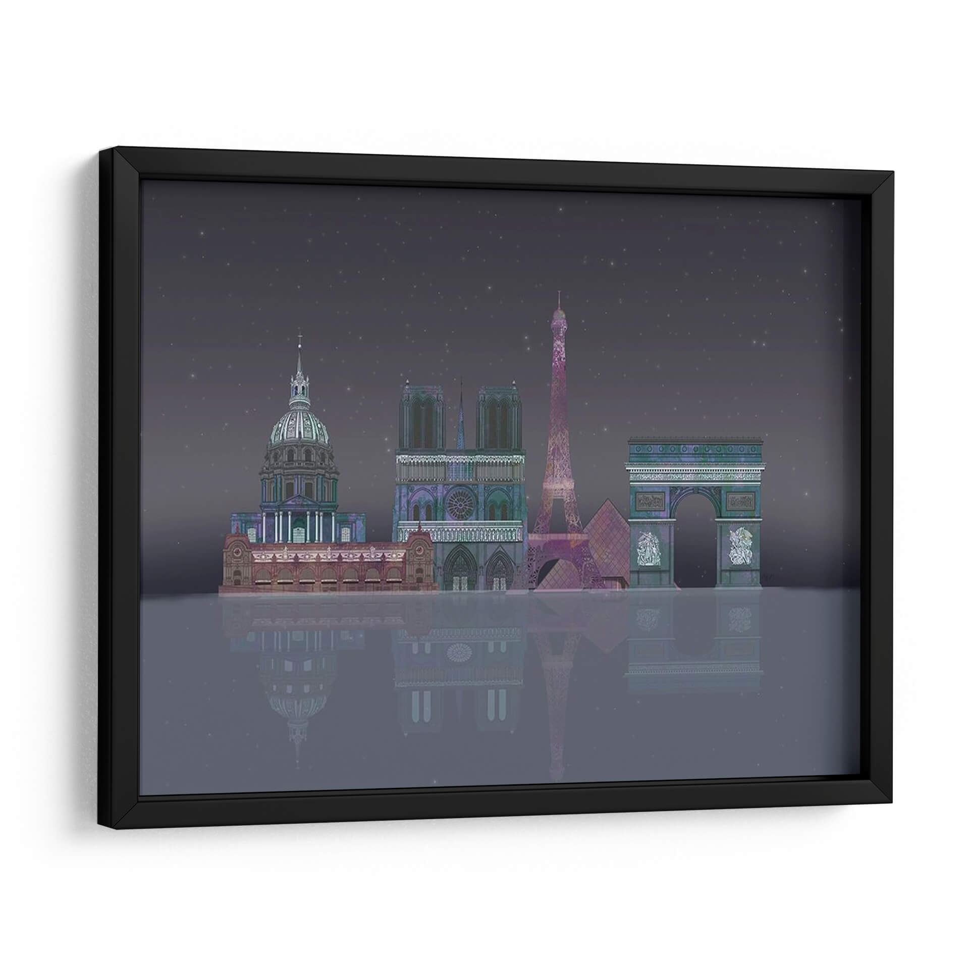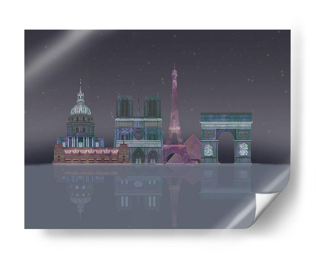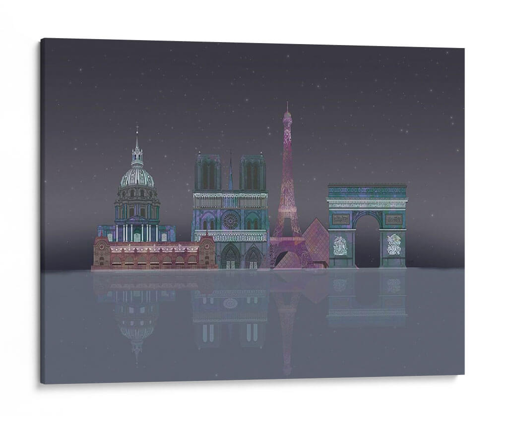 Sumérgete en la magia de la 'Noche Estrellada de París' con este cautivador cuadro decorativo, una obra de arte digital que captura la silueta icónica de la ciudad de la luz bajo un cielo estrellado. La representación estilizada de monumentos emblemáticos como la Torre Eiffel, Notre Dame y el Arco del Triunfo, bañados en una paleta de colores profundos y etéreos, evoca una sensación de misterio y romance nocturno. La detallada composición, con su reflejo sobre una superficie acuática imaginaria, añade una dimensión de profundidad y serenidad, invitando a la contemplación. Este cuadro es ideal para quienes buscan añadir un toque de elegancia y sofisticación a su hogar u oficina, transportándolos instantáneamente a las encantadoras calles parisinas. Perfecto para salones, dormitorios o estudios, esta pieza contemporánea se convertirá en el punto focal de cualquier espacio, despertando conversaciones y admiración. Su atmósfera única, entre lo onírico y lo arquitectónico, lo convierte en una adición memorable a tu colección de arte mural.