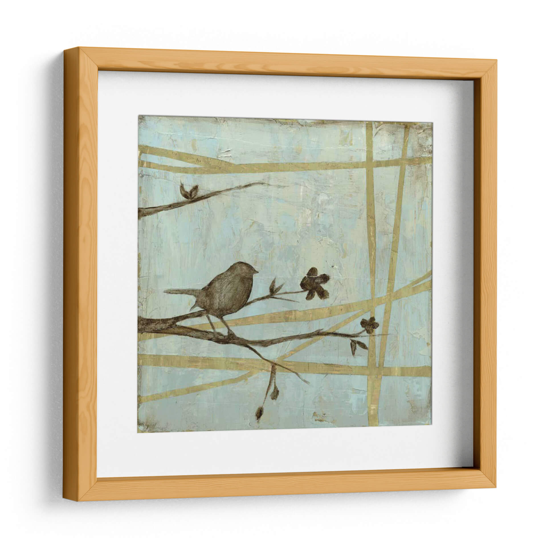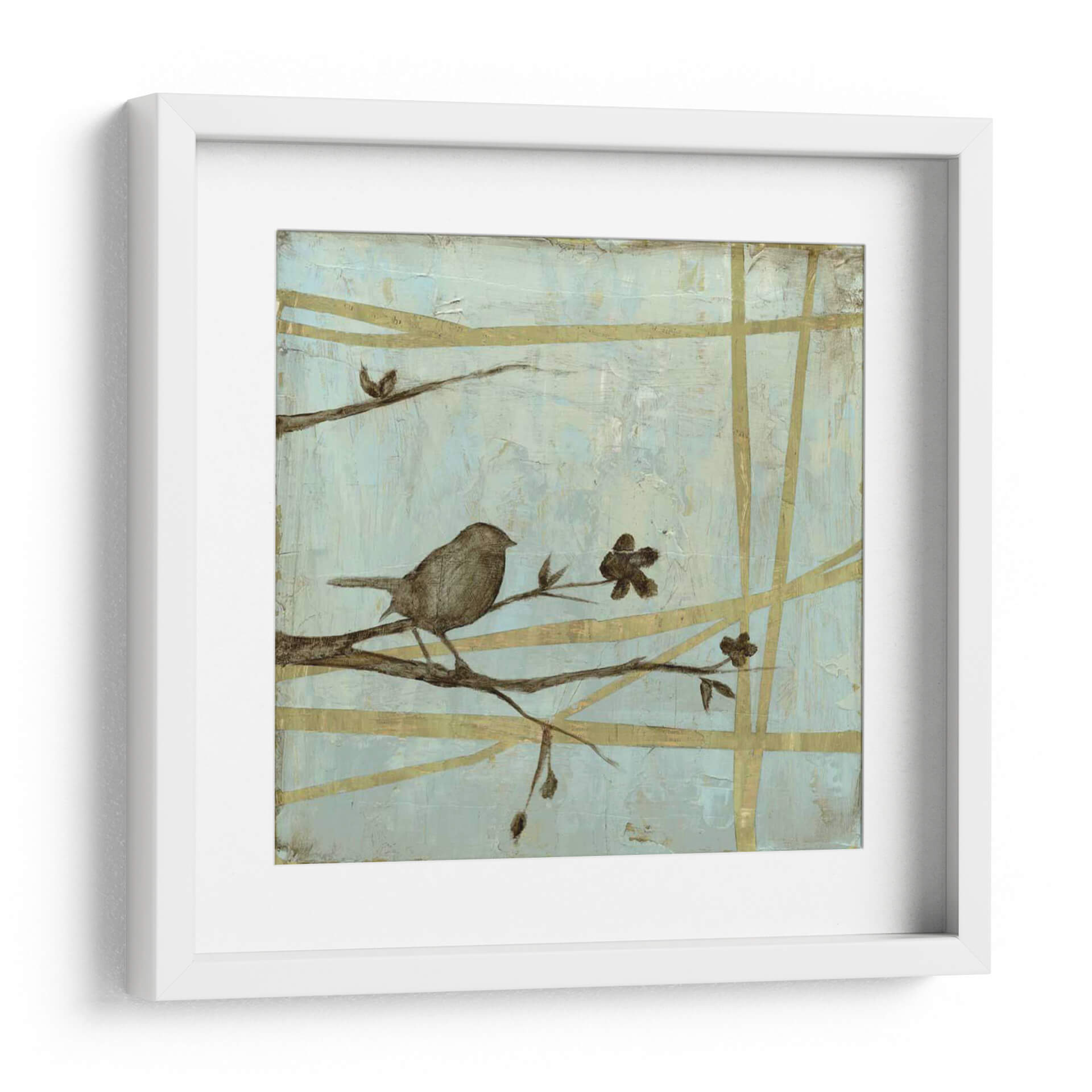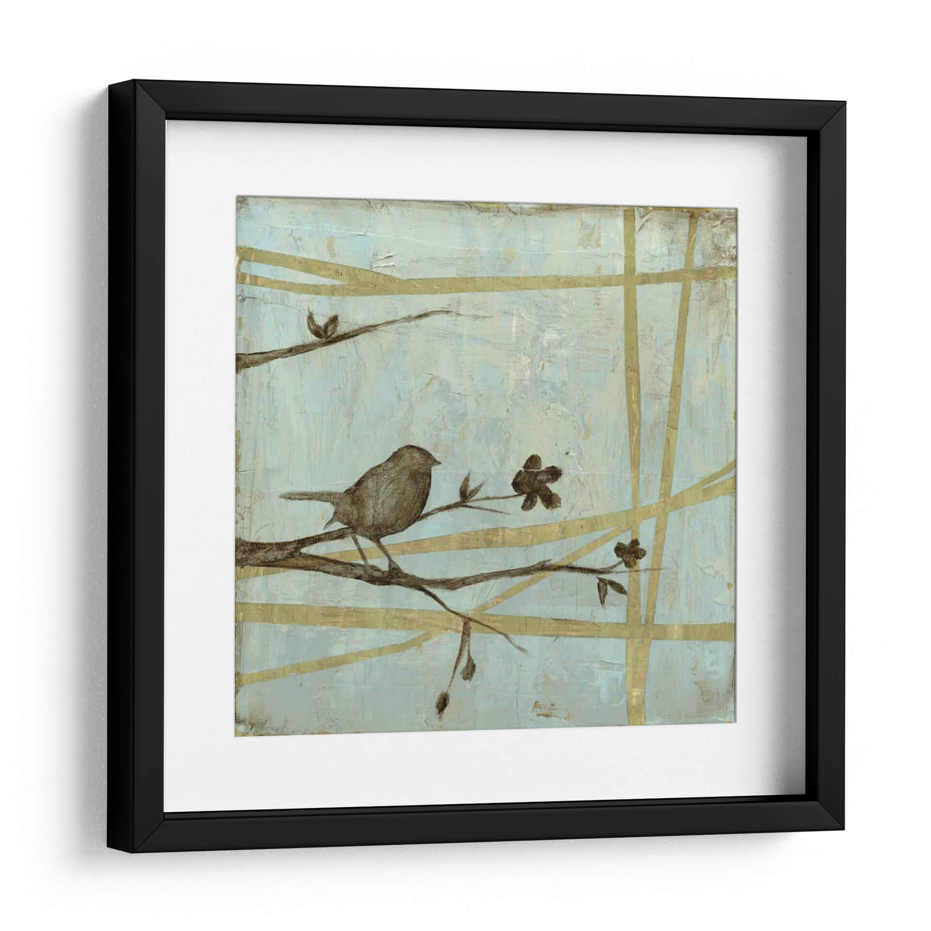 Sumérgete en la serenidad del bosque con "Respire Woodland II", una cautivadora obra de arte de Jennifer Goldberger. Este cuadro decorativo presenta un delicado pájaro posado sobre una rama, rodeado de sutiles flores y un entramado de líneas doradas que evocan la tranquilidad de la naturaleza. La paleta de colores, dominada por suaves tonos celestes y toques terrosos, crea una atmósfera de calma y contemplación, ideal para cualquier espacio que busque un respiro del ajetreo diario. El estilo semi-abstracto y la composición equilibrada invitan a la meditación y a la conexión con el mundo natural. "Respire Woodland II" es más que una simple pieza decorativa; es una ventana a un momento de paz, perfecta para añadir un toque de elegancia serena a tu sala de estar, dormitorio u oficina. Deja que la delicadeza de esta obra transporte tu hogar a un santuario de tranquilidad y belleza natural, inspirando momentos de reflexión y aprecio por la simplicidad.