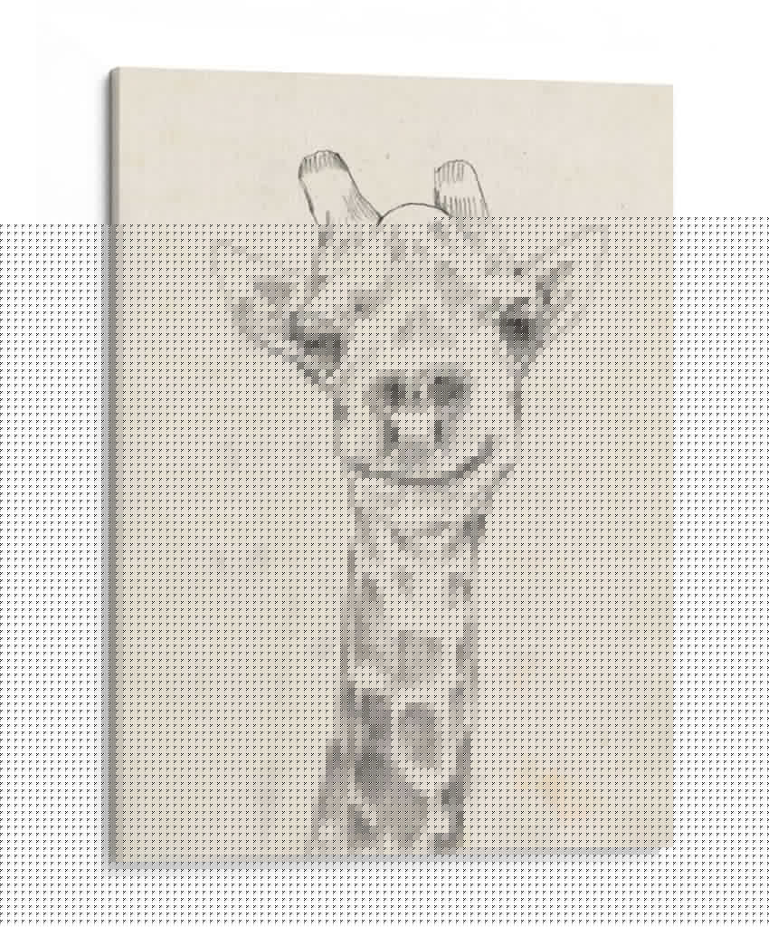 Captura la serenidad y el encanto de la sabana con "Retrato de Jirafa I", una obra de arte de Jennifer Goldberger que evoca calidez y un toque de naturaleza salvaje. Este cuadro decorativo, realizado con una técnica de boceto a lápiz que recuerda a los estudios clásicos, presenta un primer plano del rostro de una jirafa con una expresión amigable y curiosa. La paleta de colores se centra en tonos neutros y terrosos, con el contraste sutil de las manchas de la jirafa en un lápiz gris sobre un fondo de papel envejecido, creando una atmósfera acogedora y atemporal. El estilo realista con toques expresivos en el trazo del lápiz añade profundidad y personalidad a la pieza, haciéndola ideal para complementar cualquier espacio que busque un punto focal orgánico y sofisticado. Ya sea en un salón moderno, una oficina tranquila o un dormitorio acogedor, este retrato de jirafa aporta una sensación de paz y conexión con la vida silvestre. Su composición centrada y la mirada directa del animal invitan a la contemplación y añaden un carácter distintivo a la decoración. Una elección perfecta para amantes de los animales y del arte con un gusto por la elegancia discreta y el encanto rústico.