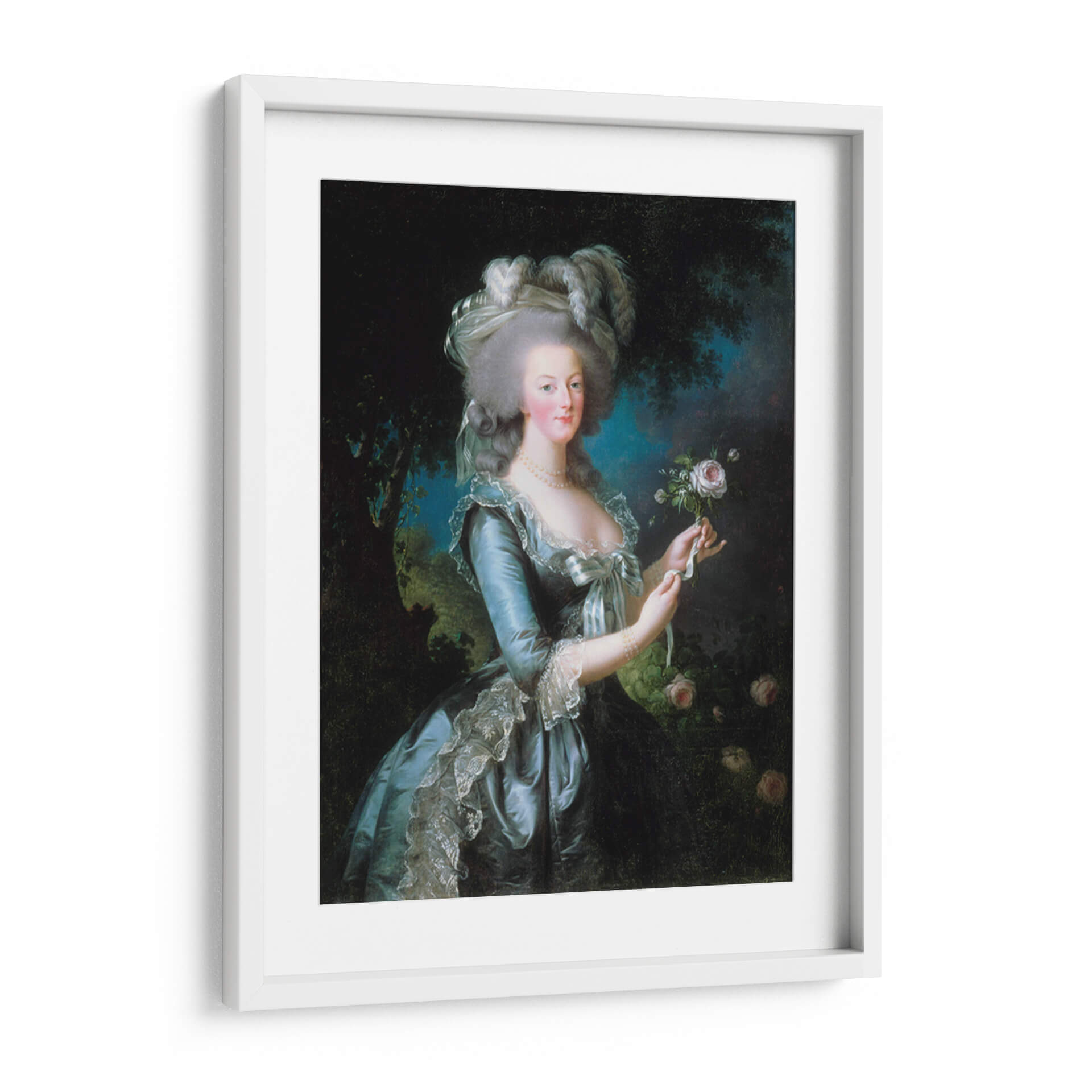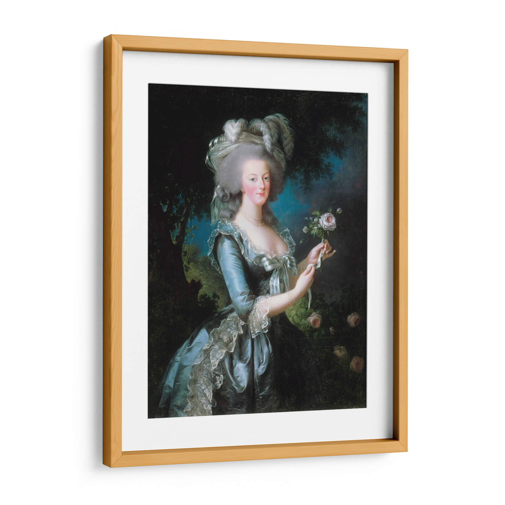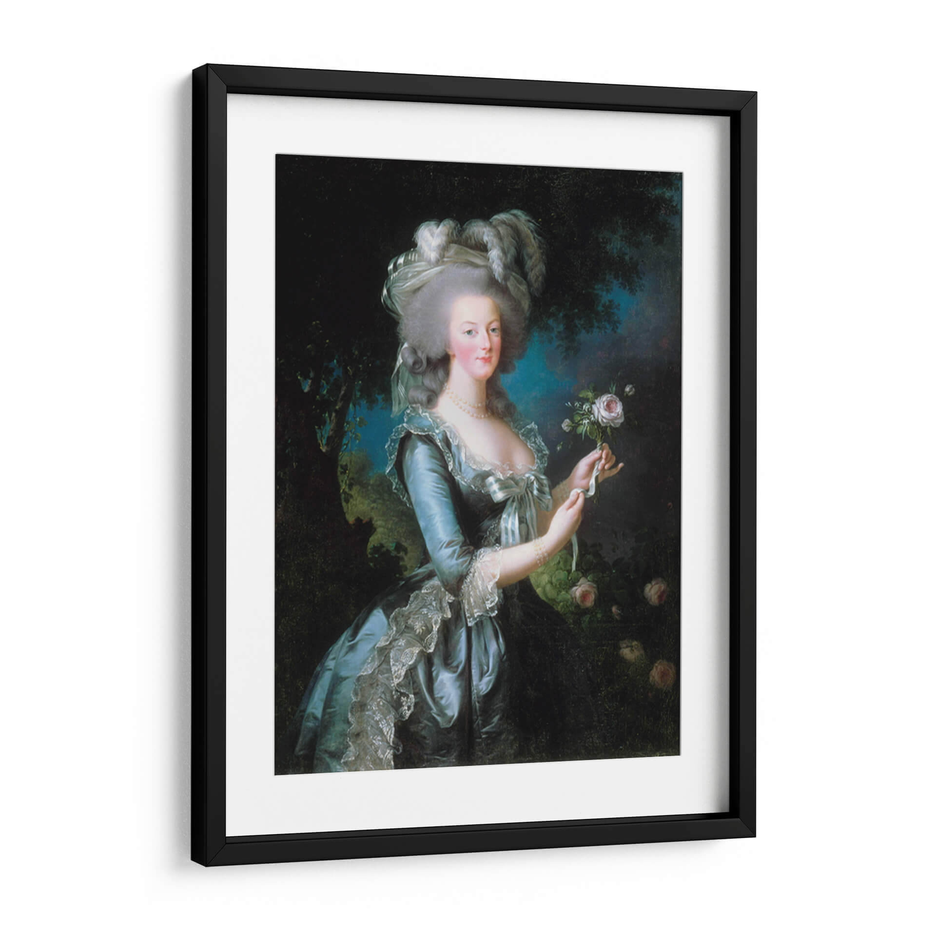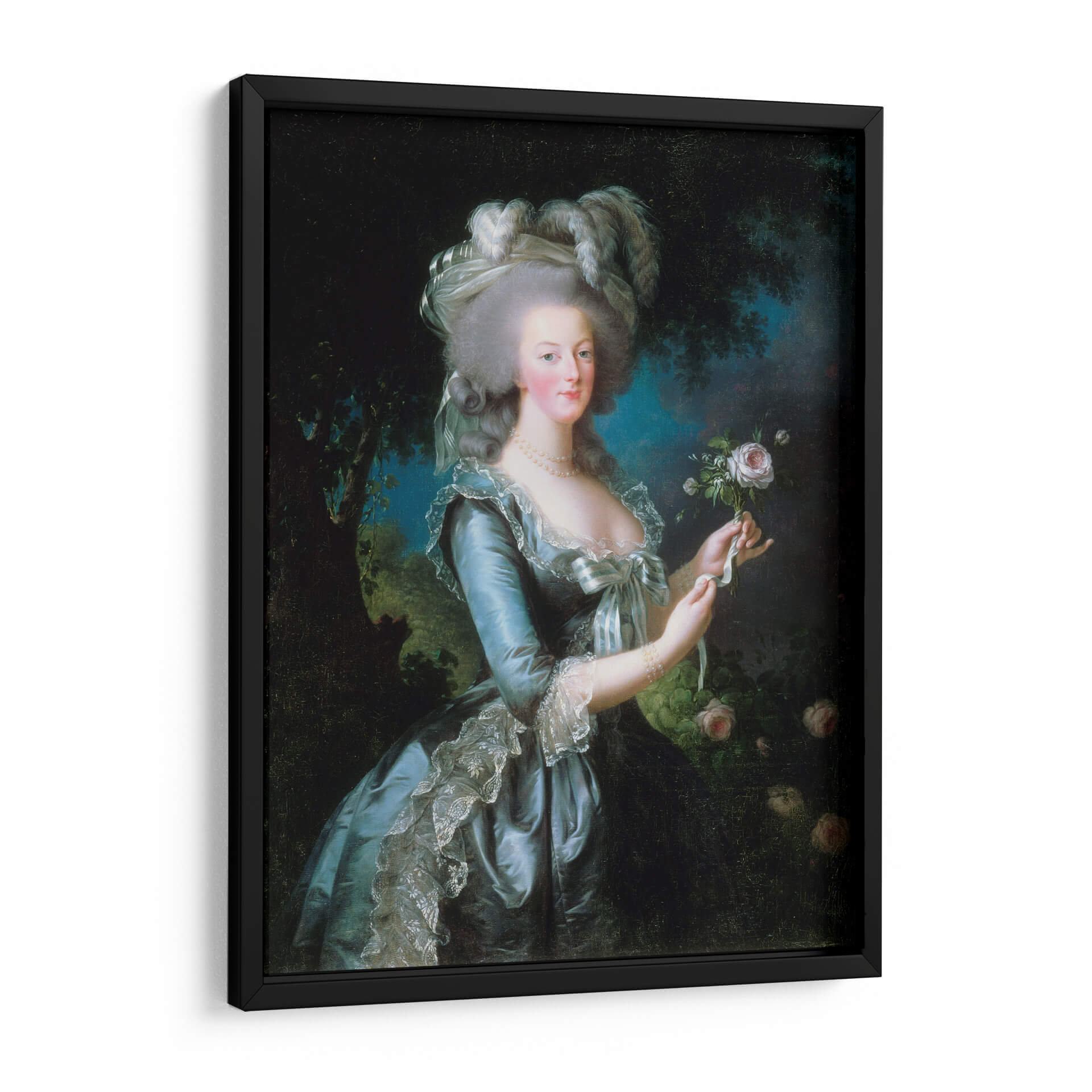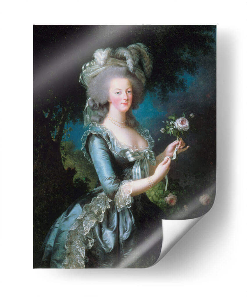 Sumérgete en la elegancia atemporal con este exquisito cuadro decorativo que captura el icónico "Retrato de María Antonieta" de Marie-Louise-Élisabeth Vigée-Lebrun. La obra presenta a la reina con su distintivo peinado voluminoso adornado con plumas, luciendo un suntuoso vestido de seda azul pálido con intrincados encajes y lazos. Sostiene delicadamente una rosa blanca, un símbolo de pureza y belleza efímera, mientras una suave sonrisa ilumina su rostro, transmitiendo una serenidad cautivadora. La paleta de colores, dominada por tonos pastel y azules profundos, crea una atmósfera de refinamiento y nostalgia, transportándote a la opulencia de la corte francesa del siglo XVIII. El detallado trabajo en la textura de las telas y la delicadeza de las flores añaden profundidad y realismo a la pieza. Este retrato clásico es ideal para añadir un toque de sofisticación histórica y elegancia a cualquier sala de estar, estudio o dormitorio, convirtiéndose en un punto focal que inspira admiración y conversación. Transforma tu espacio con esta obra maestra que evoca historia, arte y el encanto perdurable de una figura legendaria, perfecta para amantes del arte clásico y la decoración de interiores con carácter.