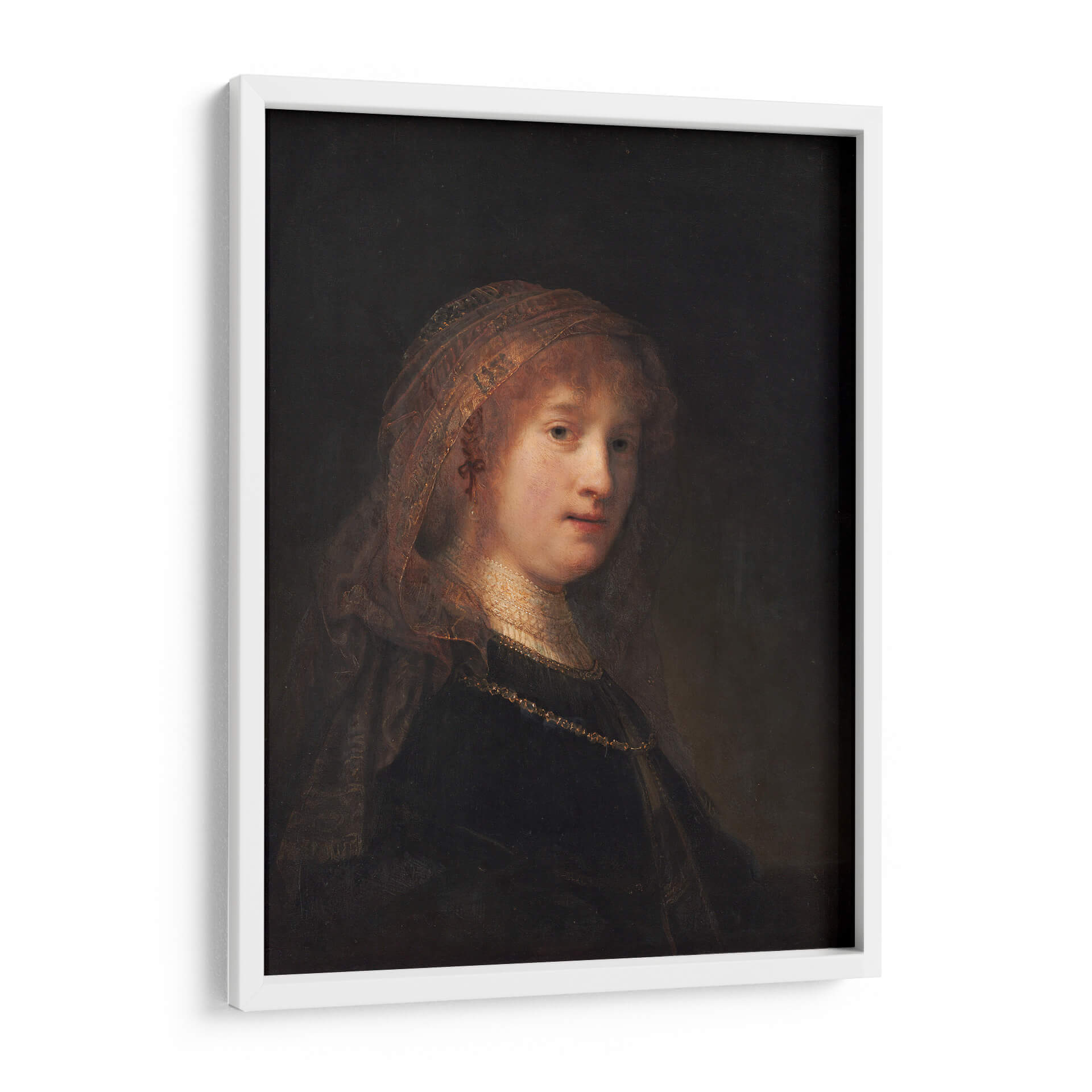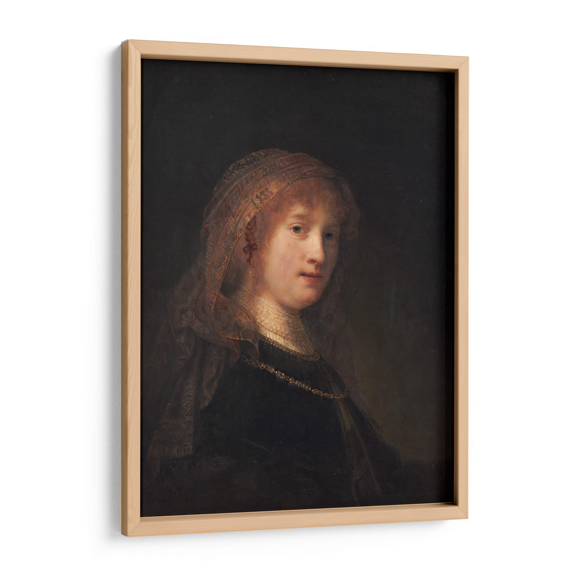 Sumérgete en la profundidad y el misterio de "Retrato de Saskia van Uylenburgh", una obra maestra de Rembrandt van Rijn que captura la esencia de la belleza y la introspección. Este icónico cuadro decorativo presenta a Saskia, la musa del renombrado artista, con una mirada serena y enigmática que invita a la contemplación. La rica paleta de colores, dominada por tonos cálidos y oscuros, crea una atmósfera de intimidad y sofisticación, resaltando la delicadeza de su piel y la sutil textura de su atuendo y velo. La iluminación dramática, característica del estilo barroco, modela suavemente sus facciones, dotando a la pieza de una vitalidad atemporal. La composición, centrada en su rostro, dirige la atención del espectador hacia la profundidad de su expresión, invitando a desentrañar las historias que yacen en su mirada. Este retrato clásico, interpretado con la maestría de Rembrandt, es ideal para añadir un toque de elegancia atemporal y profundidad intelectual a cualquier espacio, desde un estudio privado hasta una sala de estar señorial. Es una pieza que no solo decora, sino que también inspira y evoca una conexión con el arte histórico, perfecto para quienes aprecian la maestría y la emoción en la decoración de paredes.