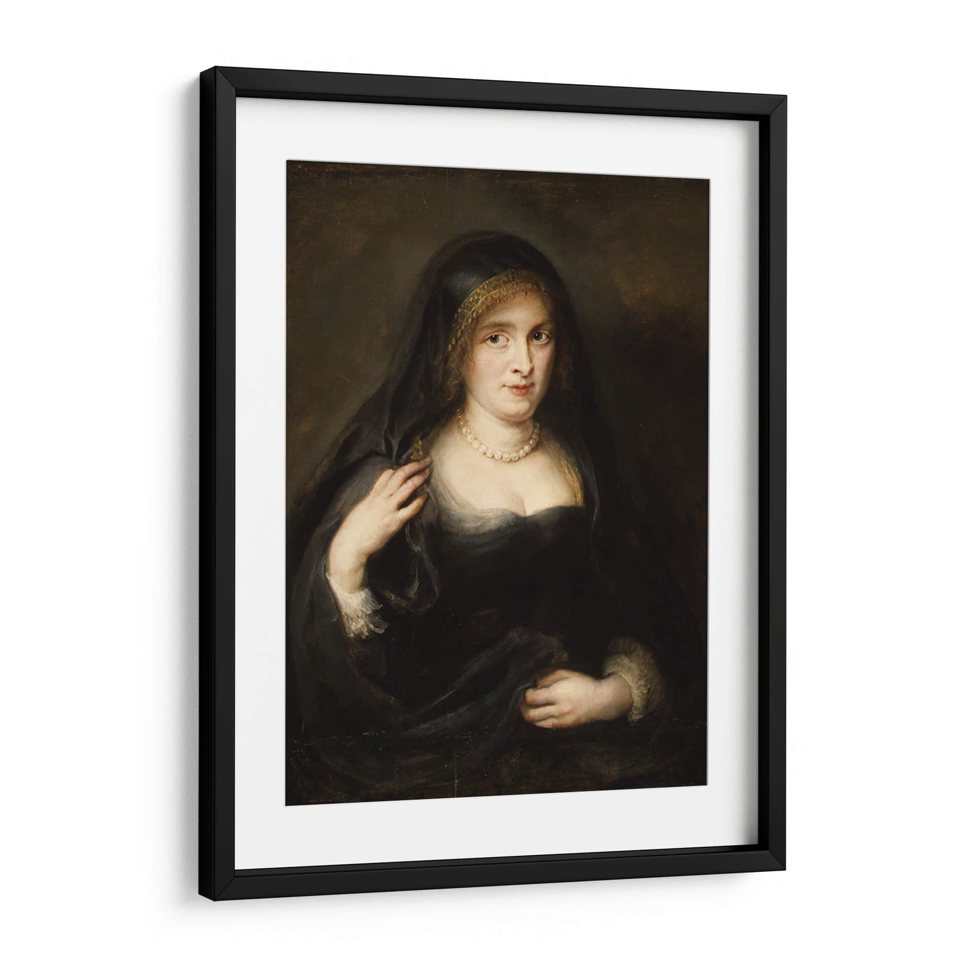 Sumérgete en la opulencia y el misterio con este cautivador cuadro decorativo, una obra maestra inspirada en el Renacimiento tardío. La pieza presenta el enigmático retrato de una mujer, evocando la elegancia y la sofisticación de épocas pasadas. Destacan sus delicados rasgos, enmarcados por un velo oscuro y adornados con un collar de perlas que capta la luz, añadiendo un toque de lujo atemporal. La paleta de colores se centra en tonos oscuros y ricos, con sutiles contrastes de luz y sombra que crean una atmósfera de profunda introspección y elegancia clásica. La composición, centrada en la figura femenina, invita a la contemplación, con gestos sutiles que añaden dramatismo y profundidad. Este cuadro decorativo es perfecto para añadir un punto focal de refinamiento a tu sala de estar, estudio u oficina, transportando a tus invitados a un mundo de belleza artística y carácter histórico. Su presencia es ideal para espacios que buscan una conexión con el arte clásico y una declaración de estilo sofisticado. Una pieza que combina el legado artístico con la decoración moderna, ofreciendo una ventana a la historia del arte para tu hogar.