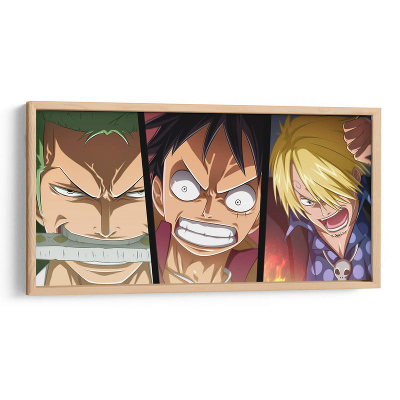 Sumérgete en el vibrante mundo del anime con este impactante cuadro decorativo "Roronoa Monkey and Vinsmoke". Esta obra de arte digital captura la intensidad y el espíritu indomable de personajes icónicos, presentando un primer plano dinámico de tres figuras masculinas con expresiones decididas y llenas de acción. La paleta de colores es audaz y contrastante, con tonos de piel cálidos, verdes intensos en el cabello de uno de los personajes y un fondo que evoca llamas o energía, creando una atmósfera de poder y aventura. El estilo es inconfundiblemente anime, con líneas definidas y un sombreado dramático que realza la fuerza de los rostros. Cada personaje irradia una personalidad única: uno con su característica seriedad y una espada en la boca, otro con una mirada desafiante y una sonrisa feroz, y el tercero con una expresión de pura determinación. Este cuadro decorativo es perfecto para los aficionados al manga y al anime, y servirá como un punto focal energético en cualquier sala de estar, dormitorio o espacio de entretenimiento, inyectando vitalidad y carácter a la decoración de tu hogar.