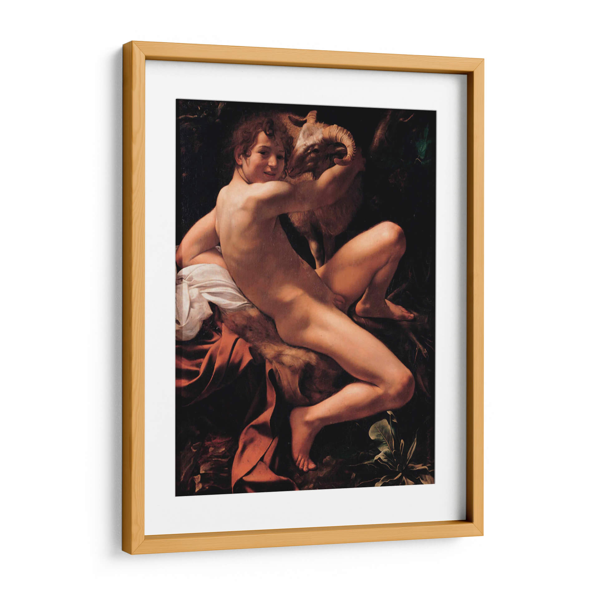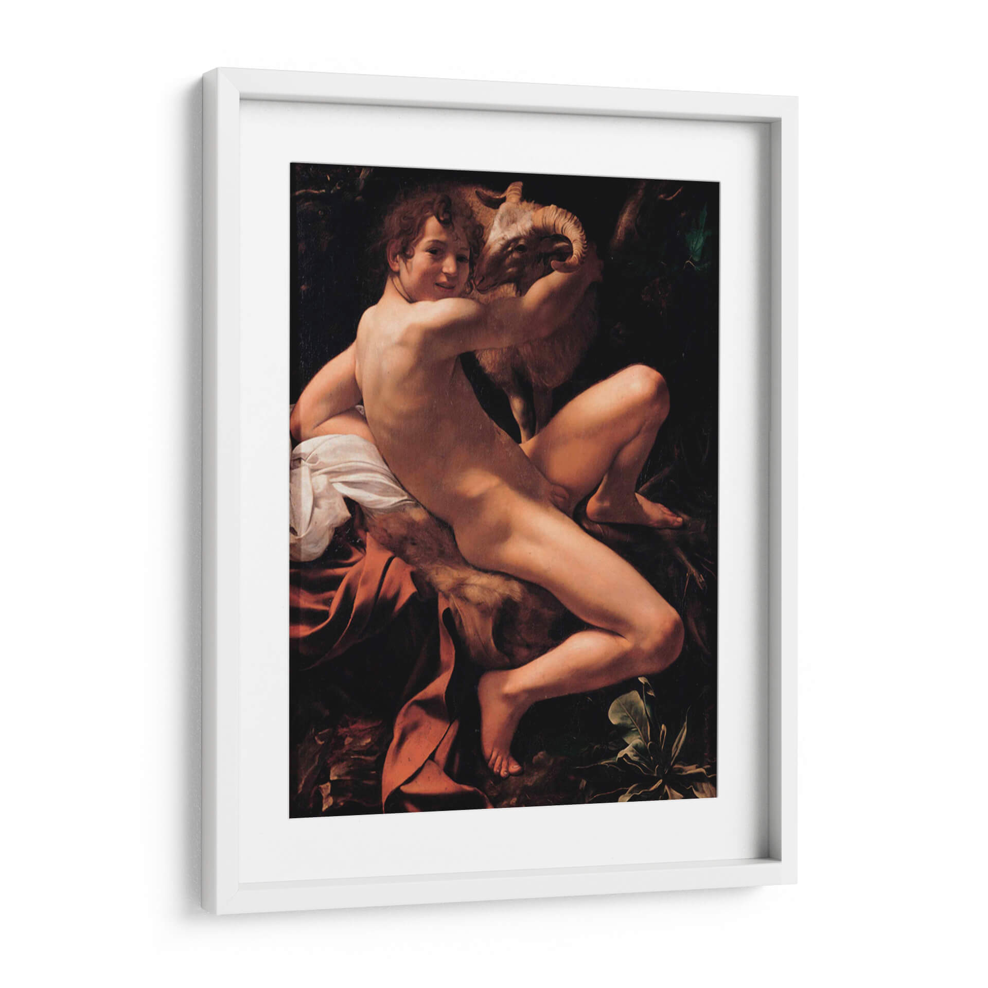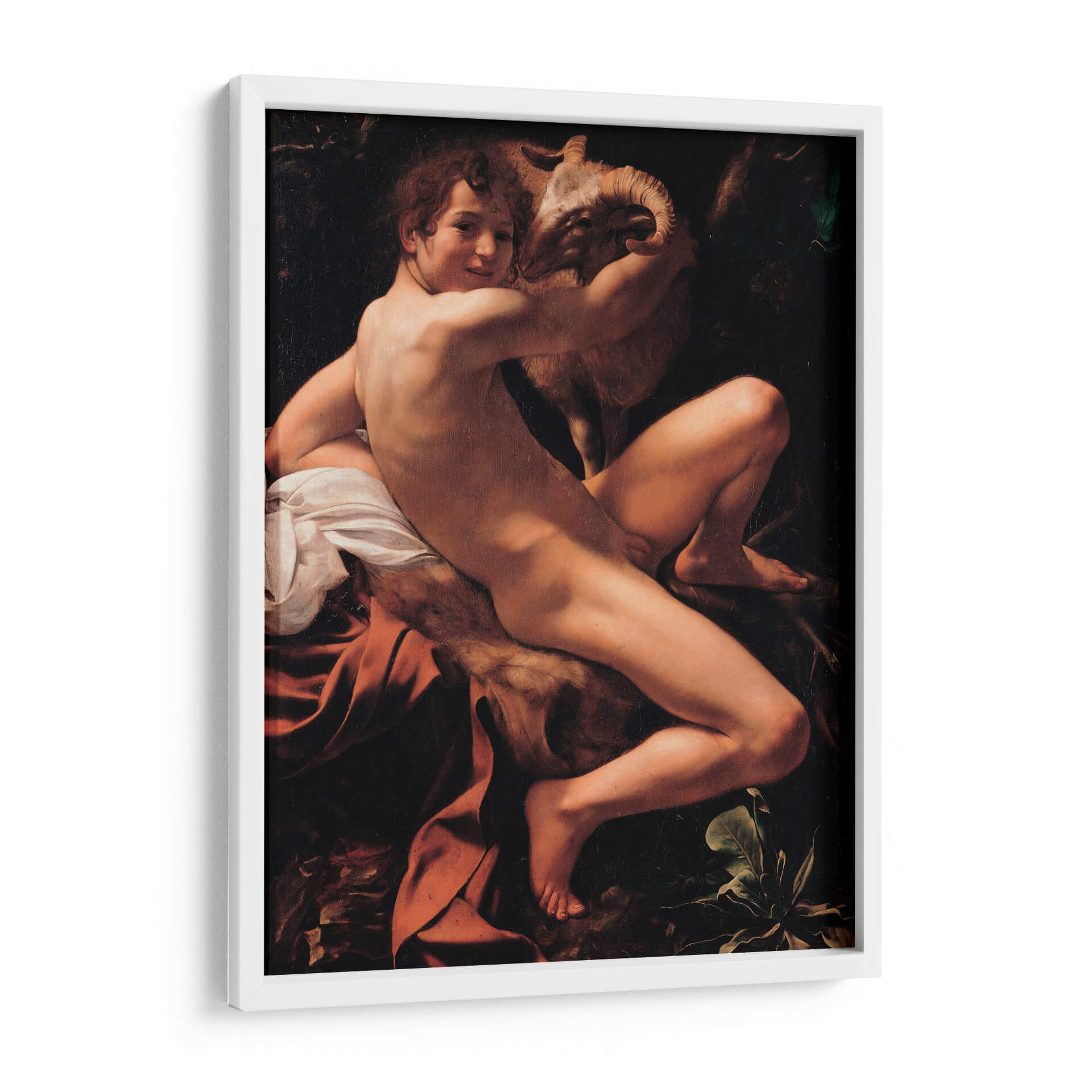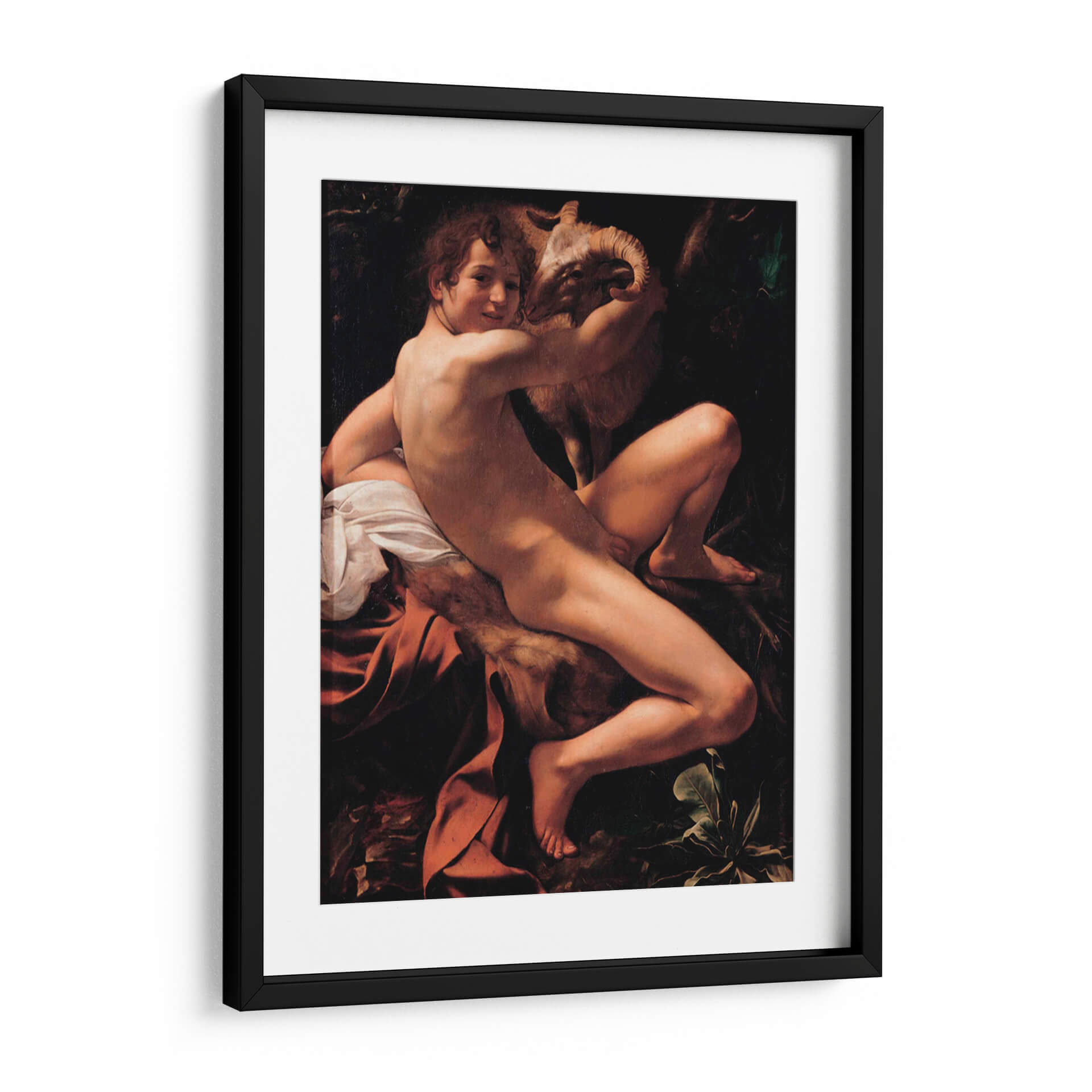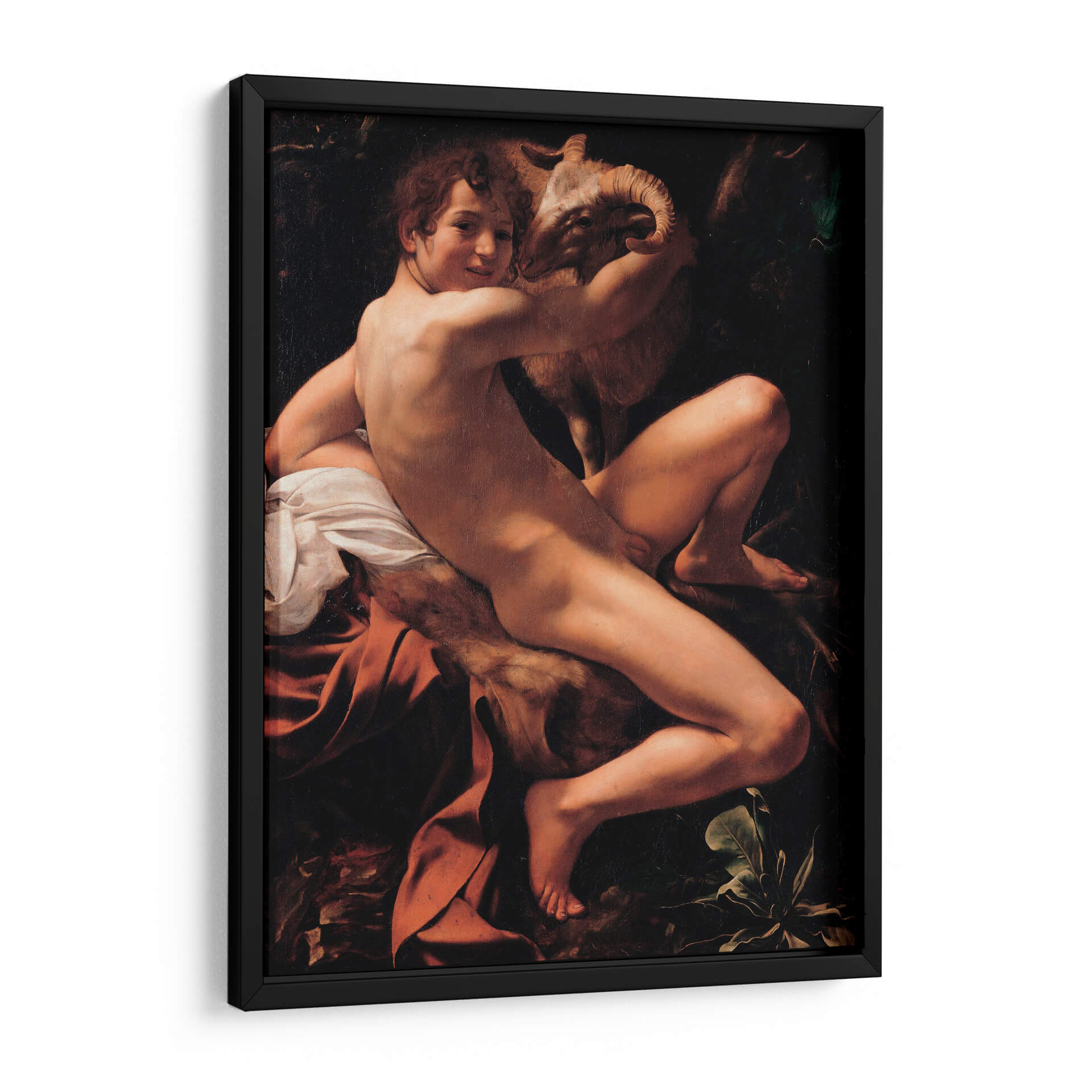 Transforma tu espacio con la intensidad dramática y la maestría de "San Juan Bautista", una obra inspirada en el genio de Caravaggio. Este cuadro decorativo captura la figura juvenil con una iluminación tenebrista que resalta la anatomía y la conexión íntima con el cordero que abraza. Los profundos contrastes entre luces y sombras crean una atmósfera cargada de emoción, ideal para aquellos que buscan piezas con carácter y profundidad histórica. Los tonos cálidos de la piel y los tejidos, junto con el fondo oscuro y terroso, invitan a la contemplación y añaden un toque de sofisticación clásica a cualquier ambiente. Perfecto para salas de estar, estudios o cualquier rincón que desee realzar con arte que cuente una historia y evoque el Barroco. Esta pieza es una elección audaz para quienes aprecian el realismo y el impacto psicológico en el arte decorativo. Añade una dimensión de belleza atemporal y reflexión a tu hogar con este impresionante cuadro.