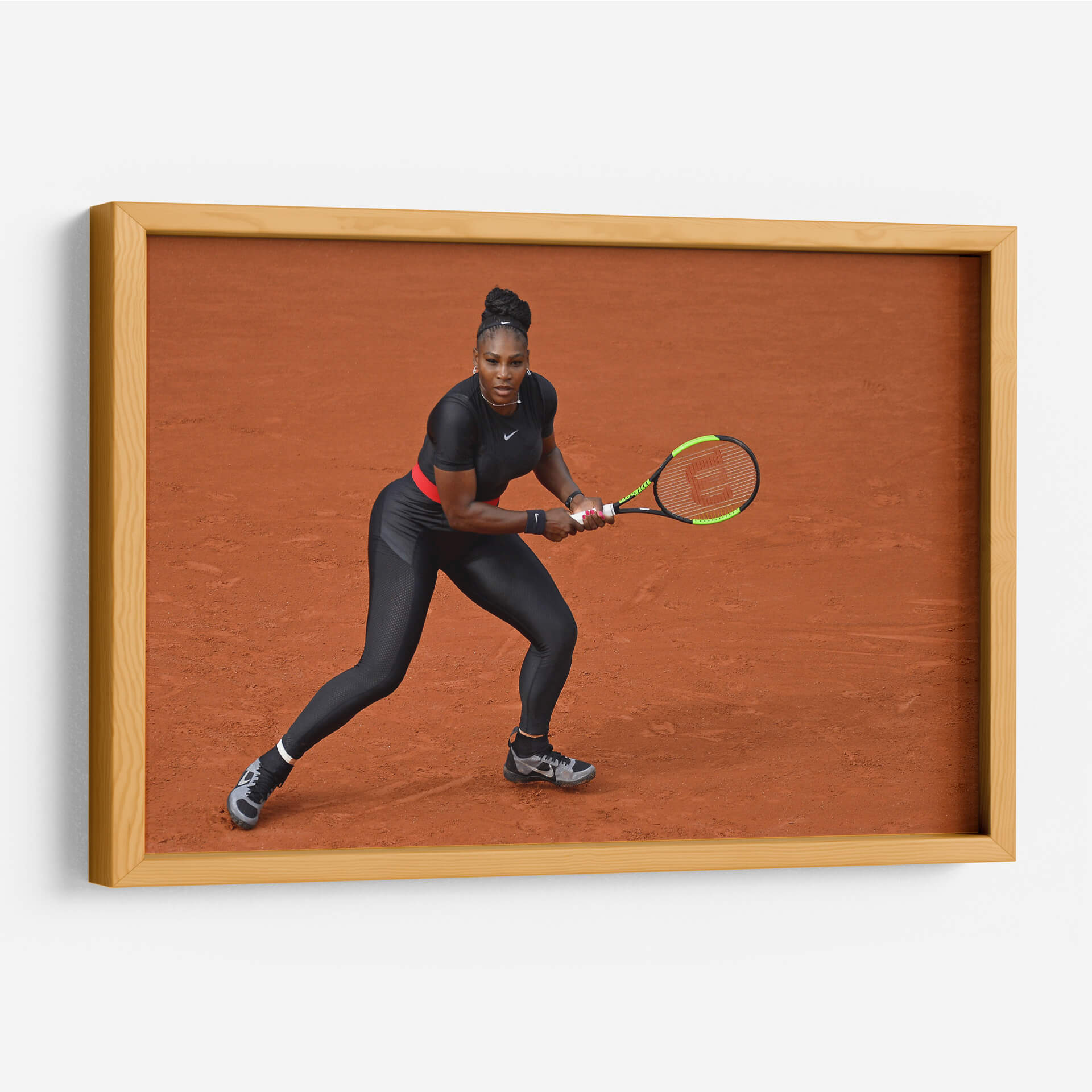 Inmortaliza la potencia y la elegancia del tenis con este impactante cuadro decorativo de Serena Williams en plena acción. La obra captura a la icónica atleta en una postura dinámica sobre una cancha de tierra batida, transmitiendo una energía palpable y una concentración inquebrantable. La paleta de colores, dominada por los tonos cálidos y terrosos de la arcilla, contrasta vívidamente con el atuendo oscuro y los detalles rojos de Serena, creando una composición visualmente cautivadora. El estilo fotográfico realista, centrado en el movimiento y la determinación, hace de esta pieza un tributo a la fuerza y el espíritu de superación. Es una adición perfecta para cualquier espacio que busque inspiración, motivación y un toque de deportividad de élite. Ideal para la sala de estar, el despacho o la zona de entrenamiento, este cuadro decorativo no solo embellece, sino que también evoca la emoción del deporte de alto rendimiento y celebra a una de las deportistas más grandes de todos los tiempos. Añade un toque de carácter y un recordatorio visual de la perseverancia y el triunfo a tu decoración.