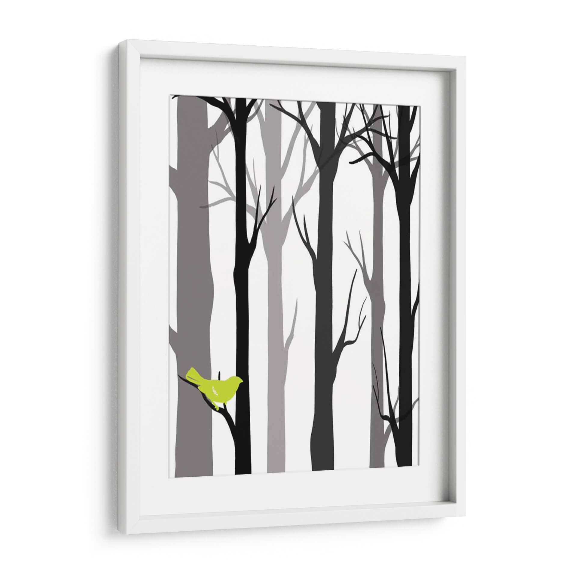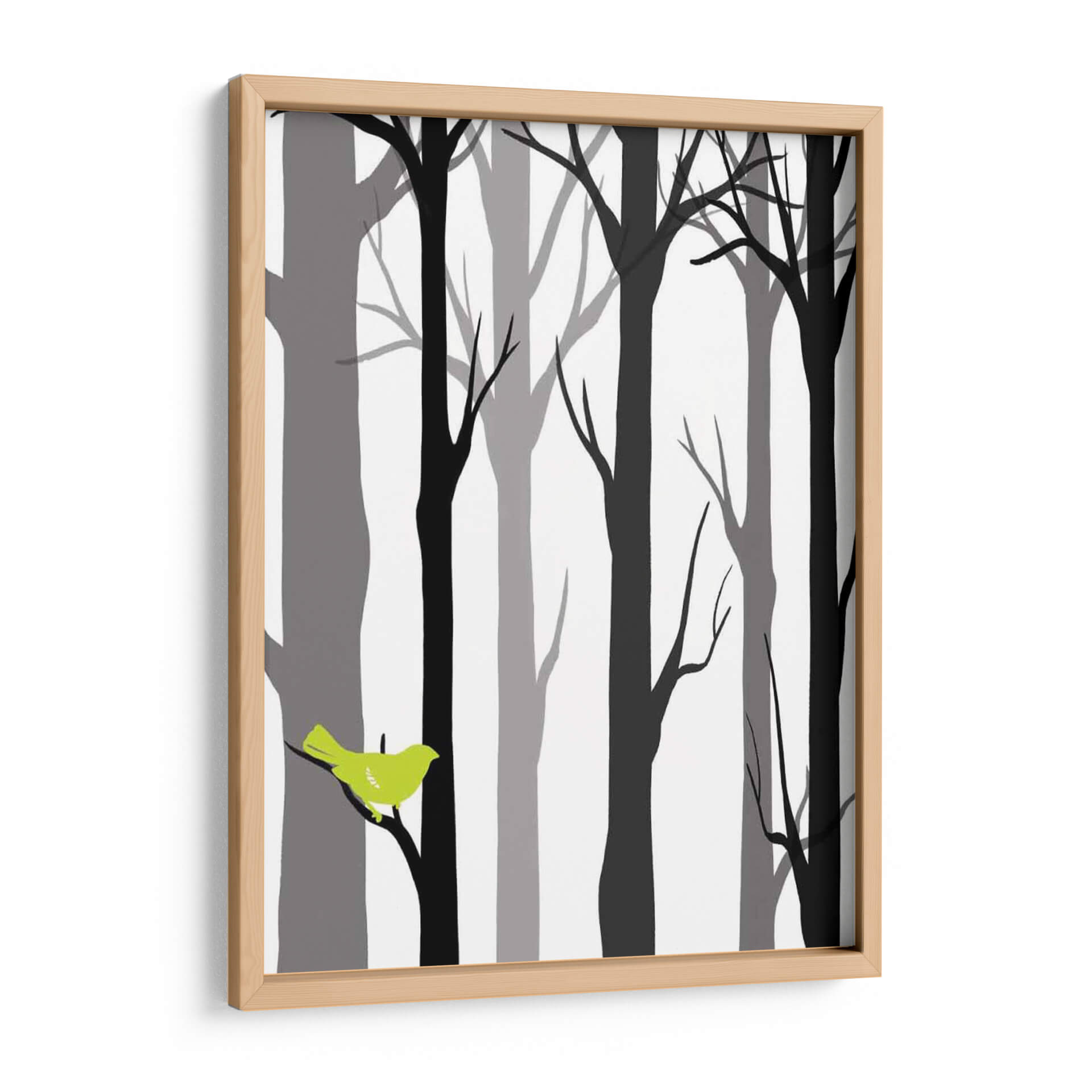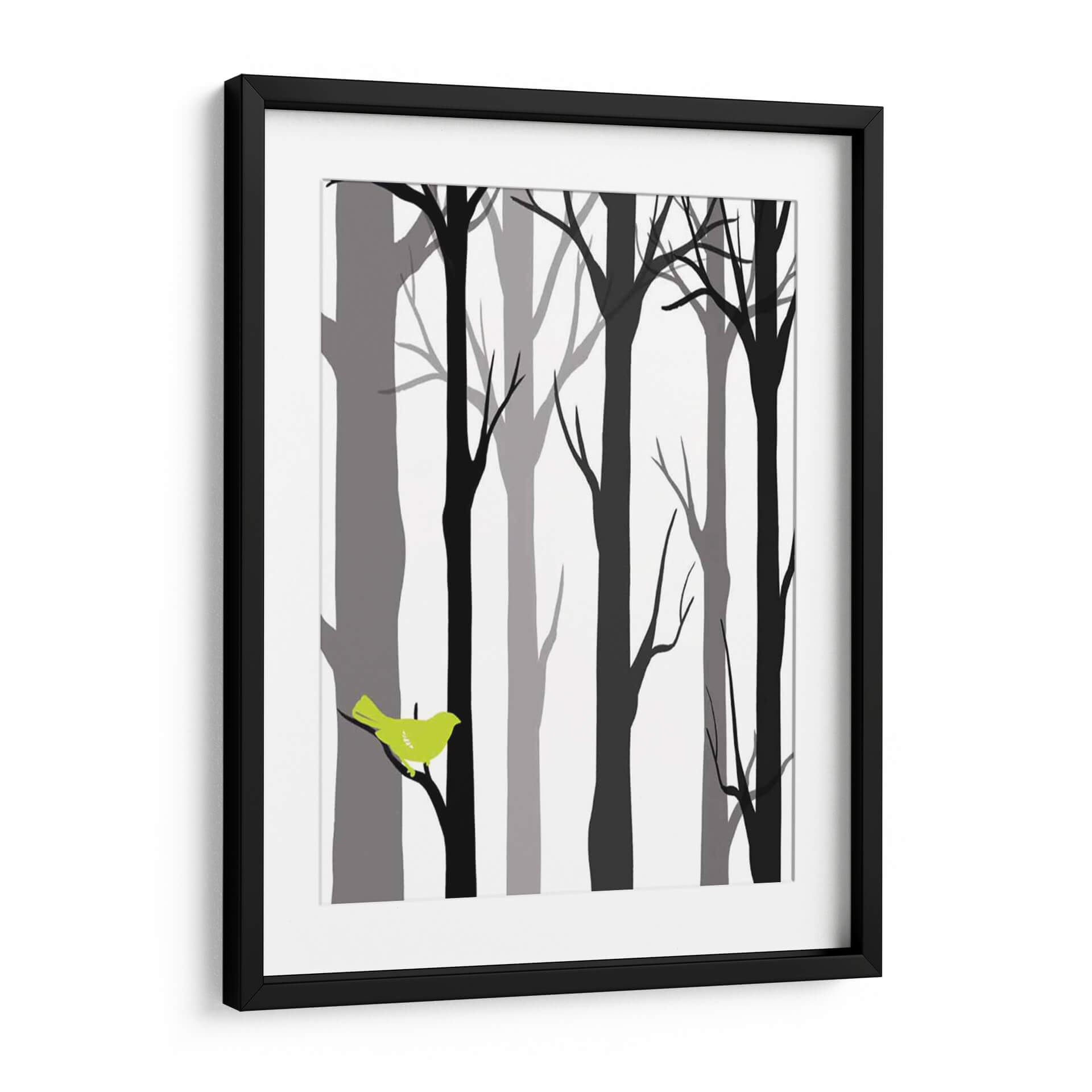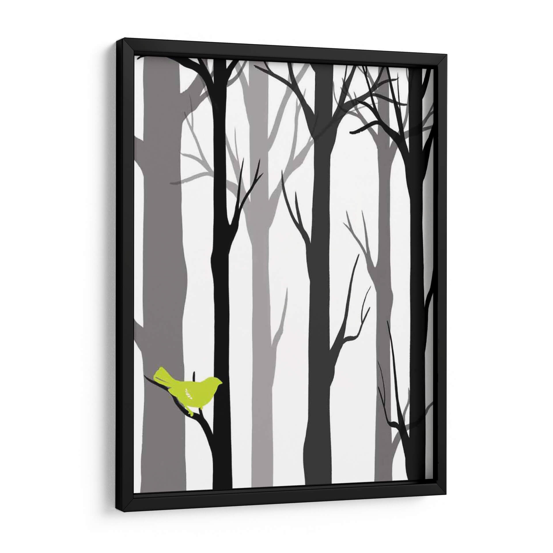 Adéntrate en la serenidad del bosque con este cautivador cuadro decorativo 'Silueta Del Bosque I', una obra de arte que evoca la tranquilidad de la naturaleza en su máxima expresión. Las siluetas estilizadas de árboles en diversas tonalidades de gris, desde el carbón profundo hasta el gris pálido, crean una atmósfera de profundidad y misterio, como si te encontraras en un bosque al amanecer o al anochecer. El contraste se rompe delicadamente con la vibrante aparición de un pequeño pájaro de un llamativo color verde lima, posado en una rama, que añade un toque de vida y esperanza a la composición. Este cuadro es una pieza minimalista pero poderosa, con una composición que guía la mirada a través de la densidad arbórea y celebra la belleza de lo simple. El estilo gráfico y la paleta de colores neutros con un acento de color lo convierten en una adición versátil para cualquier espacio. Ideal para quienes buscan infundir calma y un toque de color sutil en su hogar u oficina, este lienzo transformará cualquier pared en una ventana a un mundo natural sereno y estilizado. Una elección perfecta para salones modernos, dormitorios acogedores o incluso un despacho que aspire a la paz.