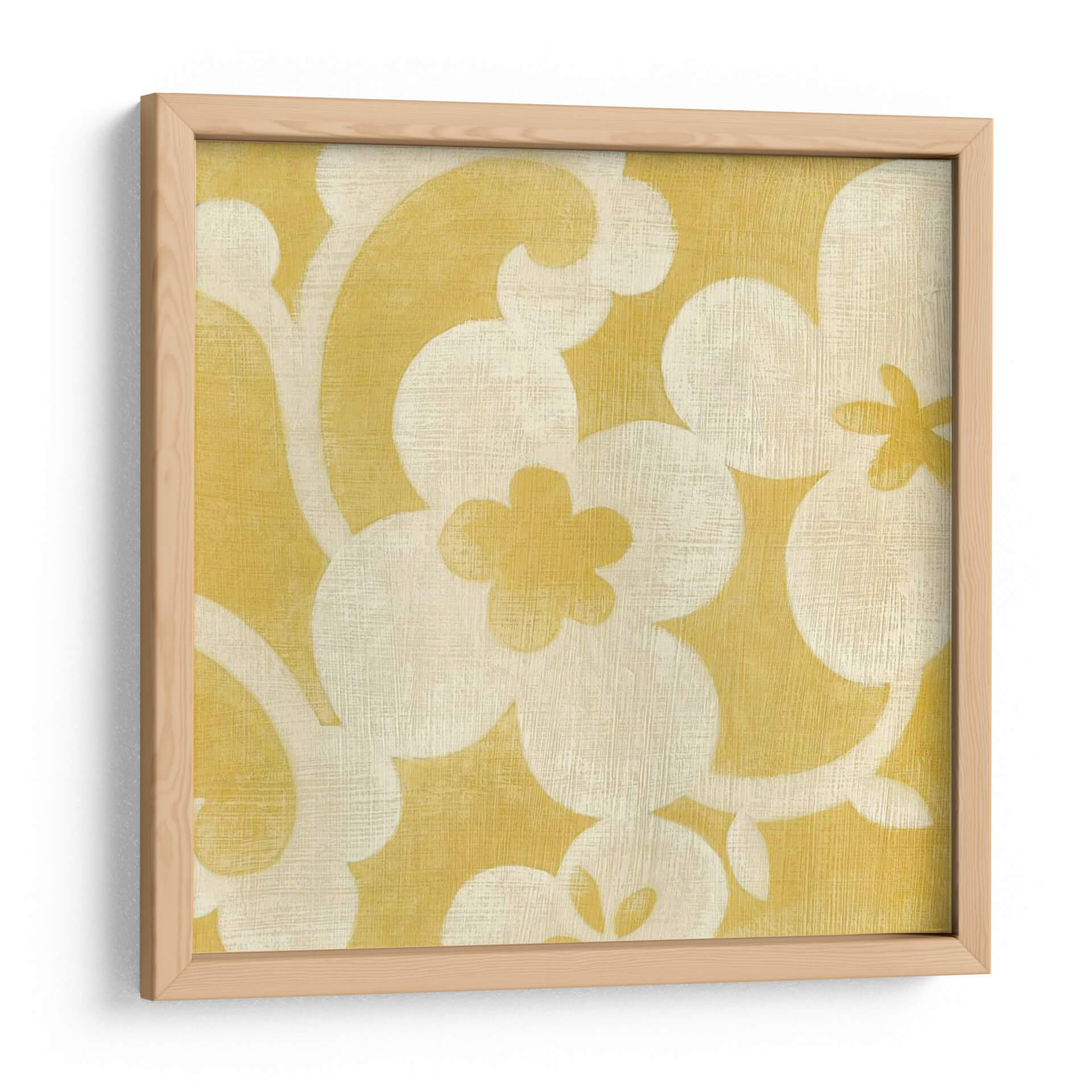 Sumérgete en la calidez y el encanto de "Silueta Suzani En Amarillo I", una obra de arte contemporáneo que evoca la belleza de los patrones florales con un toque moderno. Esta pieza presenta una vibrante paleta de amarillos y cremas, creando una atmósfera luminosa y acogedora. Las formas orgánicas y las siluetas estilizadas de flores y hojas se entrelazan en una composición armoniosa, inspirada en los tradicionales diseños Suzani pero reinterpretada con una sensibilidad artística actual. El estilo gráfico y la textura sutil añaden profundidad y carácter, haciendo de este cuadro decorativo un punto focal cautivador para cualquier espacio. Ideal para añadir un toque de alegría y sofisticación a tu sala de estar, comedor u oficina. "Silueta Suzani En Amarillo I" no es solo una decoración, es una invitación a la serenidad y al optimismo, perfecta para quienes buscan infundir vitalidad y estilo en su hogar. Deja que esta obra transformé tus paredes en un lienzo de expresión personal y buen gusto, resonando con la energía positiva de la naturaleza y el arte contemporáneo.