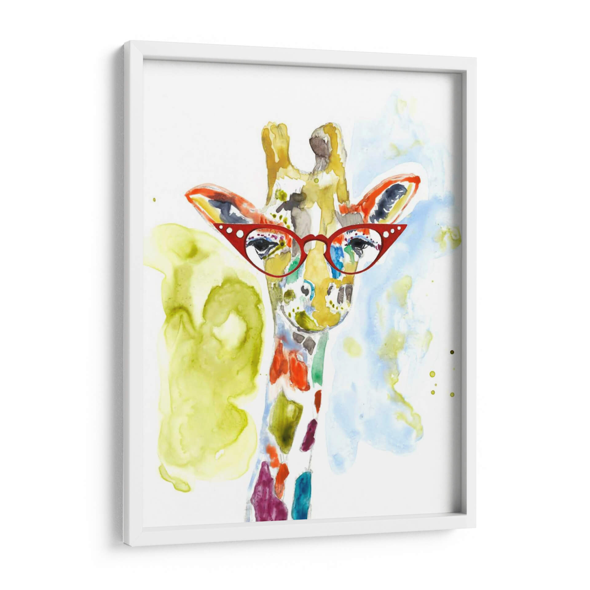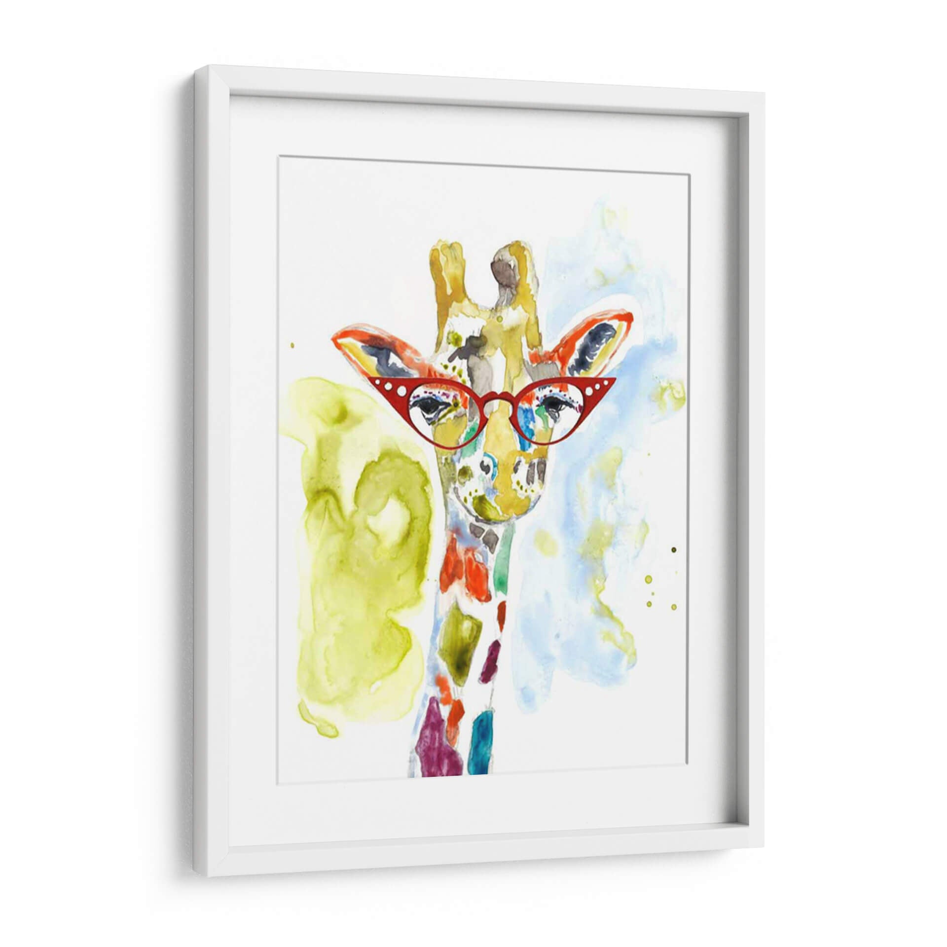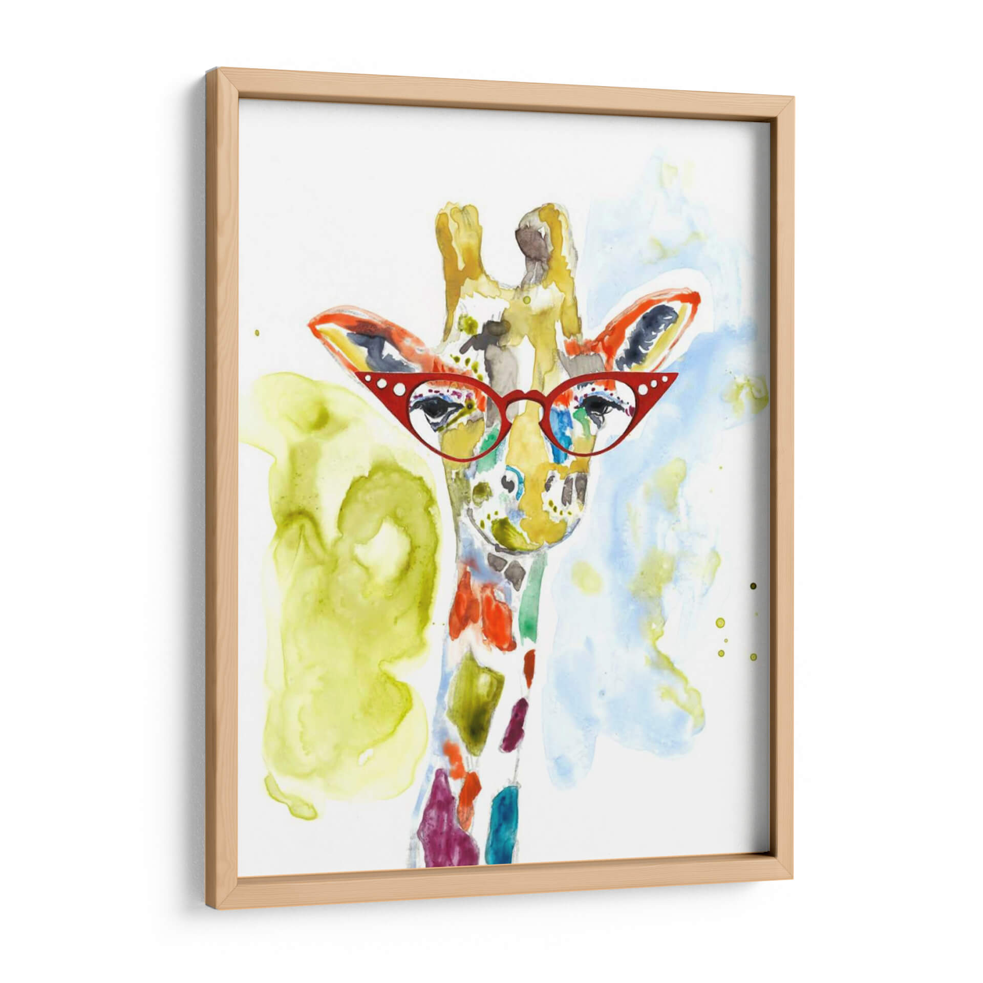 Dale vida a tus espacios con este encantador cuadro decorativo de una jirafa con gafas, titulado 'Smarty-Pants Jirafa' por Jennifer Goldberger. Esta obra de arte captura la imaginación con su estilo acuarela vibrante y juguetón. La jirafa, retratada con una mirada inteligente y unas llamativas gafas rojas de ojo de gato, se presenta sobre un fondo etéreo con salpicaduras de acuarela en tonos verdes y azules que sugieren un entorno abstracto y dinámico. La paleta de colores es audaz y expresiva, con toques de rojo, naranja, verde, azul y morado salpicando el pelaje de la jirafa, creando un contraste fascinante con el fondo claro. El estilo de pintura, que combina la delicadeza de la acuarela con una audacia moderna, resulta en una pieza llena de personalidad y carácter. Es el cuadro decorativo perfecto para añadir un toque de alegría y sofisticación a cualquier habitación, desde una sala de estar moderna hasta una oficina o un dormitorio infantil. Esta pieza única es ideal para quienes buscan arte mural que sea a la vez divertido, estilizado y lleno de color, convirtiéndose en un punto focal instantáneo y una fuente de conversación.