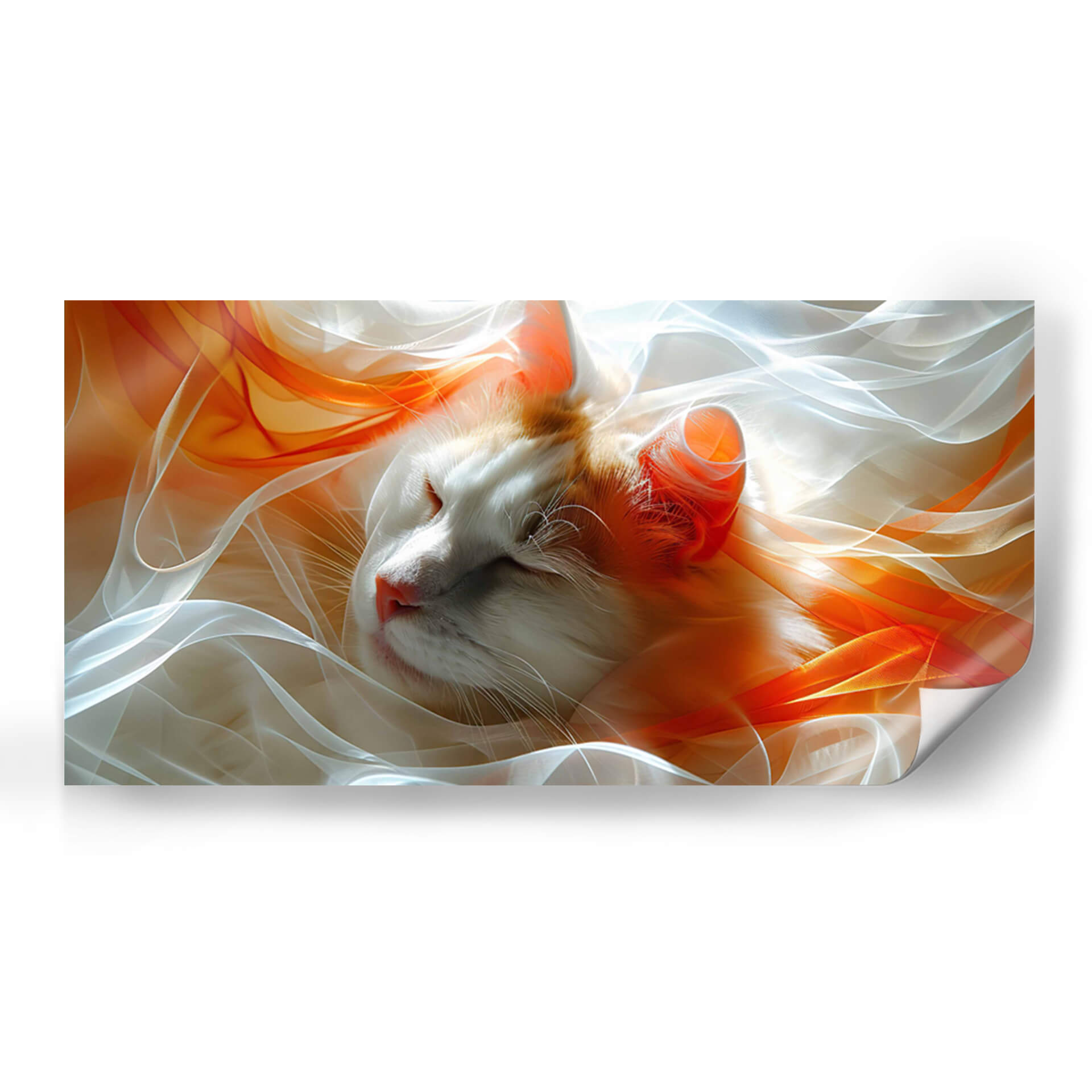 Sumérgete en la serenidad de "Soñando", una obra de arte cautivadora de Cecilia Flores que captura la esencia del descanso y la tranquilidad. Este cuadro decorativo presenta un primer plano íntimo de un gato blanco y naranja, con los ojos cerrados, envuelto en un etéreo velo de telas fluidas en tonos blancos y naranjas vibrantes. La delicada textura de las telas se entrelaza con el suave pelaje del felino, creando una sensación de suavidad y confort. La paleta de colores, dominada por blancos puros, cremas cálidos y acentos de naranja intenso, evoca una atmósfera de paz y calidez, ideal para cualquier espacio que busque un toque de serenidad. El estilo abstracto y onírico de la composición invita a la contemplación, mientras que la mirada serena del gato te transporta a un mundo de calma y ensueño. "Soñando" es la pieza perfecta para añadir un toque de elegancia y relajación a tu dormitorio, sala de estar o incluso una oficina, transformando cualquier ambiente en un santuario de paz. Descubre la magia de este cuadro decorativo y deja que la tranquilidad de "Soñando" inunde tu hogar.