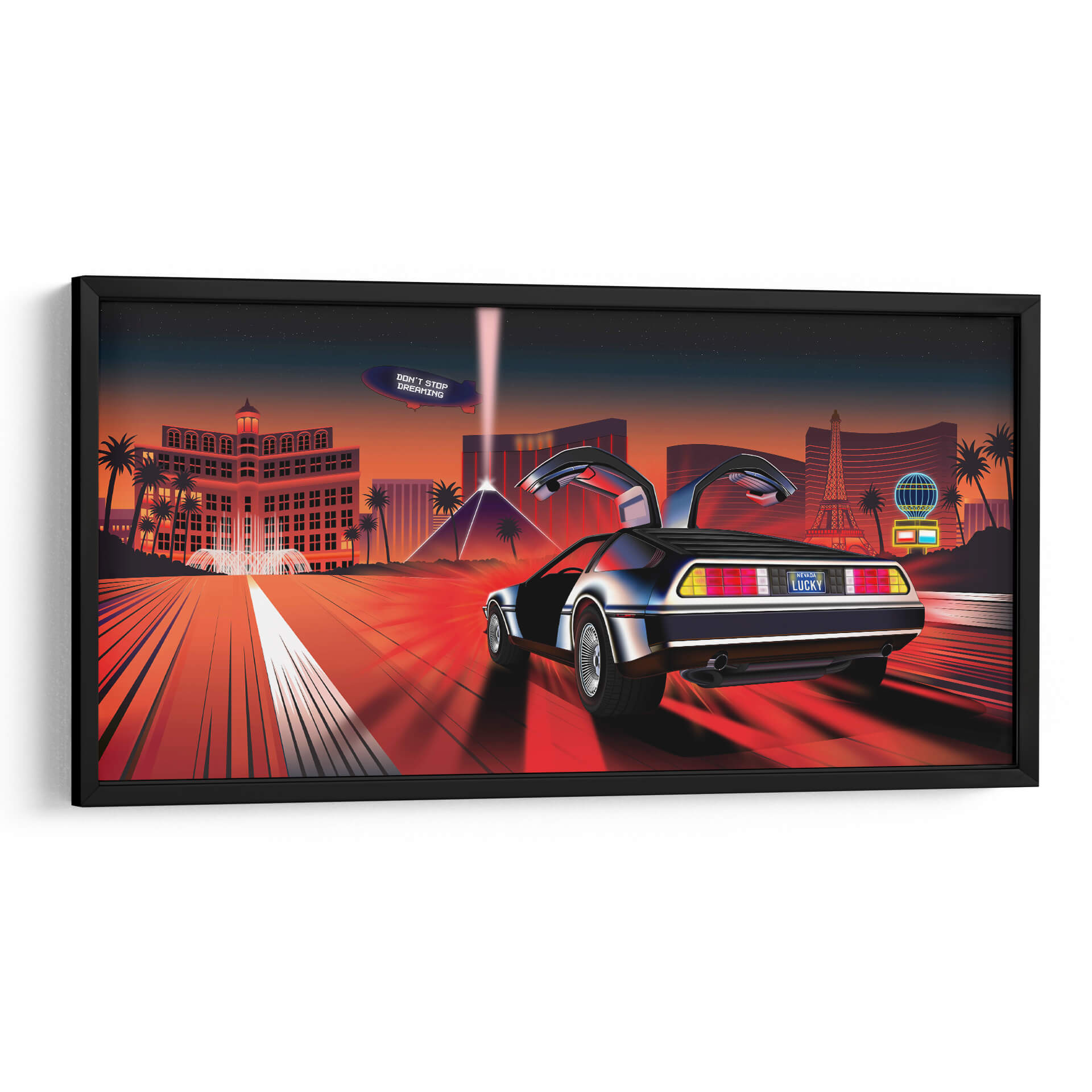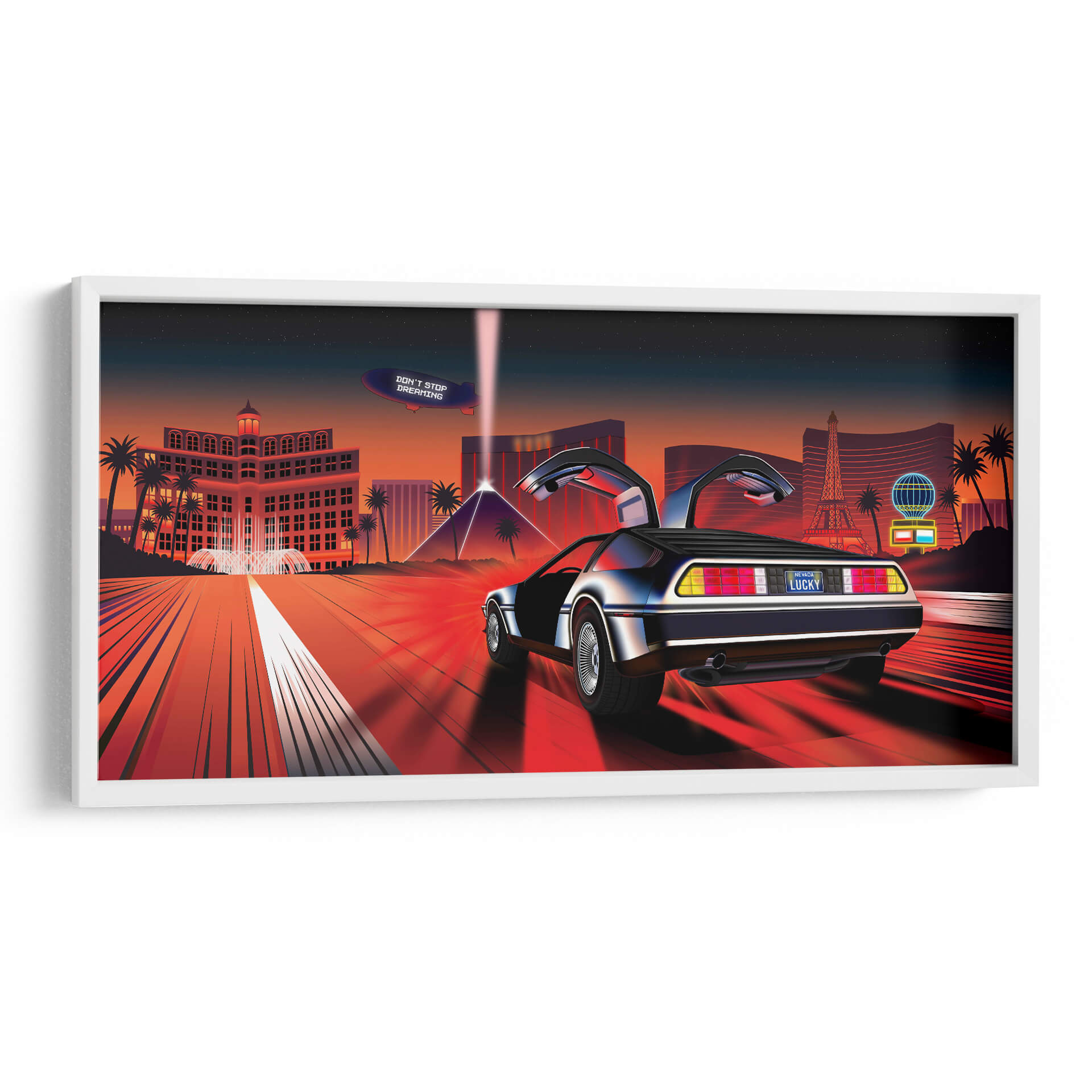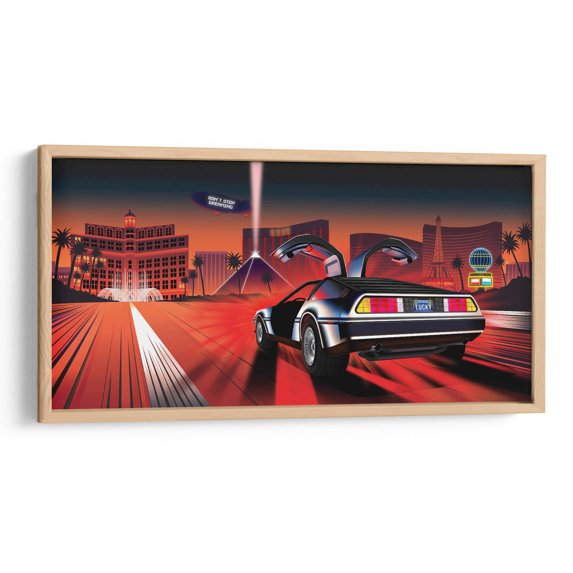 Sumérgete en la vibrante energía de "Soñando en Las Vegas", una obra de arte digital que captura la esencia de la ciudad del pecado con un toque retro y futurista. La pieza presenta un icónico coche deportivo de las décadas de los 80 y 90, con sus puertas de ala de gaviota abiertas, circulando por una carretera que se pierde en el horizonte bajo un cielo anaranjado y estrellado. Al fondo, se vislumbran siluetas de edificios emblemáticos y palmeras, evocando la opulencia y el entretenimiento de Las Vegas. La paleta de colores, dominada por rojos intensos, naranjas cálidos y azules profundos, crea una atmósfera de dinamismo y lujo. El estilo artístico, que fusiona elementos del arte pop y la estética de neón, transporta al espectador a un sueño de velocidad y aventura. Este cuadro decorativo es perfecto para aquellos que buscan añadir un toque de audacia y nostalgia a su hogar u oficina, funcionando como un punto focal que inspira conversaciones y evoca la emoción de perseguir grandes sueños. "Soñando en Las Vegas" es más que una imagen; es una invitación a vivir la vida al máximo, con la certeza de que los sueños están al alcance de la mano, siempre y cuando no dejemos de soñar.