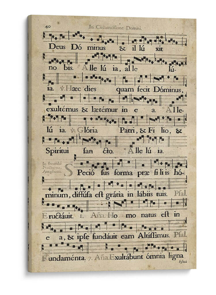 Sumérgete en la rica historia y la belleza atemporal de esta partitura antigua, una pieza decorativa que evoca la solemnidad y la complejidad de la música clásica. La obra presenta un diseño intrincado de notas musicales, claves y texto en latín, impreso sobre un fondo que simula el pergamino envejecido, otorgándole un carácter vintage y erudito. Los sutiles tonos sepia y las texturas desgastadas aportan calidez y autenticidad, haciendo de este cuadro decorativo una pieza focal ideal para estudios, bibliotecas o cualquier espacio que busque un toque de distinción cultural y musical. Cada detalle, desde las ligaduras de unión hasta las indicaciones de tempo, ha sido reproducido con una precisión que honra la tradición musical. Esta obra es perfecta para los amantes de la música, historiadores o cualquiera que aprecie la estética de los documentos antiguos y desee infundir a su hogar u oficina una atmósfera de elegancia y conocimiento. Añade un elemento de sofisticación clásica a tu decoración con este impresionante cuadro decorativo que celebra el arte de la composición musical. Su diseño atemporal lo convierte en un regalo inolvidable y una adición destacada a cualquier colección de arte mural.