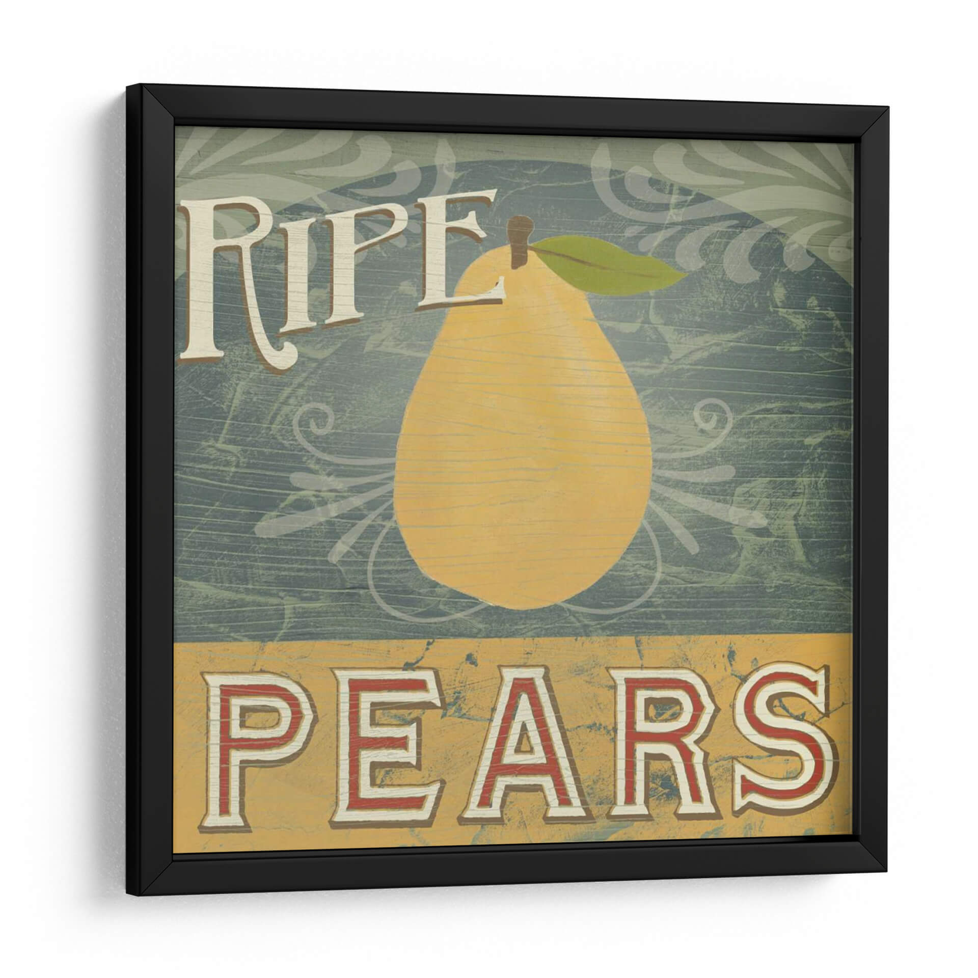 Añada un toque de encanto rústico y color a su hogar con este cautivador cuadro decorativo "Stand De Granja V" de June Erica Vess. La obra presenta una pera amarilla vibrante sobre un fondo texturizado en tonos azul verdoso, adornado con delicados motivos florales y un borde superior verde. Las letras estilizadas en la parte inferior, que dicen "PEARS" en un distintivo estilo vintage, evocan la nostalgia de los mercados de agricultores y la frescura de los productos de temporada. La paleta de colores, dominada por amarillos cálidos, verdes apagados y azules profundos, crea una atmósfera acogedora y terrenal, perfecta para añadir calidez a cualquier espacio. Este cuadro decorativo es ideal para cocinas, comedores o cualquier rincón donde se desee un acento de naturaleza y estilo retro. Su composición centrada y el tema familiar lo convierten en una pieza versátil que complementa una variedad de estilos de decoración, desde la granja moderna hasta el ecléctico. Descubra cómo esta obra puede transformar su ambiente, aportando una sensación de sencillez y alegría a su día a día.