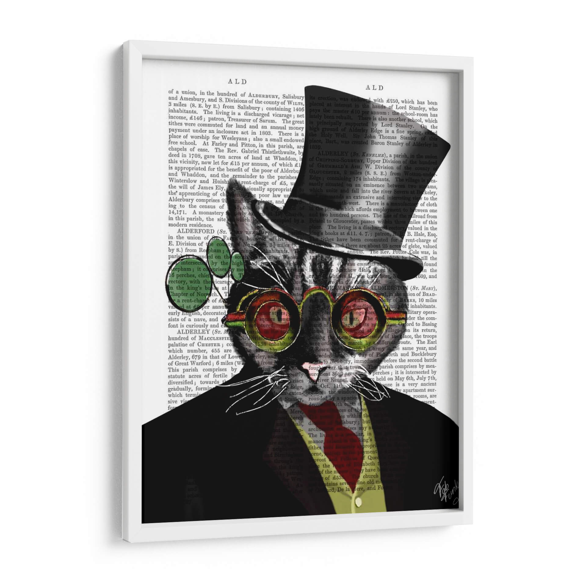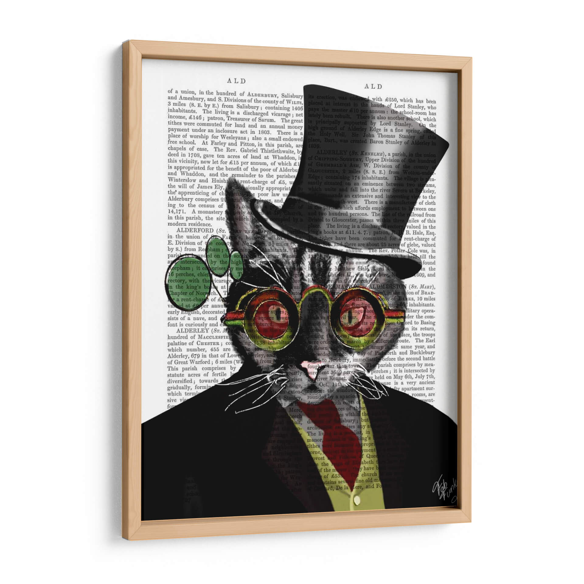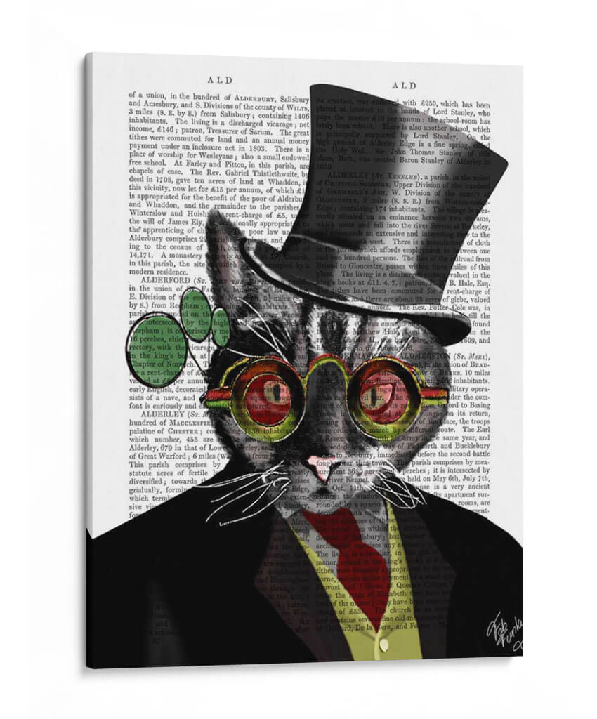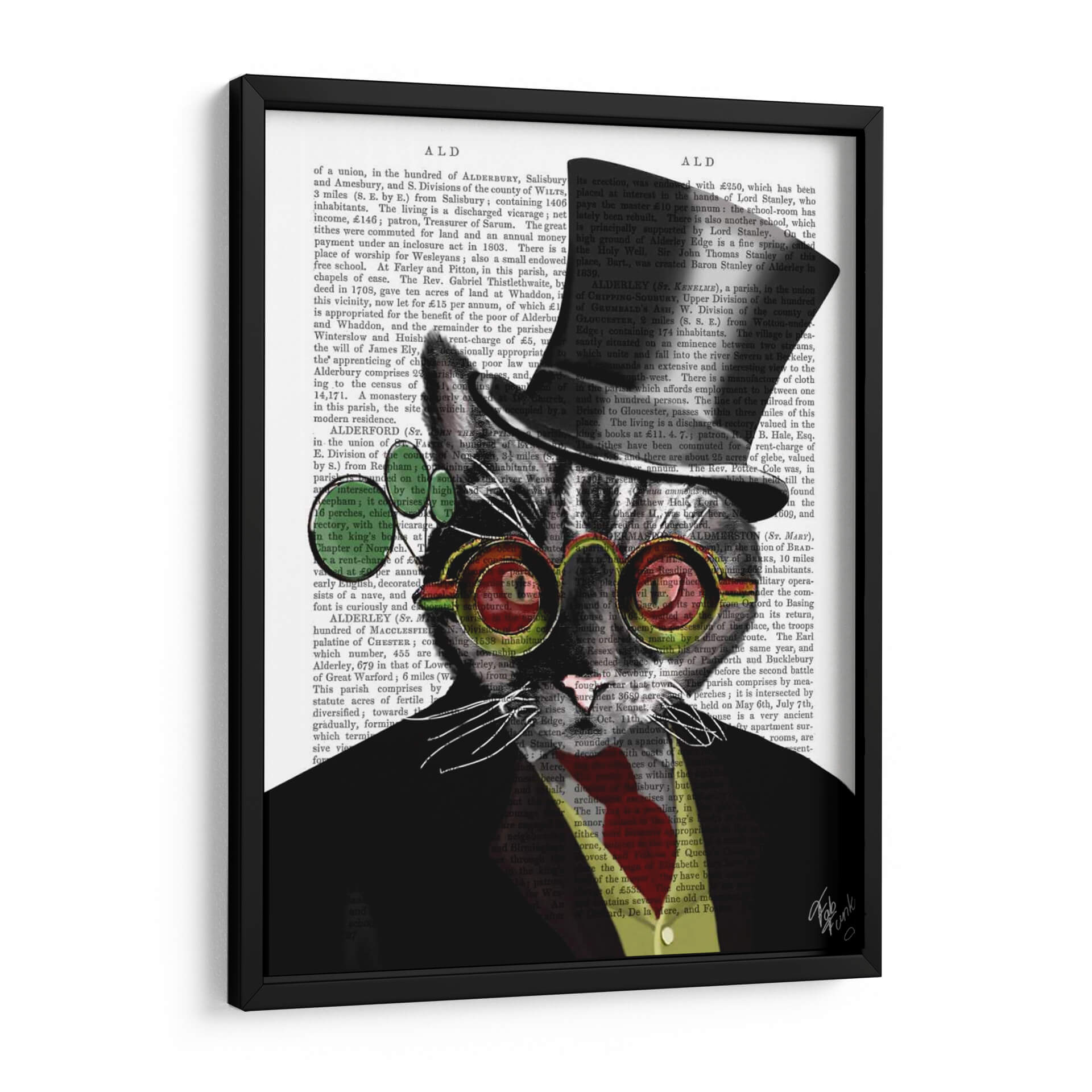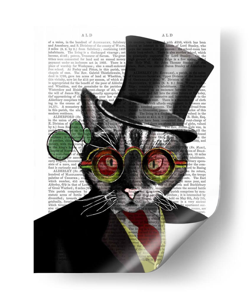 Sumérgete en el fascinante mundo del arte con "Steampunk Cat - Sombrero De Copa Y Gafas Amarillas Rojas", una obra maestra del artista Fab Funky. Este cuadro decorativo captura la esencia de la estética steampunk con un toque de elegancia y misterio. Un gato atigrado, ataviado con un sofisticado sombrero de copa y unas llamativas gafas amarillas con detalles rojos, se presenta sobre un fondo que simula un texto antiguo, evocando una atmósfera vintage y peculiar. Los colores predominantes, como el negro, el blanco, los tonos sepia del fondo y los vibrantes acentos rojos y amarillos de las gafas, crean un contraste visual impactante que atrae todas las miradas. El estilo de la obra combina lo ilustrativo con toques surrealistas, resultando en una pieza única que desafía la imaginación. Perfecta para espacios que buscan un punto focal distintivo y lleno de personalidad, como una sala de estar moderna, un despacho o incluso una entrada. Este cuadro decorativo no solo embellece, sino que también invita a la conversación, añadiendo un elemento de intriga y originalidad a tu decoración.