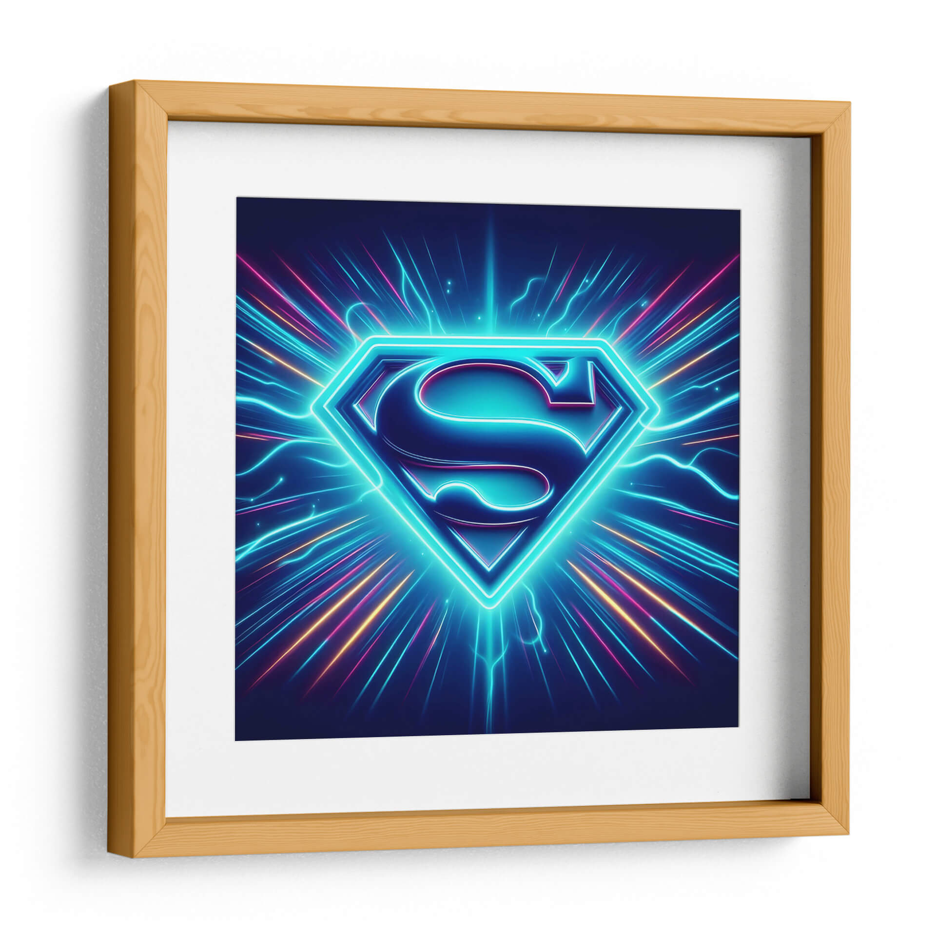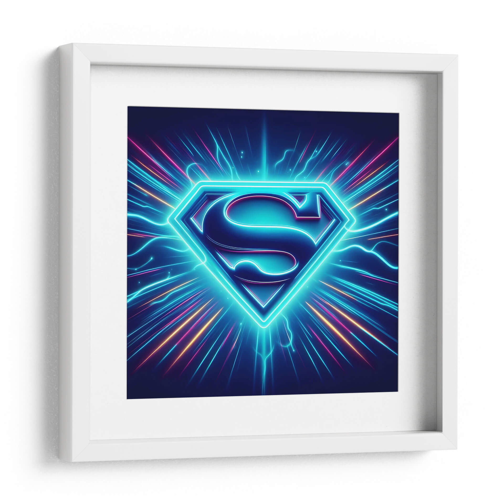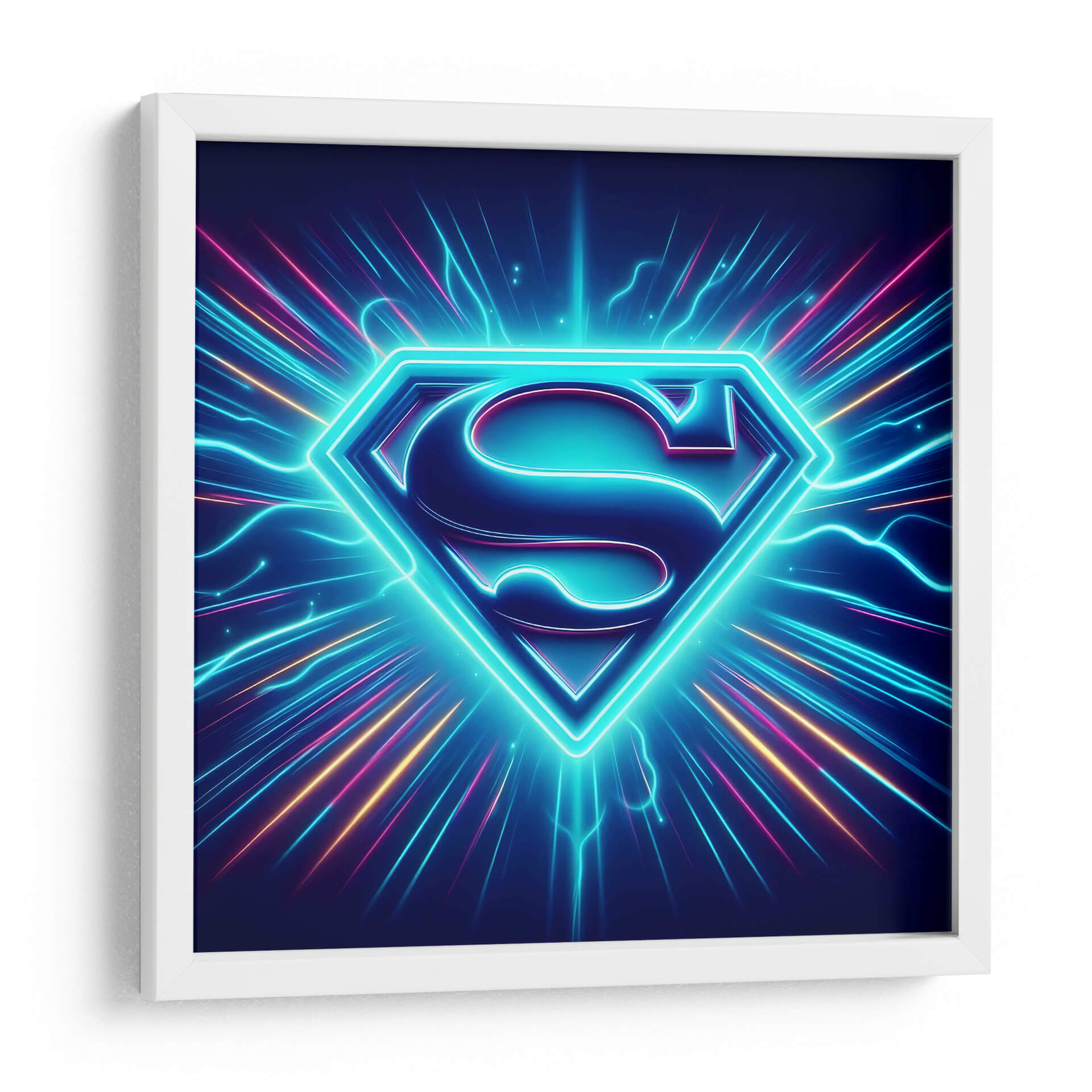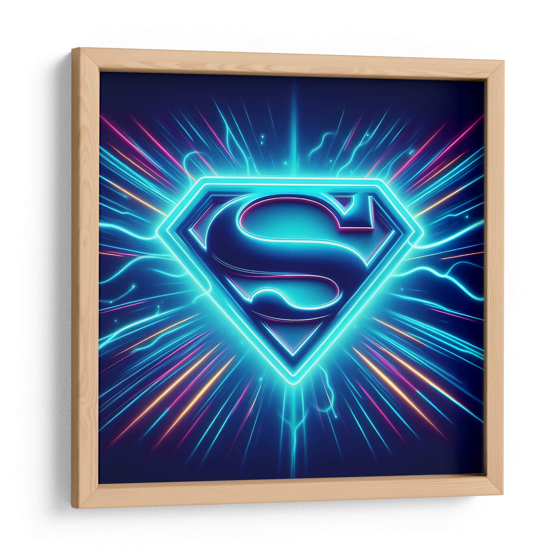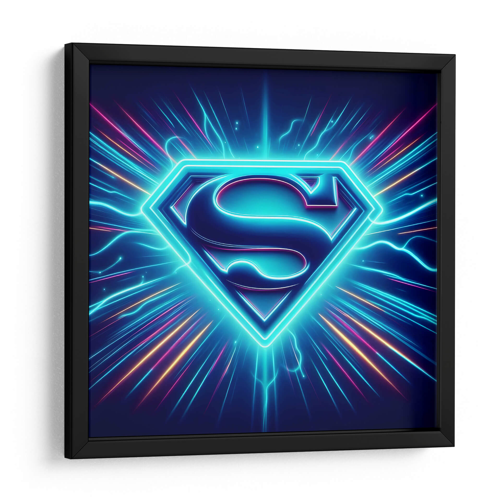 Sumérgete en la energía vibrante de este cuadro decorativo que captura la esencia de un icono poderoso. La obra presenta el emblemático escudo 'S' en un resplandeciente acabado de neón azul eléctrico, rodeado por un torbellino de luces dinámicas en tonos cian, magenta y dorado. Este diseño de arte digital evoca una sensación de poder, velocidad y modernidad, fusionando elementos de ciencia ficción con un estilo pop audaz. El contraste entre el fondo oscuro y las líneas de luz brillantes crea una profundidad visual impactante, haciendo de esta pieza un punto focal cautivador para cualquier espacio. Ideal para salas de estar modernas, oficinas creativas o dormitorios temáticos, este cuadro aportará un toque de intriga y dinamismo. Su estilo abstracto y la paleta de colores neón lo convierten en una elección perfecta para quienes buscan una decoración de pared que transmita fuerza y un espíritu futurista. Transforma tu ambiente con este diseño enérgico que sin duda inspirará y fascinará.
