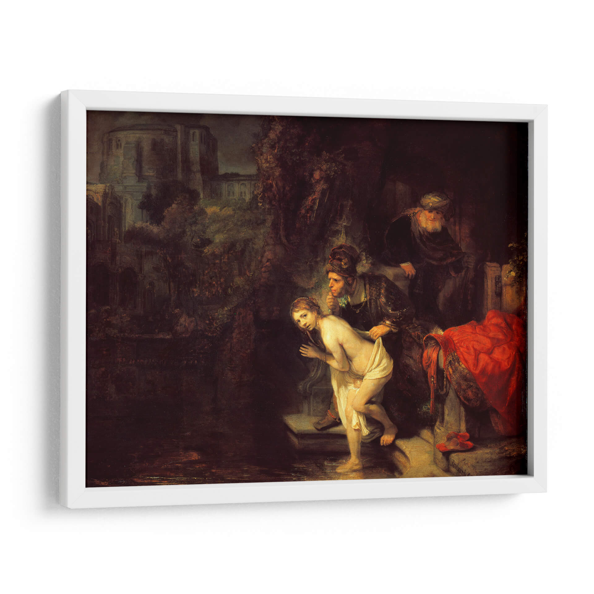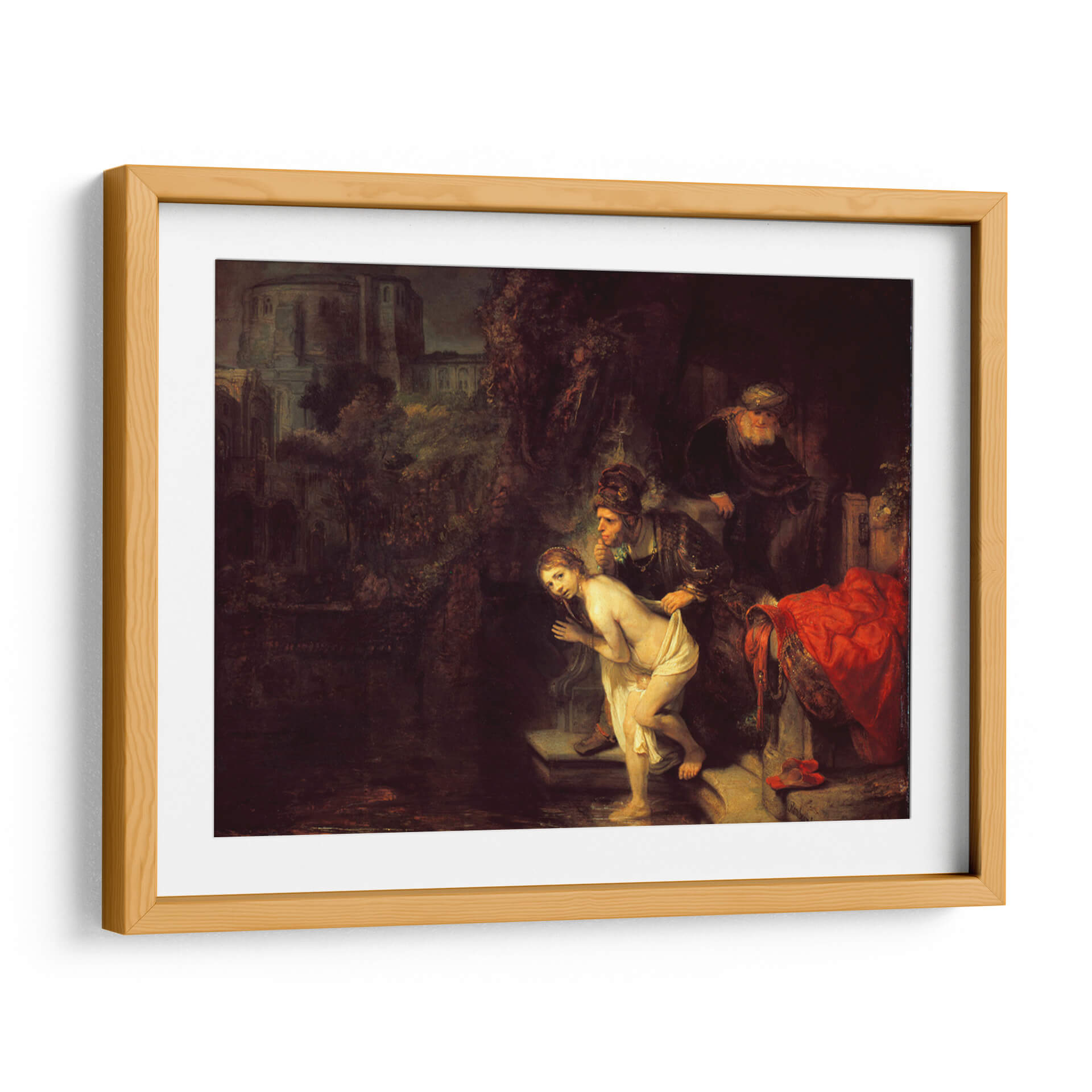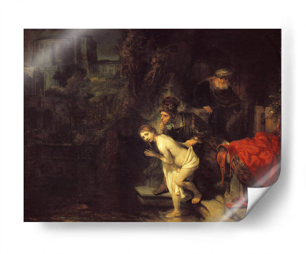 Sumérgete en la dramaturgia visual de "Susanna y los dos viejos" de Rembrandt van Rijn, una obra maestra que captura un momento de intensa vulnerabilidad y suspense. Este cuadro decorativo transporta al espectador a una escena bíblica, representada con un magistral uso del claroscuro, técnica distintiva del artista. La luz tenue ilumina la figura central de Susana, acentuando su pureza y desamparo, mientras las sombras profundas envuelven a los dos ancianos que la acechan, creando una atmósfera de tensión palpable. El detallado fondo, con una arquitectura clásica y un entorno natural exuberante, contrasta con la intimidad del primer plano, añadiendo profundidad y contexto a la narrativa. La paleta de colores se centra en tonos terrosos y oscuros, salpicados por el vibrante rojo de la vestimenta, que añade un foco dramático y pasional a la composición. "Susanna y los dos viejos" es ideal para aquellos que buscan una pieza de arte con carga emocional y narrativa, perfecta para añadir un punto focal de profunda reflexión a salas de estar, estudios o áreas de lectura, estimulando la conversación y la contemplación.
